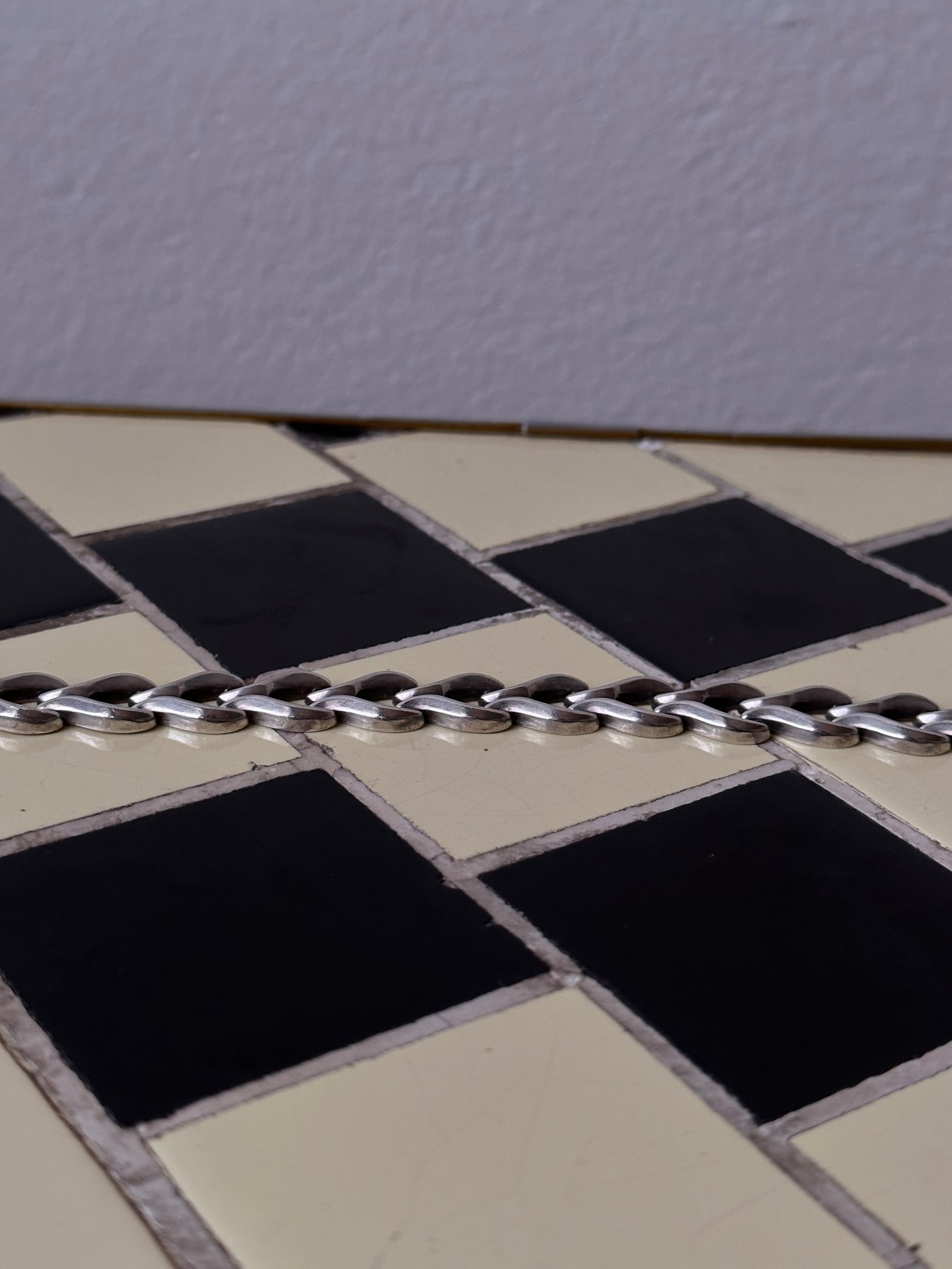 きちんと厚みがあり立体感と奥行きのある見た目、気品溢れるシルバーブレスレット。