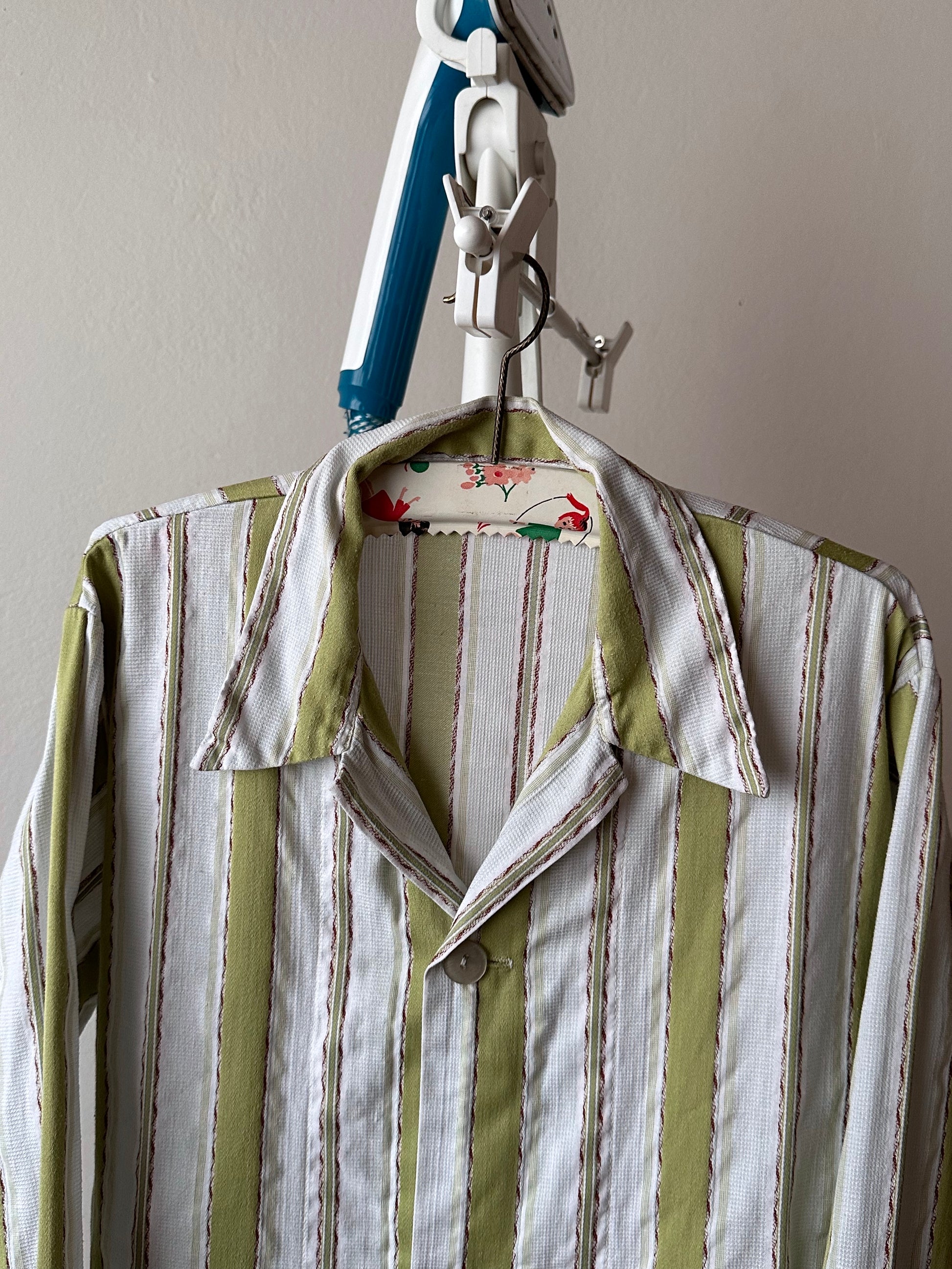 大昔ほんとに10代の時、これがヨーロッパのパジャマシャツと知った時はかなり衝撃だったのを覚えてます。笑