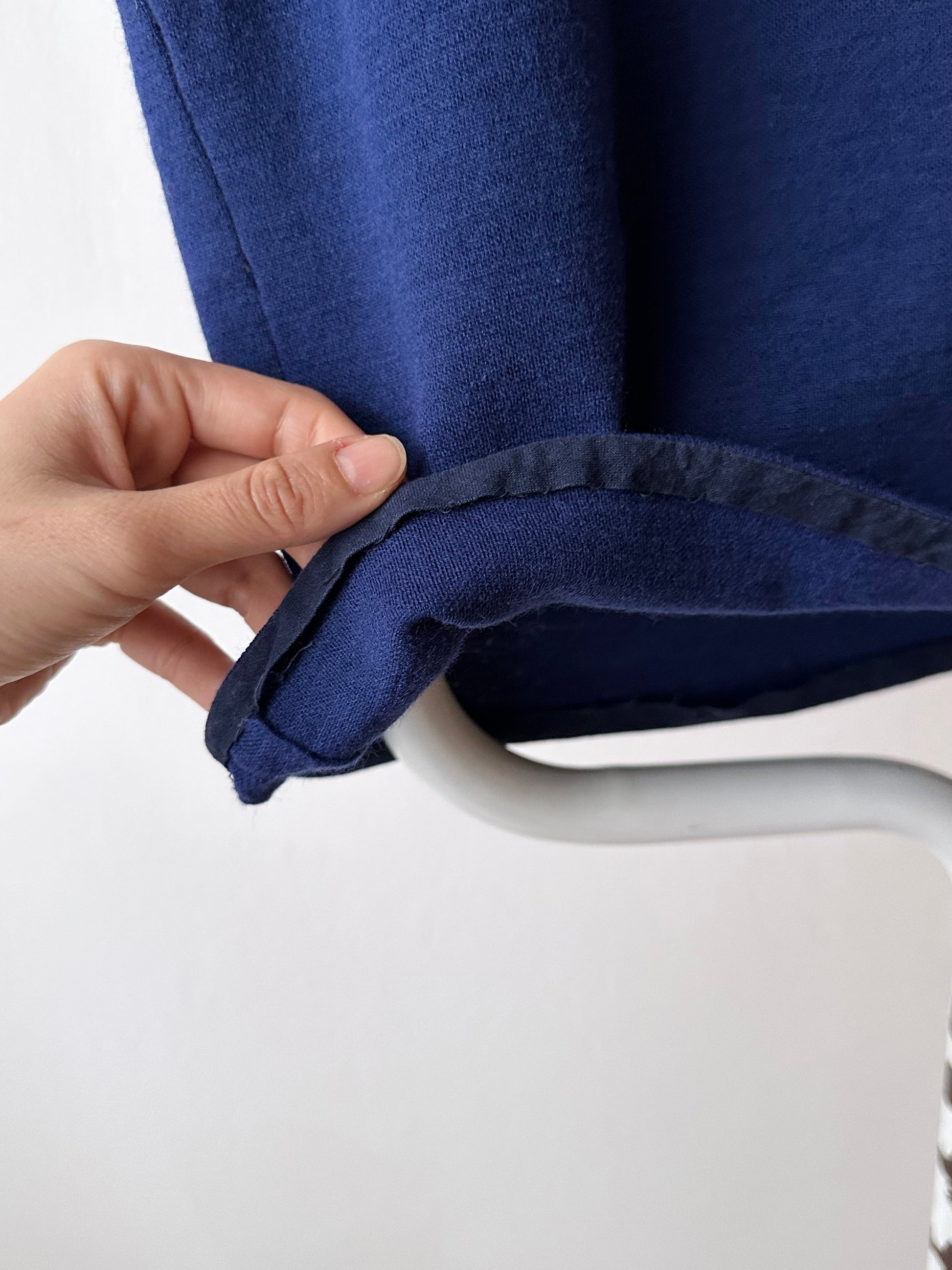 古いハンドメイドで、生地や裏地のつき方などから60-70年代のものと推定します。