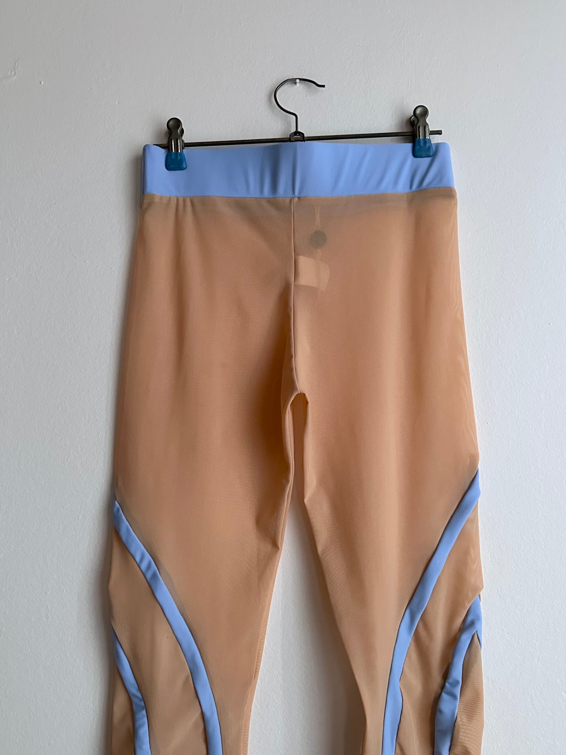 肌色のパワーネットタイツに、水色のSF的なライン。色合い、デザイン素晴らしい。