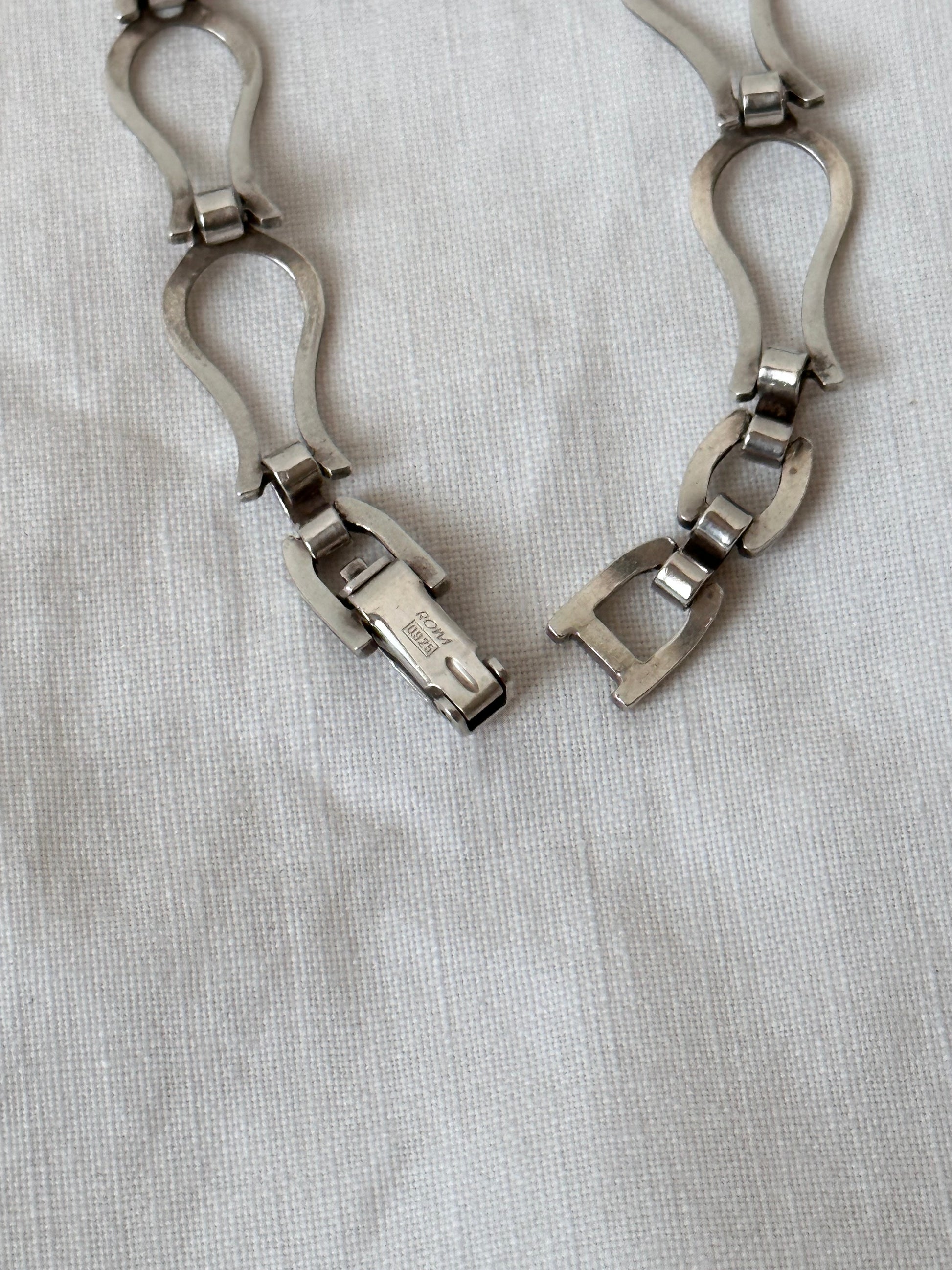 ドイツの公式なシルバー製品を示す三日月と王冠のマーク、純度を示す835のホールマークがダイアル裏に彫られています。チェーンは925になります。