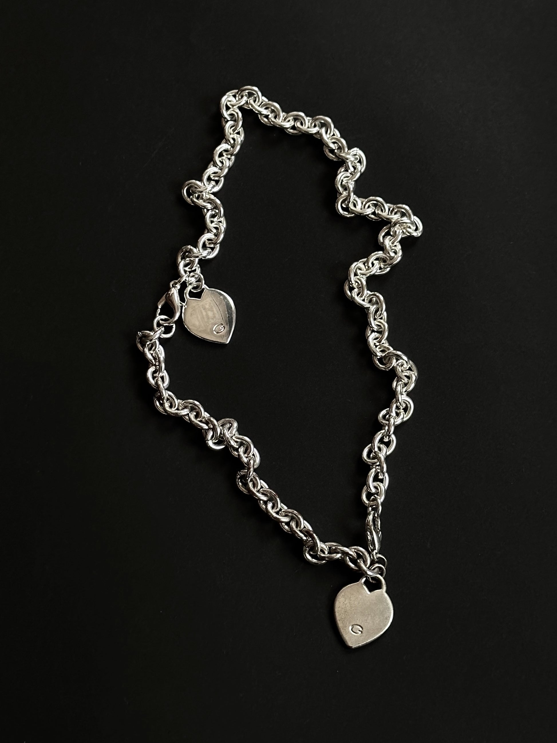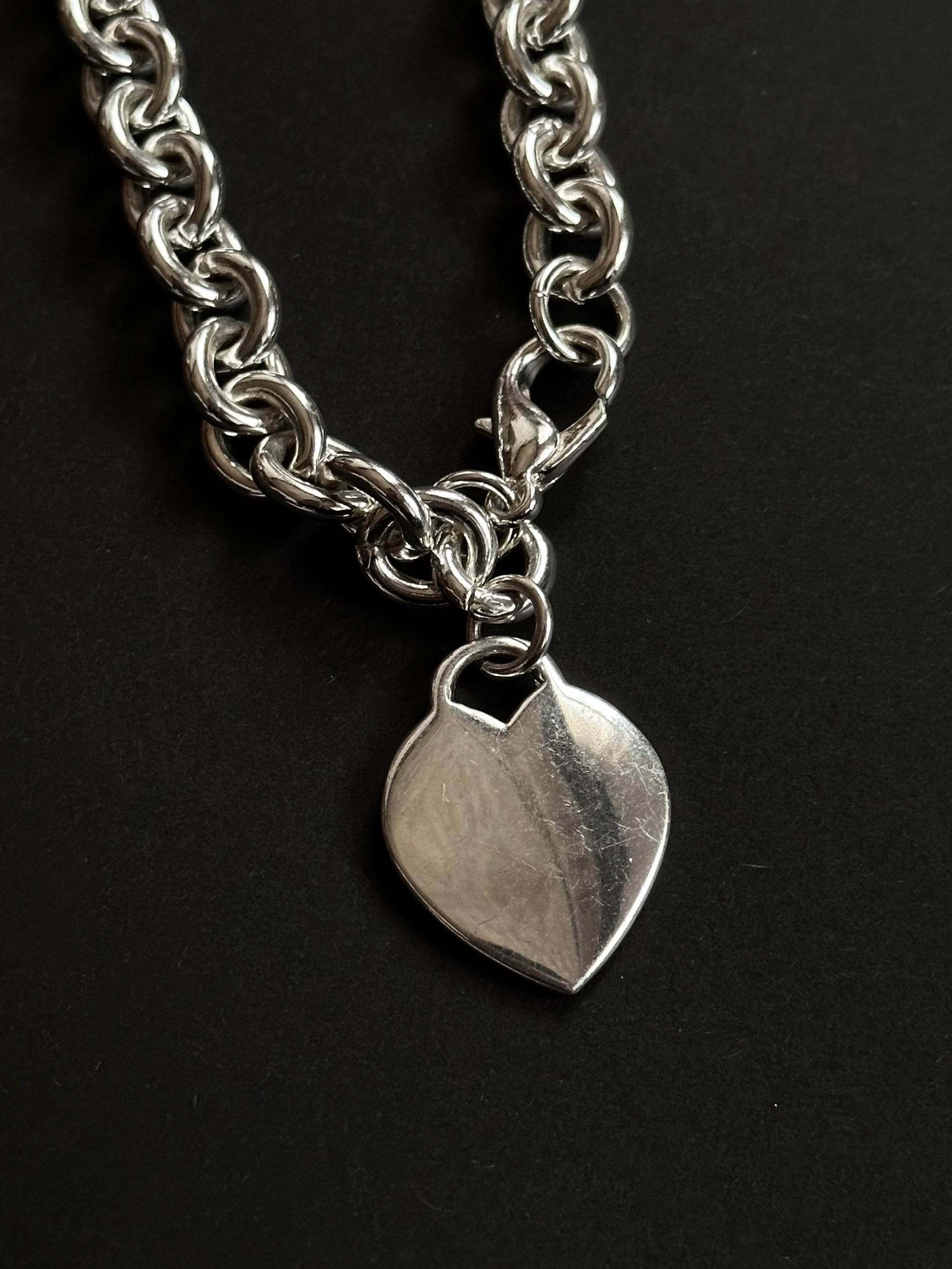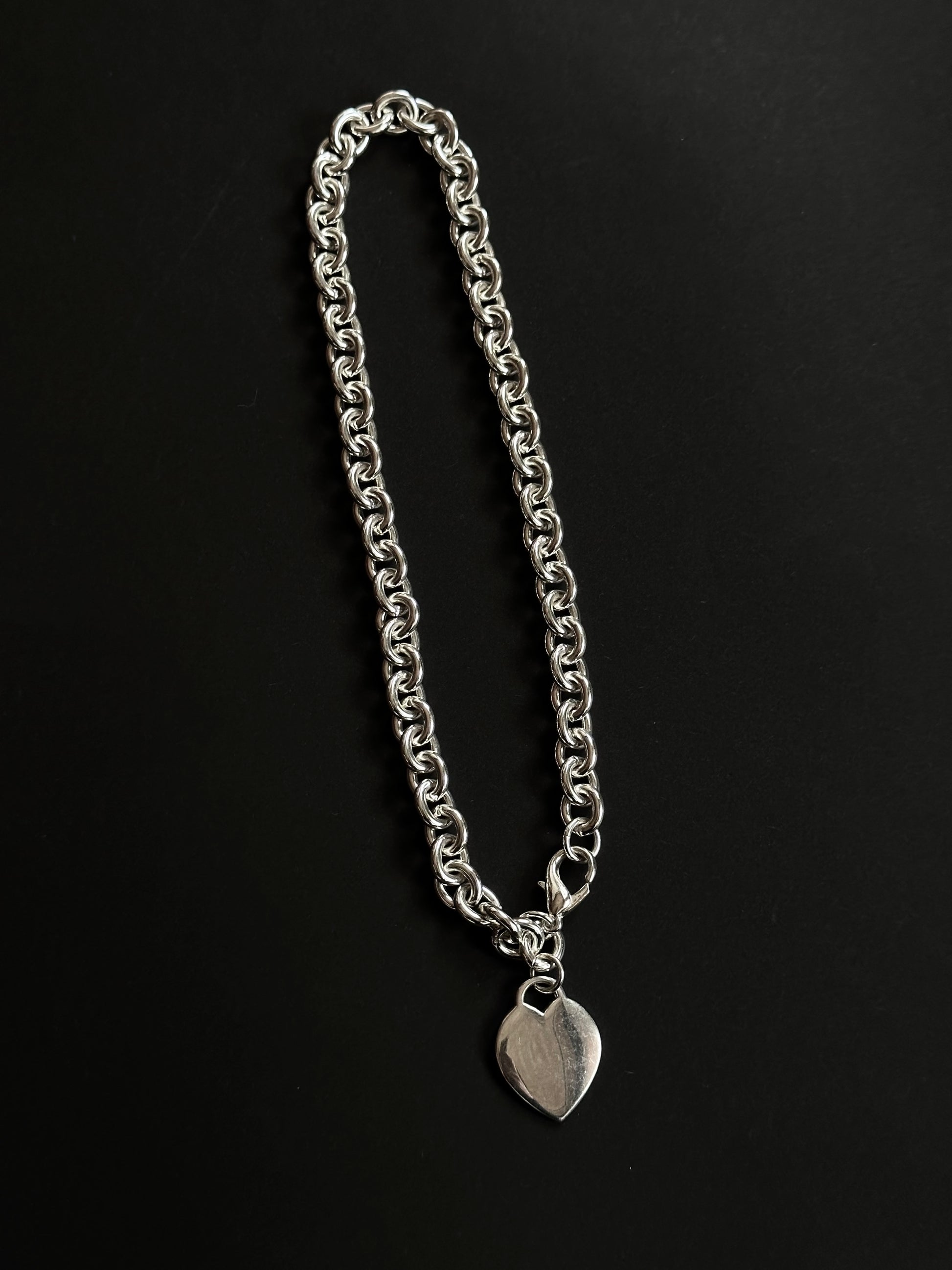 ティファニーのハートタグみたいな、ハートのチャームとチェーンのデザイン。