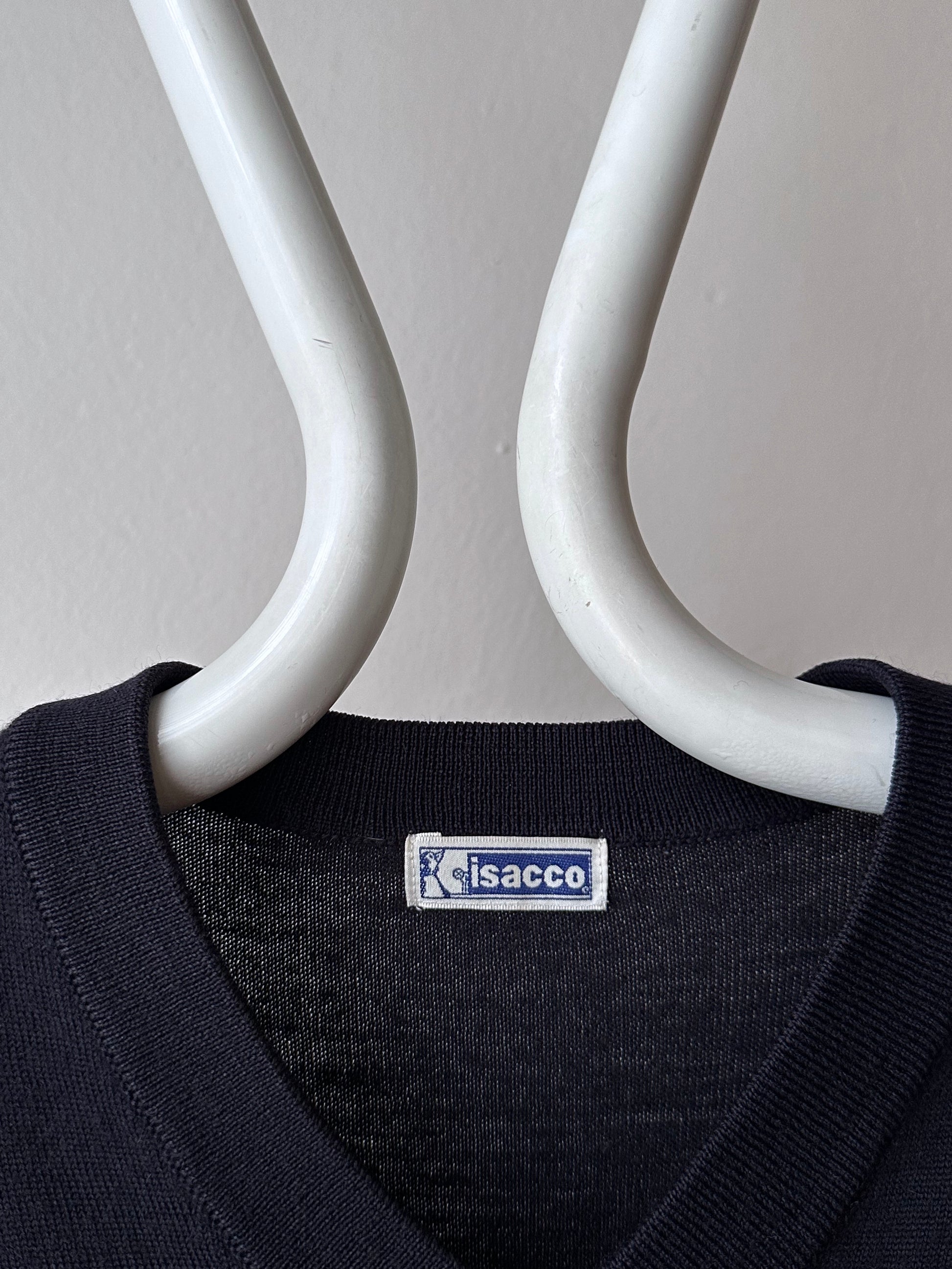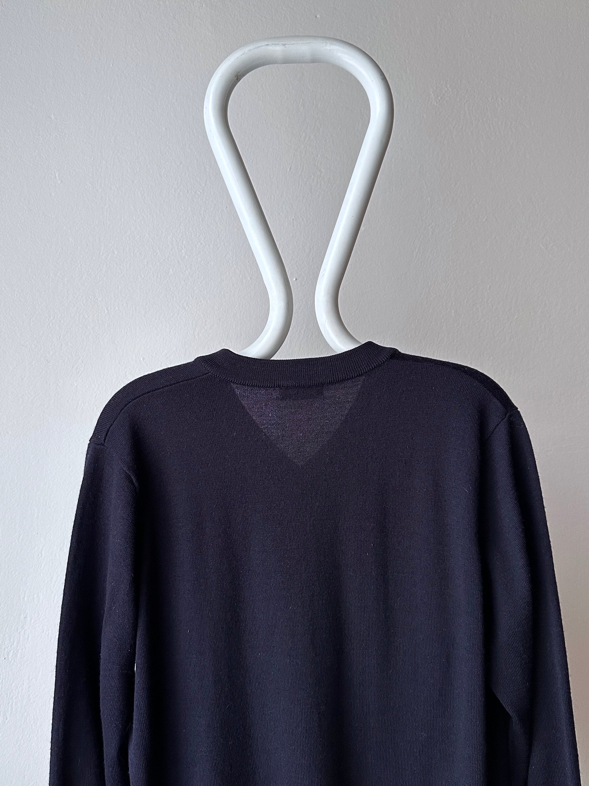 80年代頃の限りなく黒に近いネイビーのVネックセーター。質の良いウール使ってます。