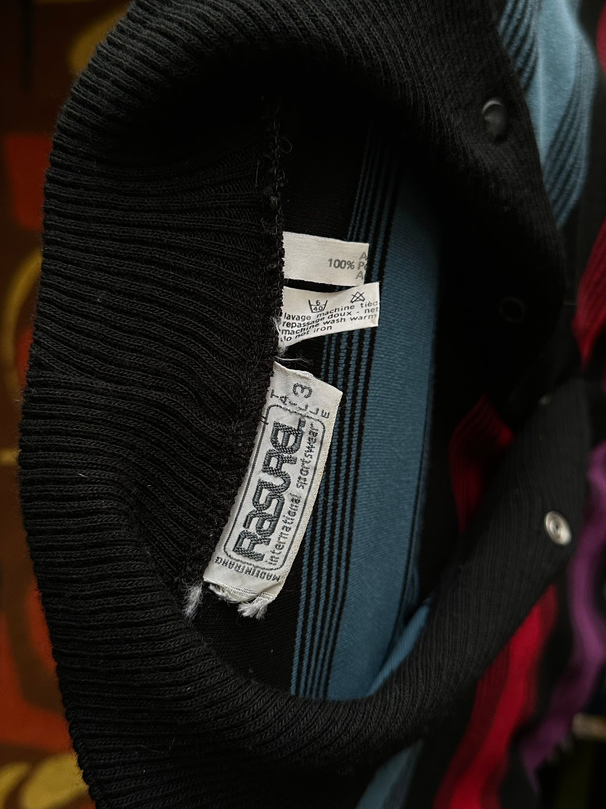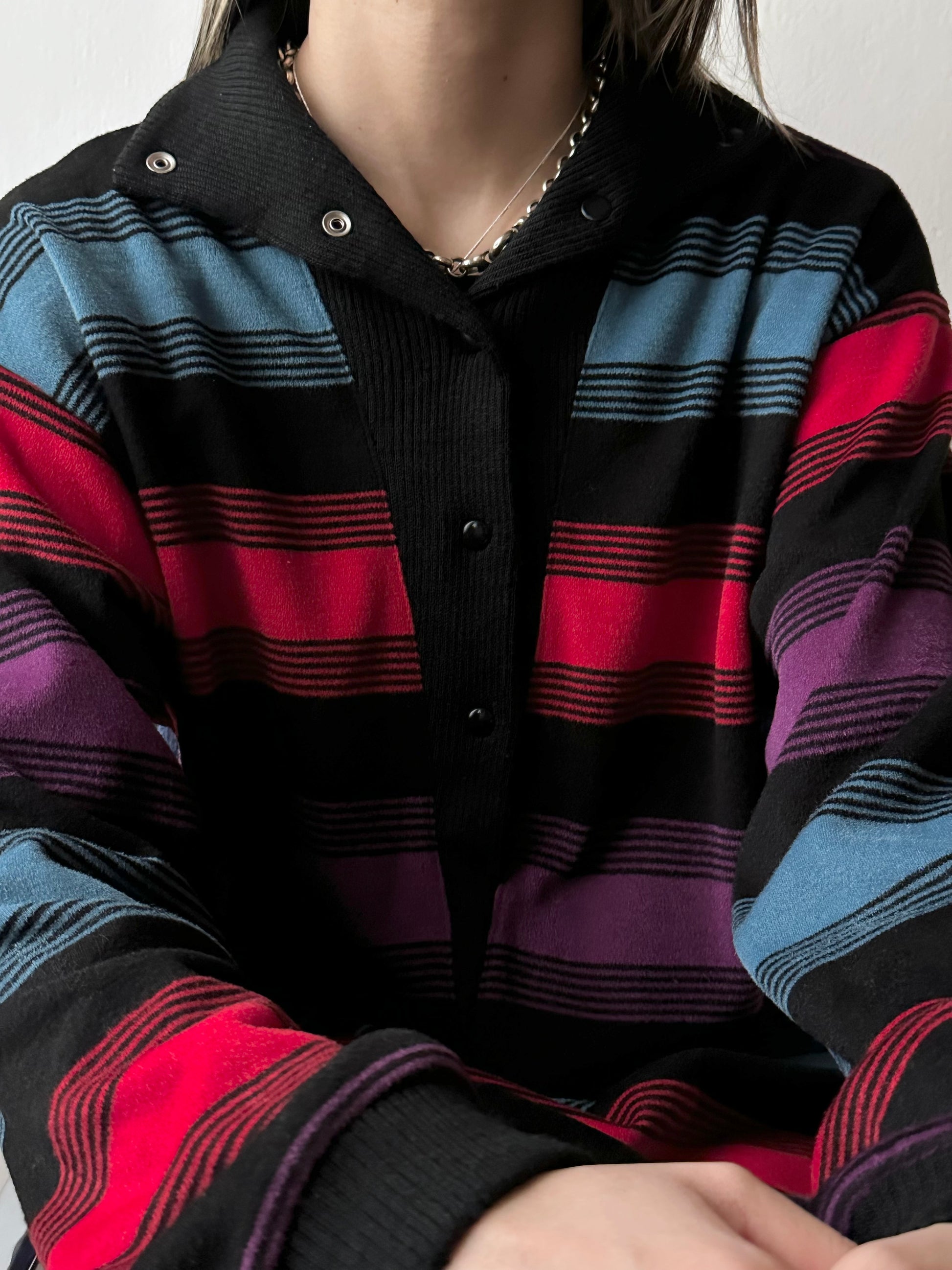 柔らかな薄手のパイル生地に、黒ベースに発色の良いボーダー。