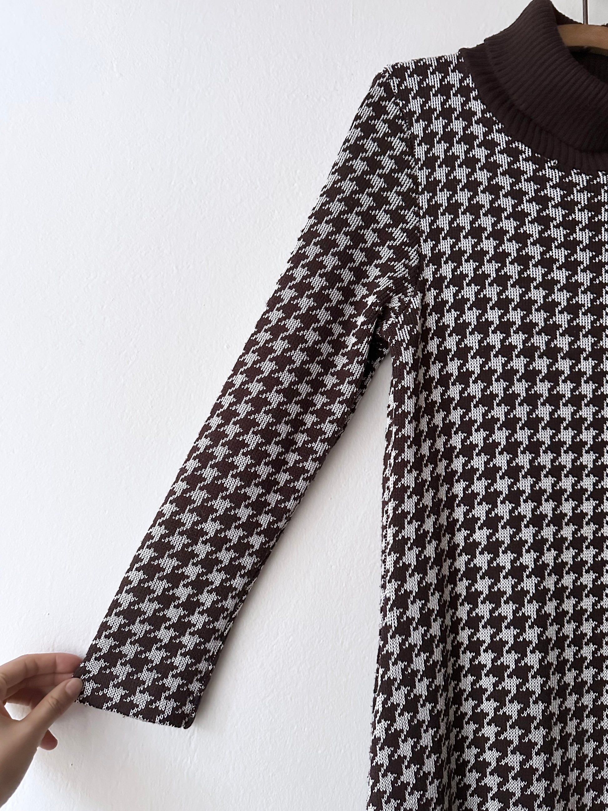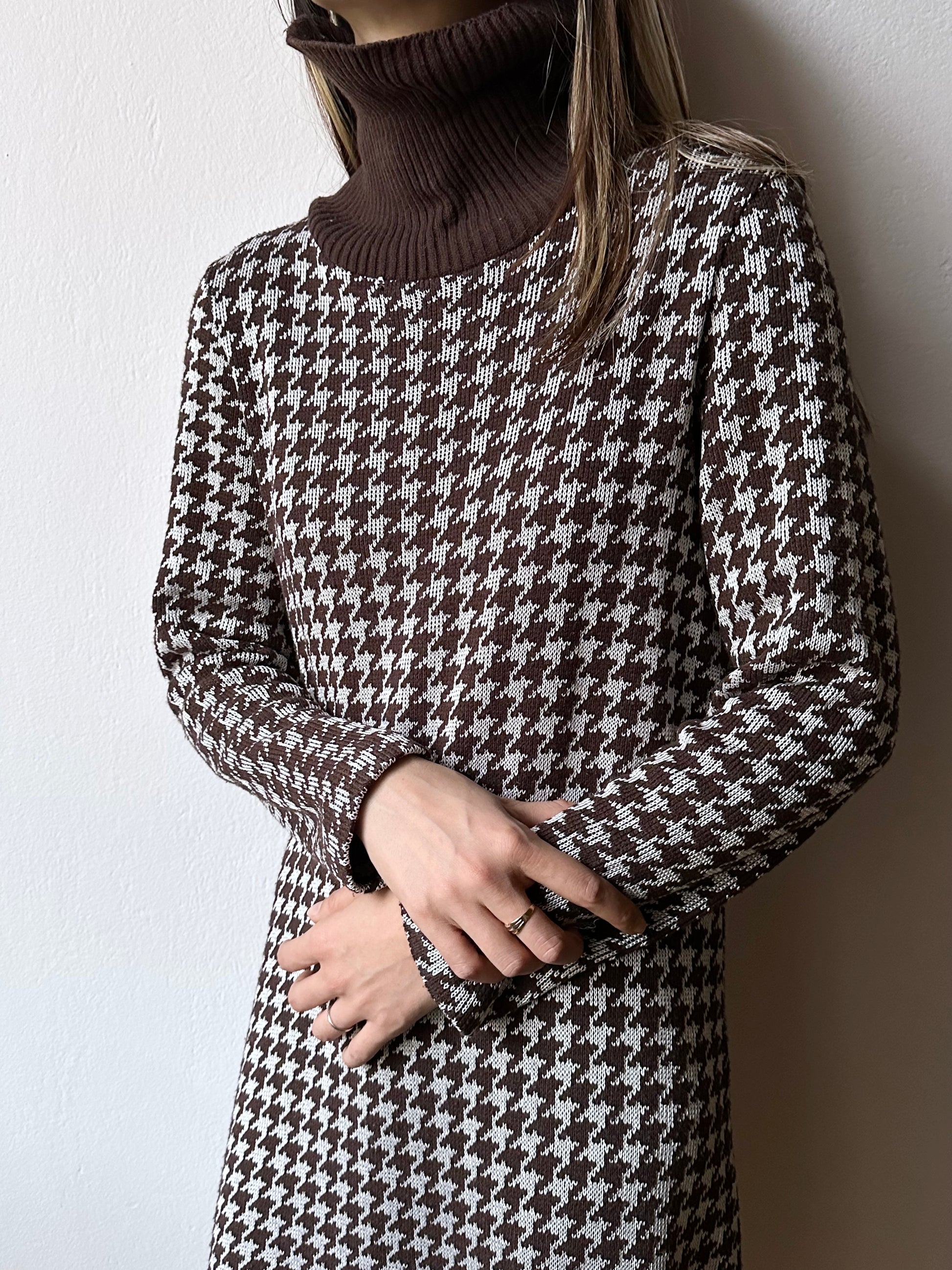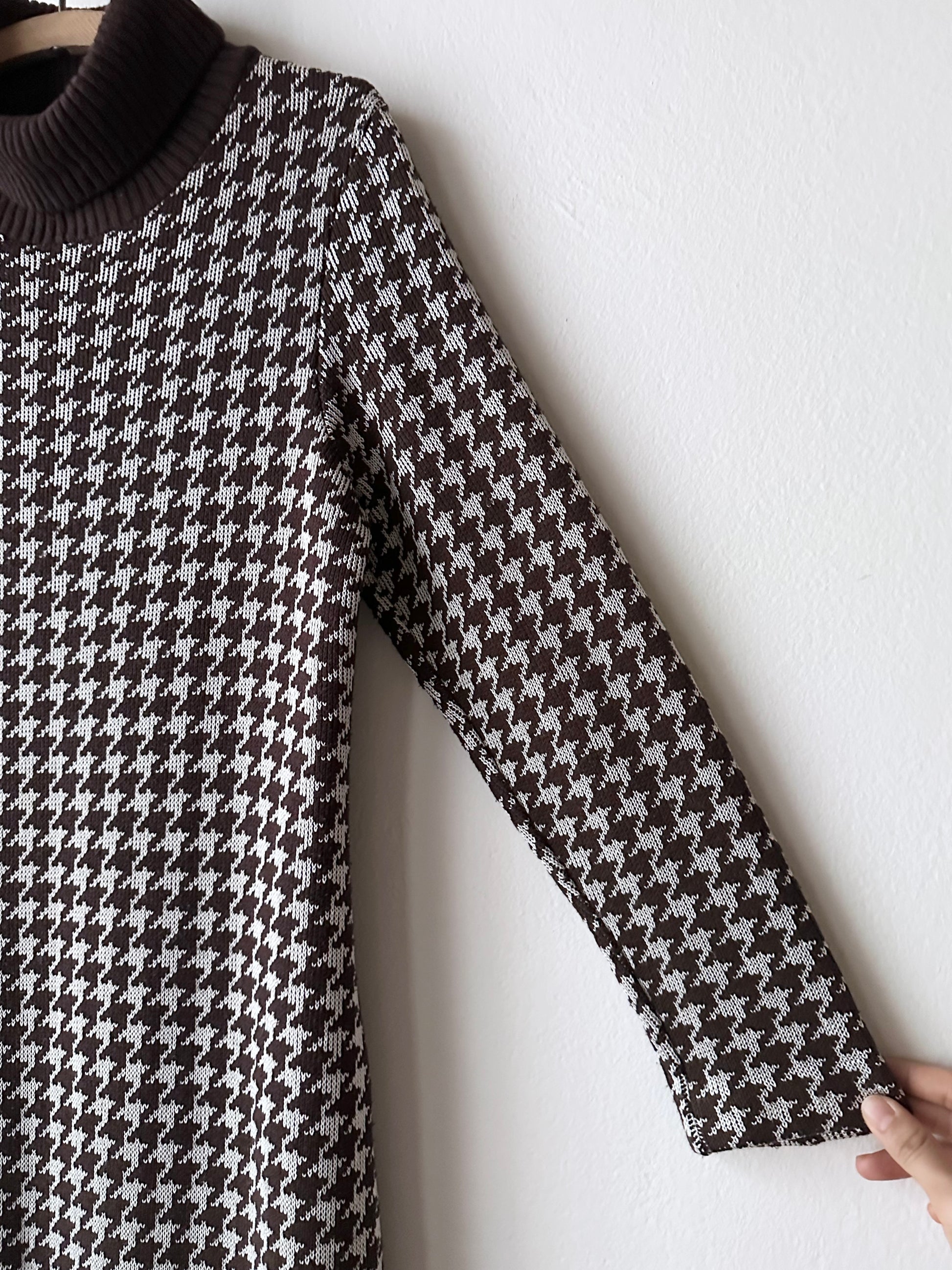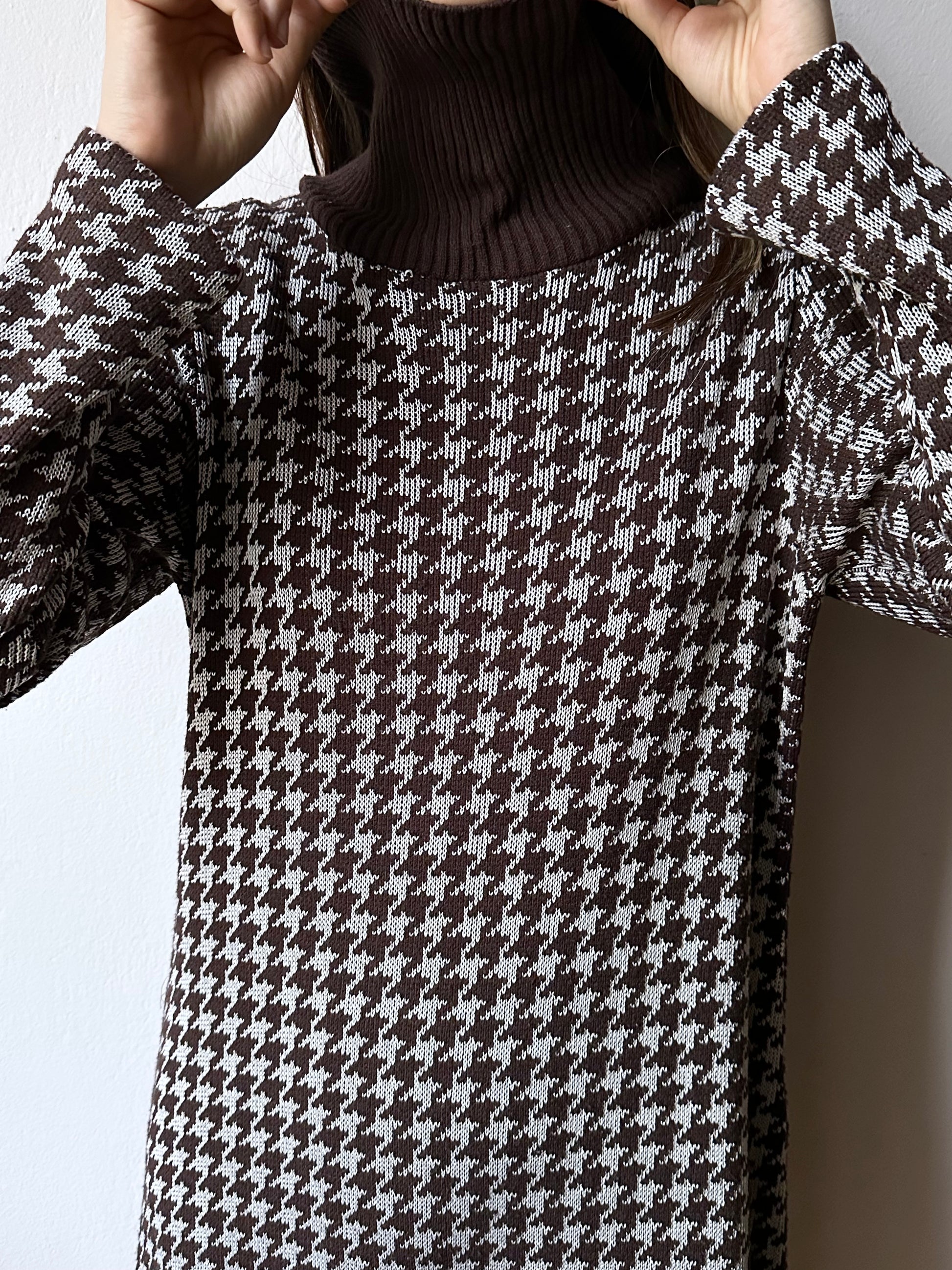 上品で愛らしい〜 ブラウンの千鳥格子に、リブのニットタートル。