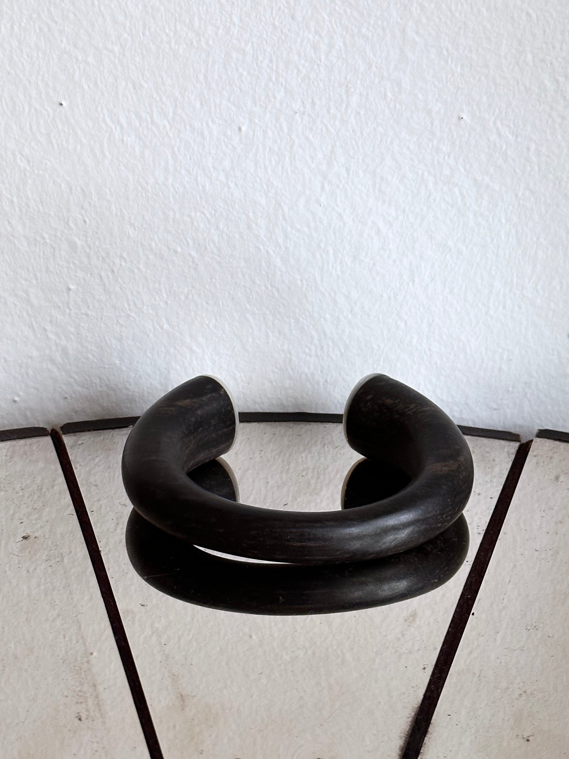 しなやかな黒い木のボディに、マザーオブパールが2つ付いています。