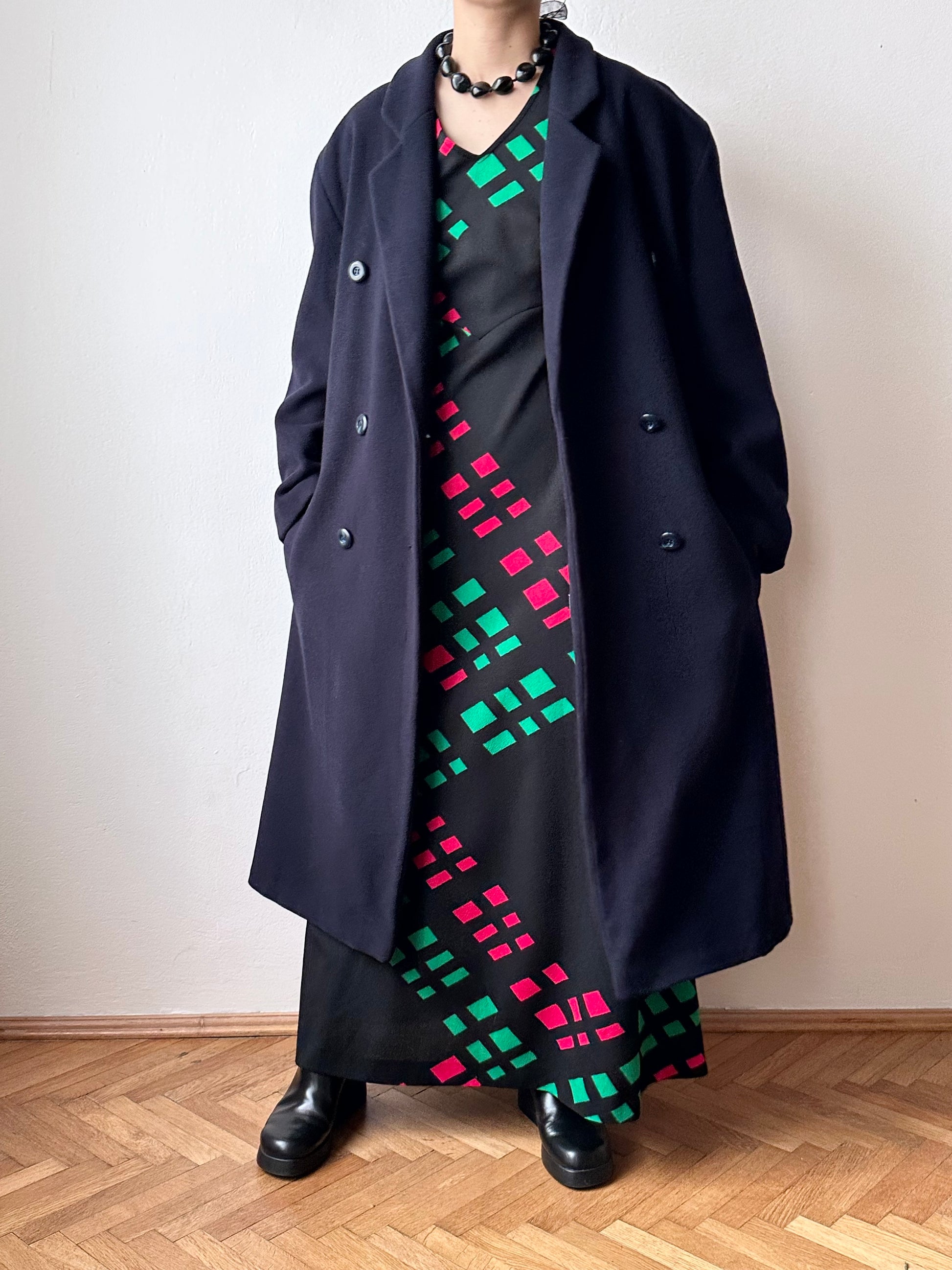 身幅、肩幅しっかりとある男前なシルエットのダブルブレストデザインで、メンズのLサイズほどのゆったりとした作りです。