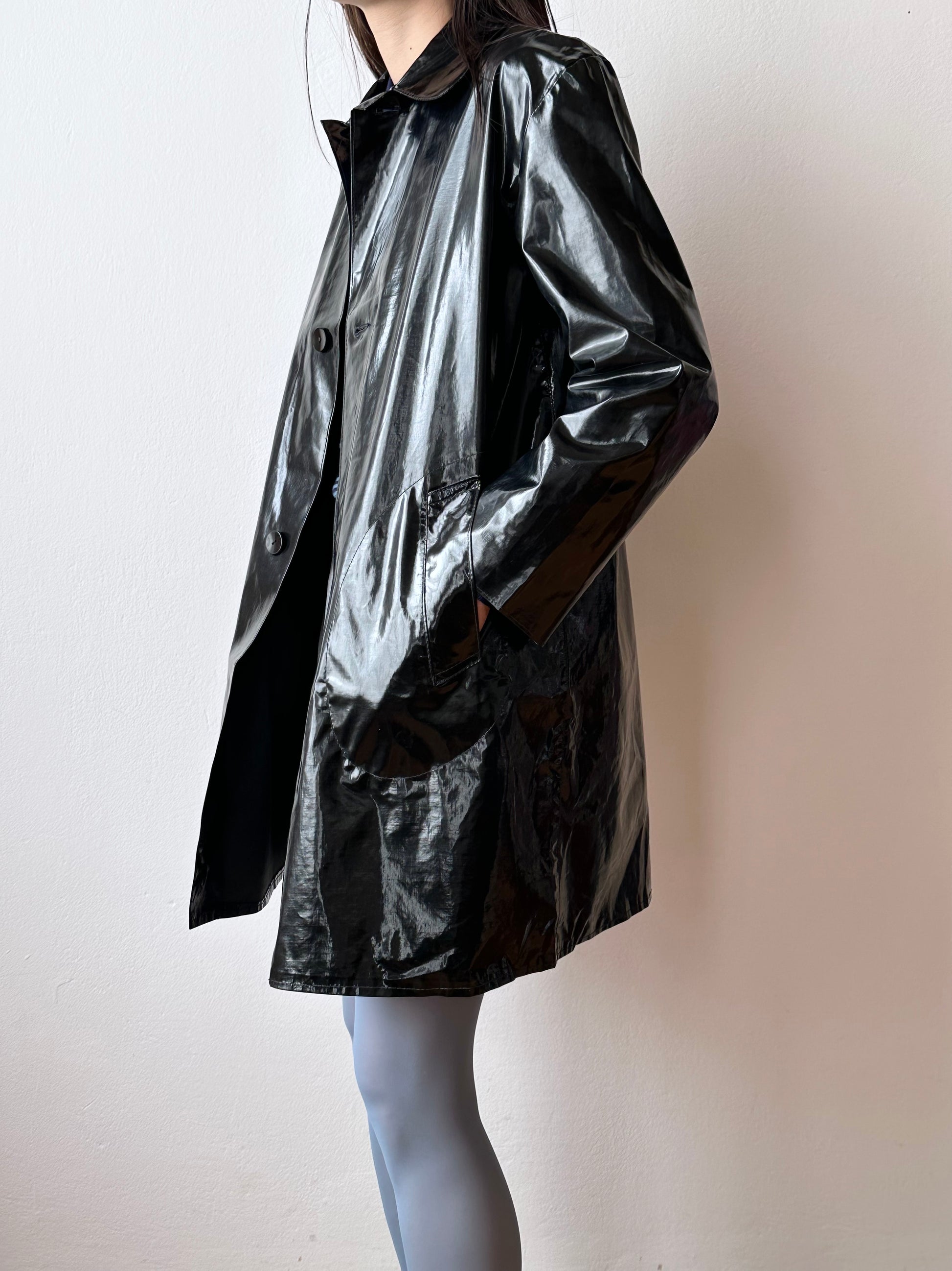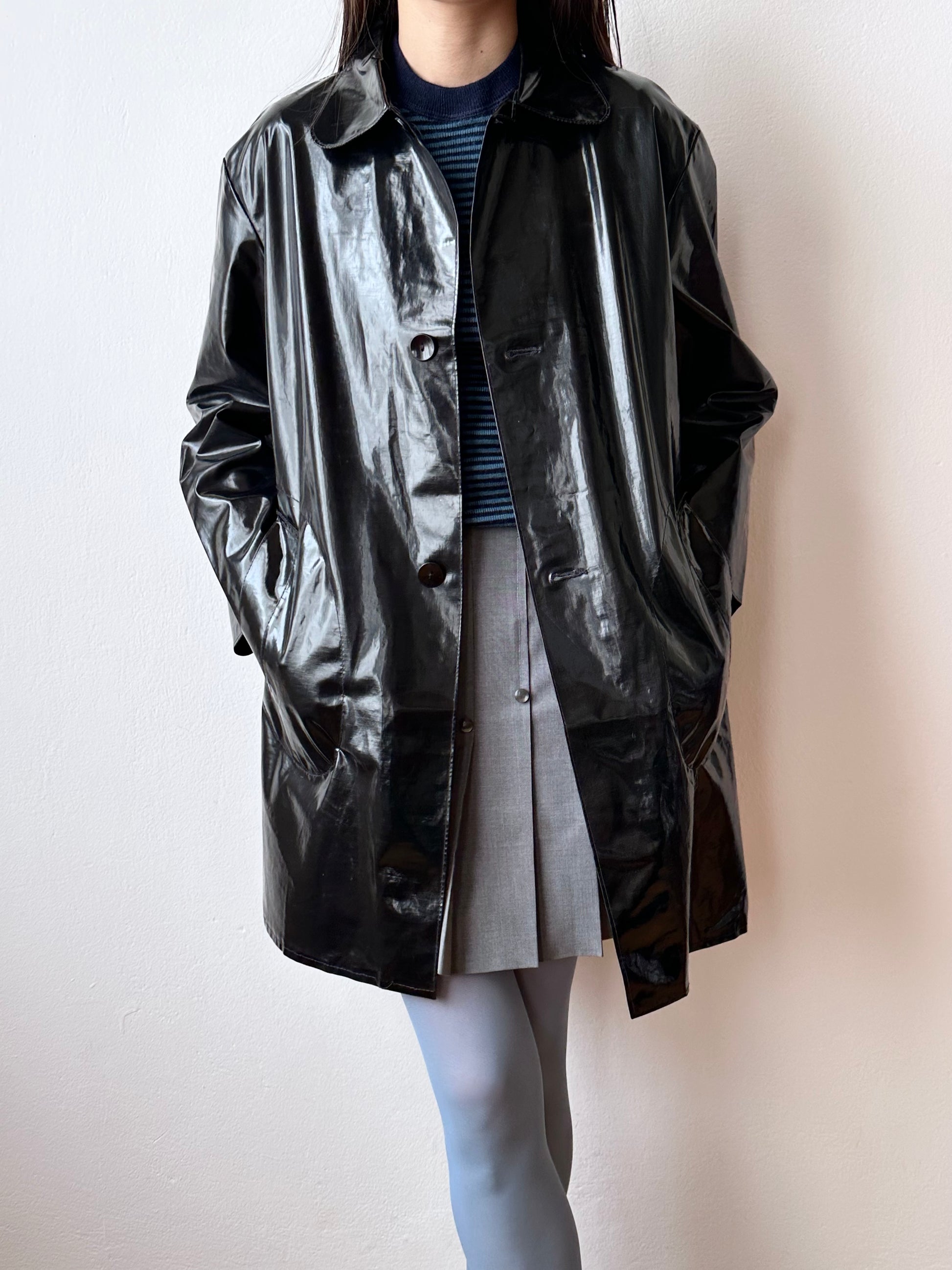 フランスのヴィンテージPolyvinyalブラックコート。