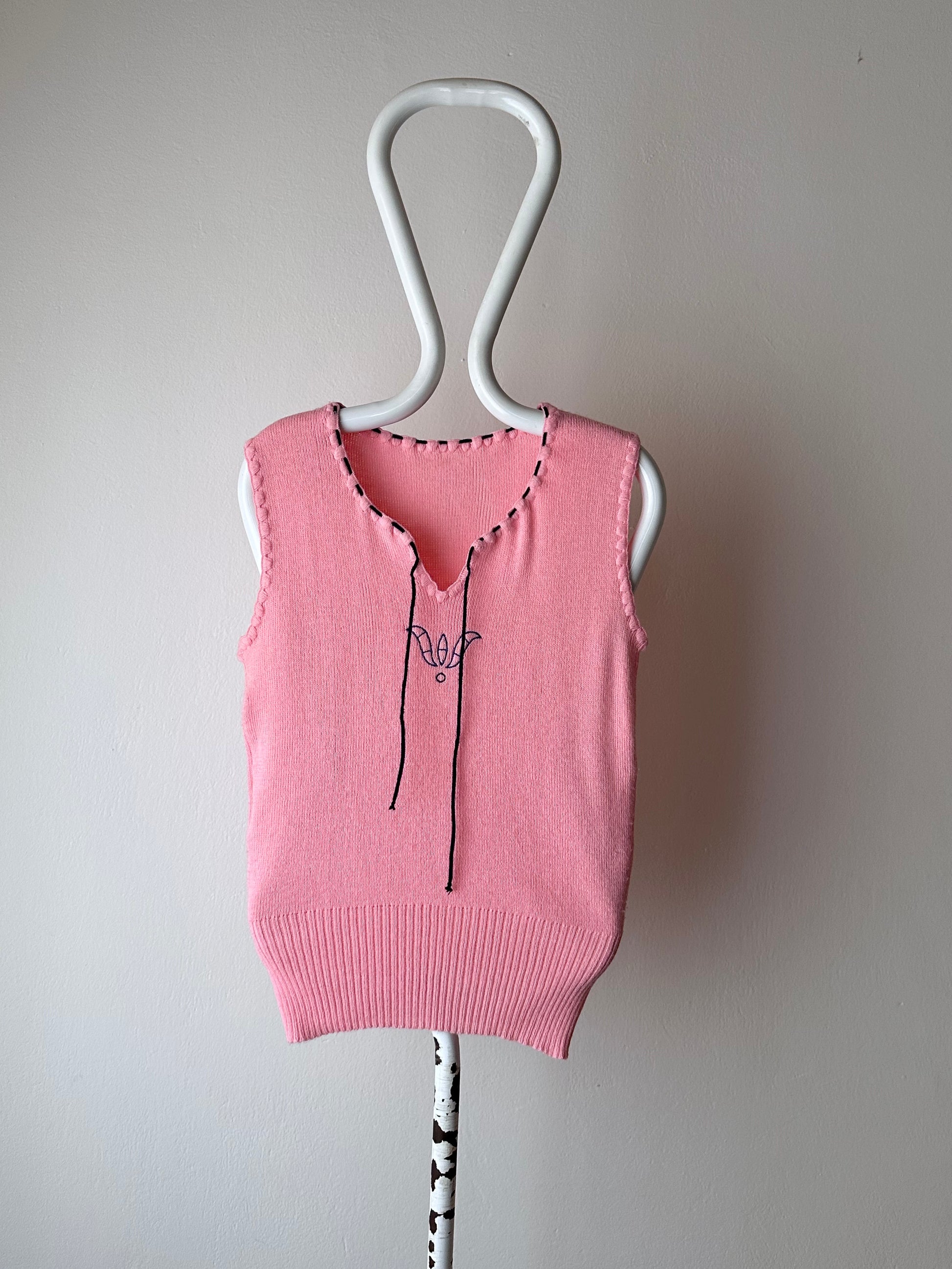 ばり可愛いベイビーピンクのアクリルニットベスト。