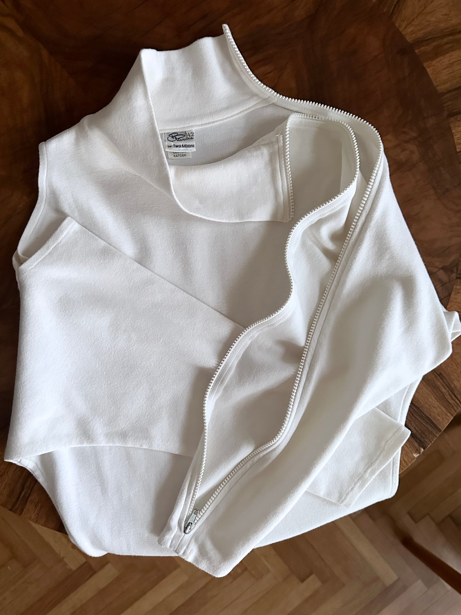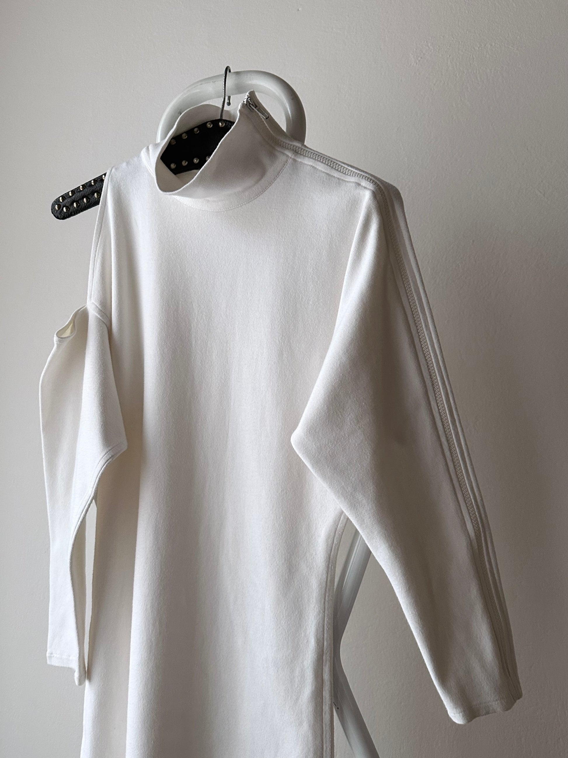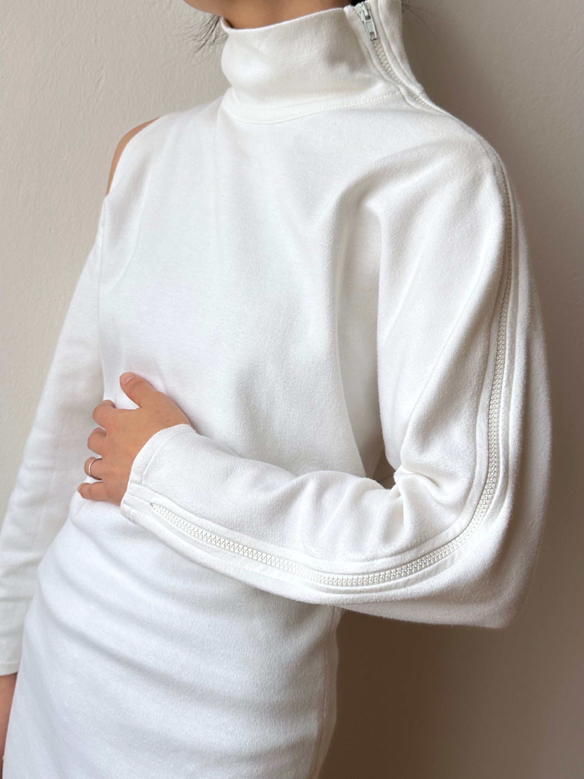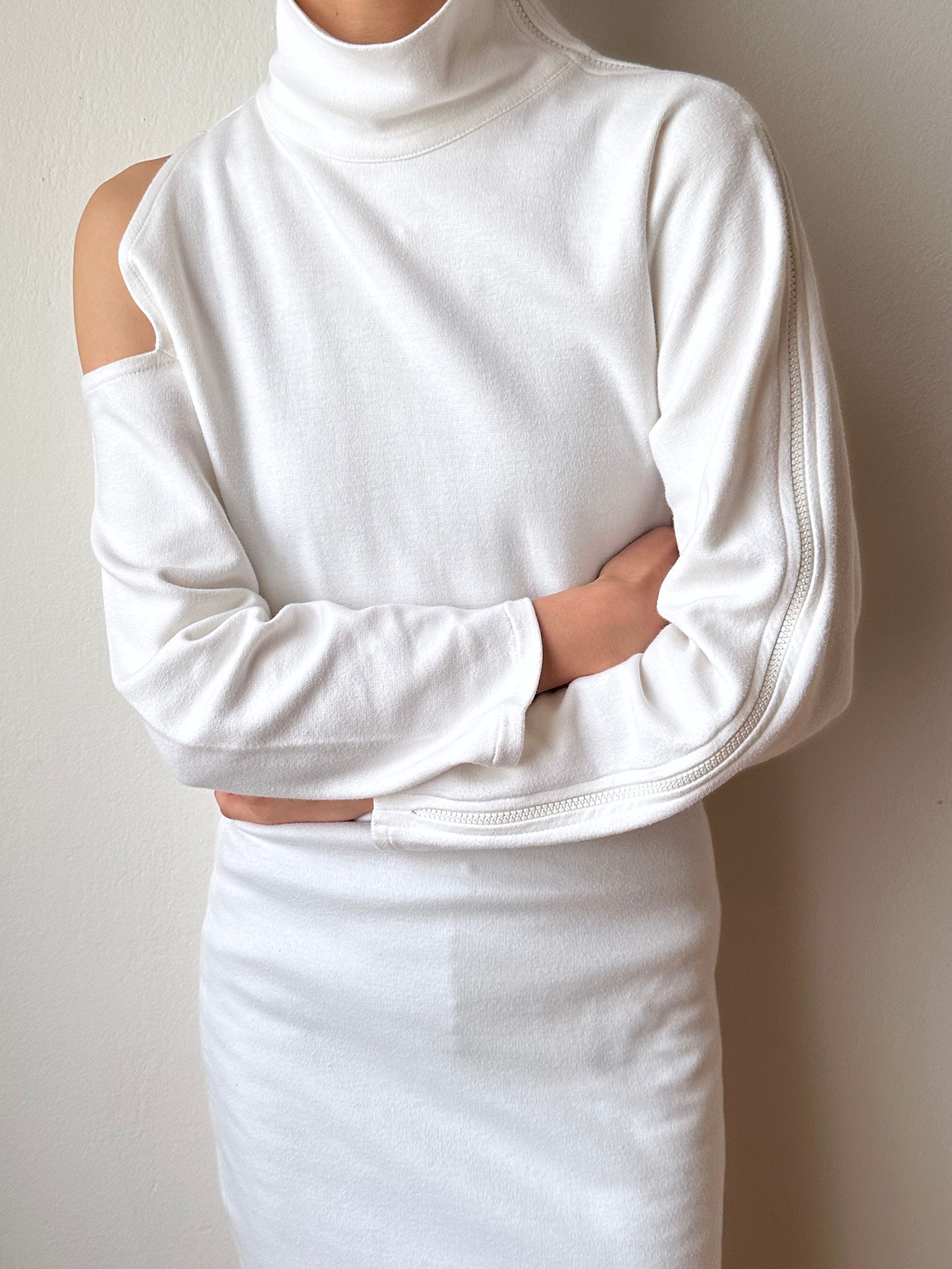 右肩が空いていて、左腕は全てジップになってます。