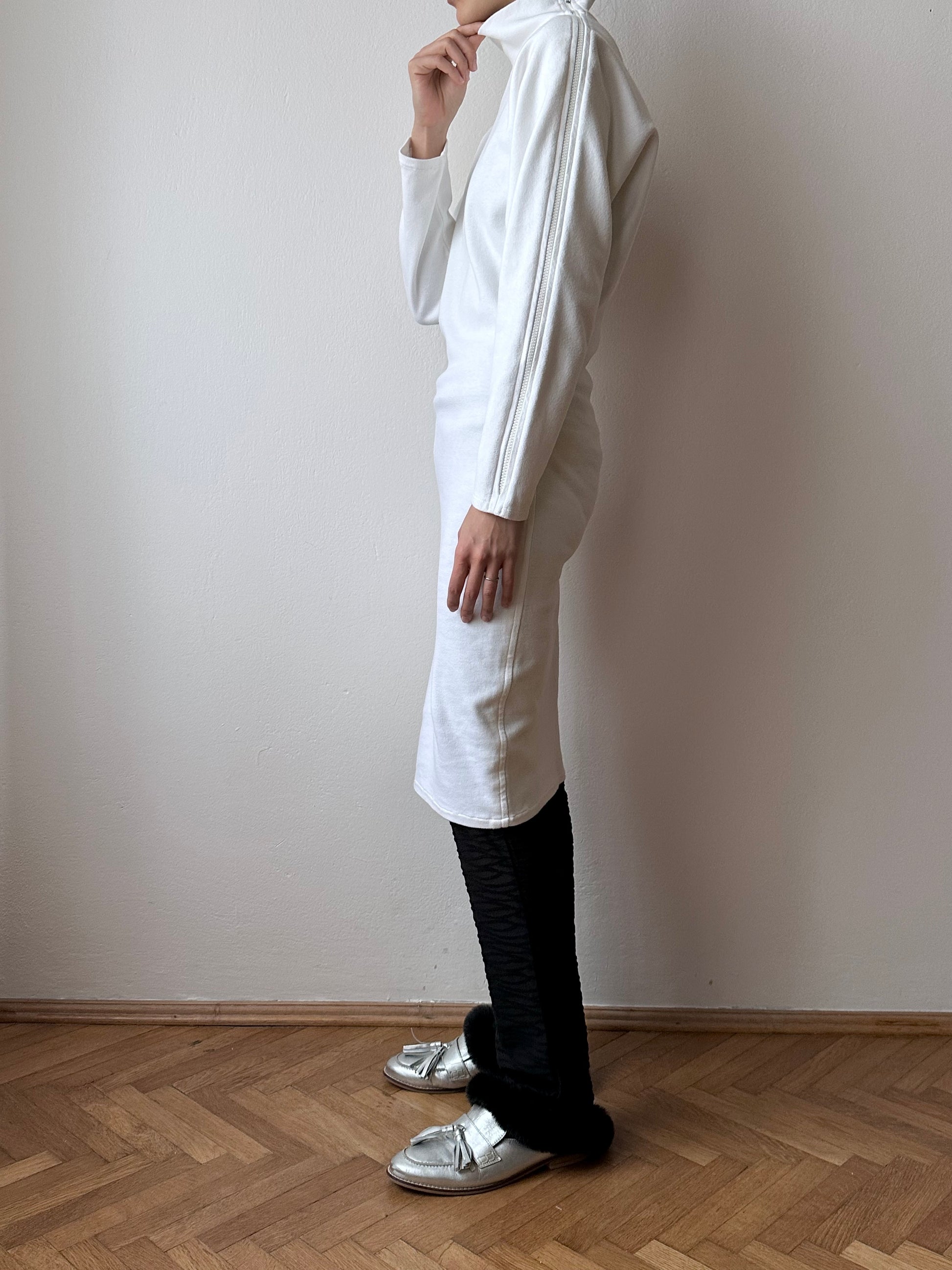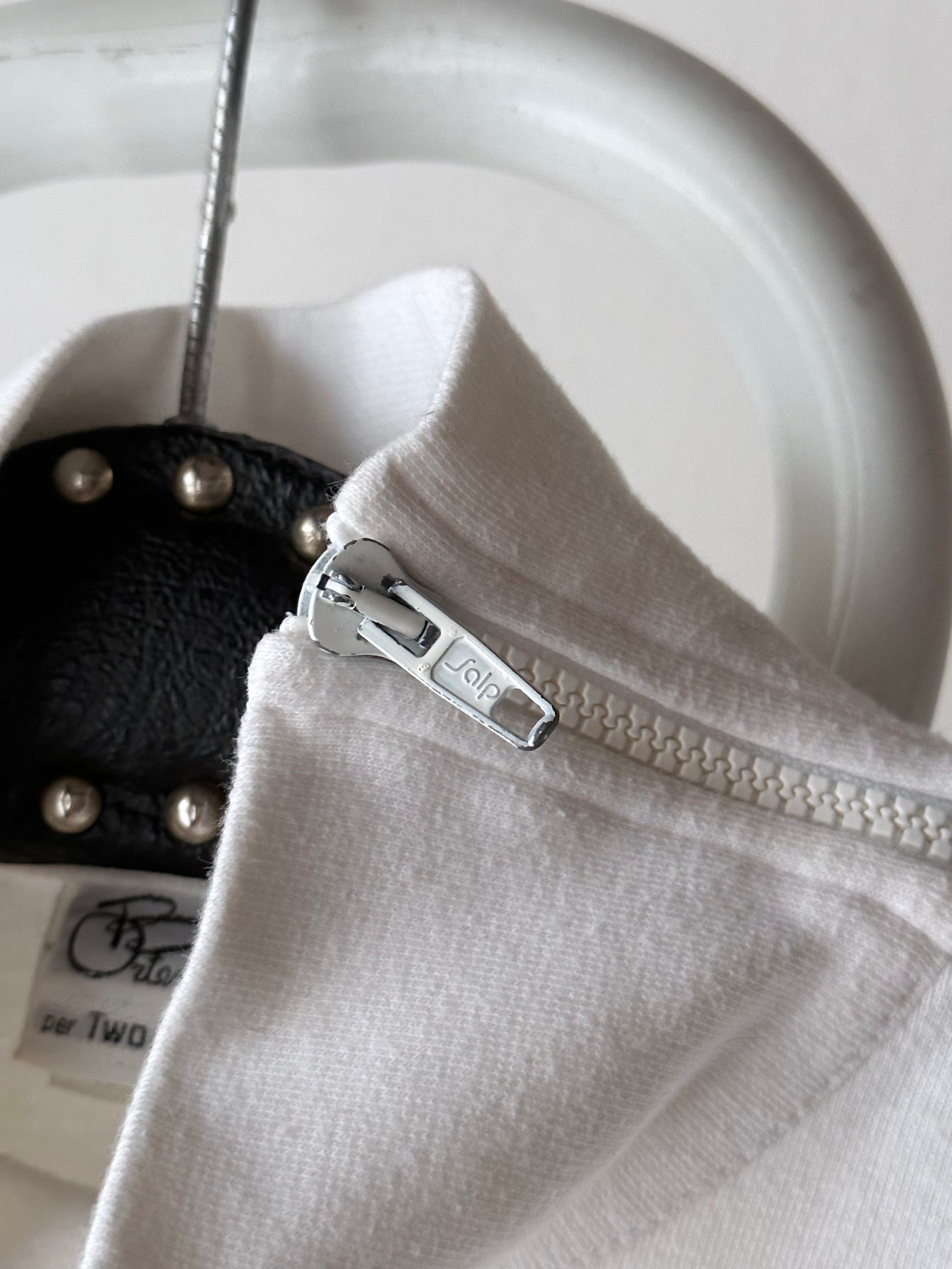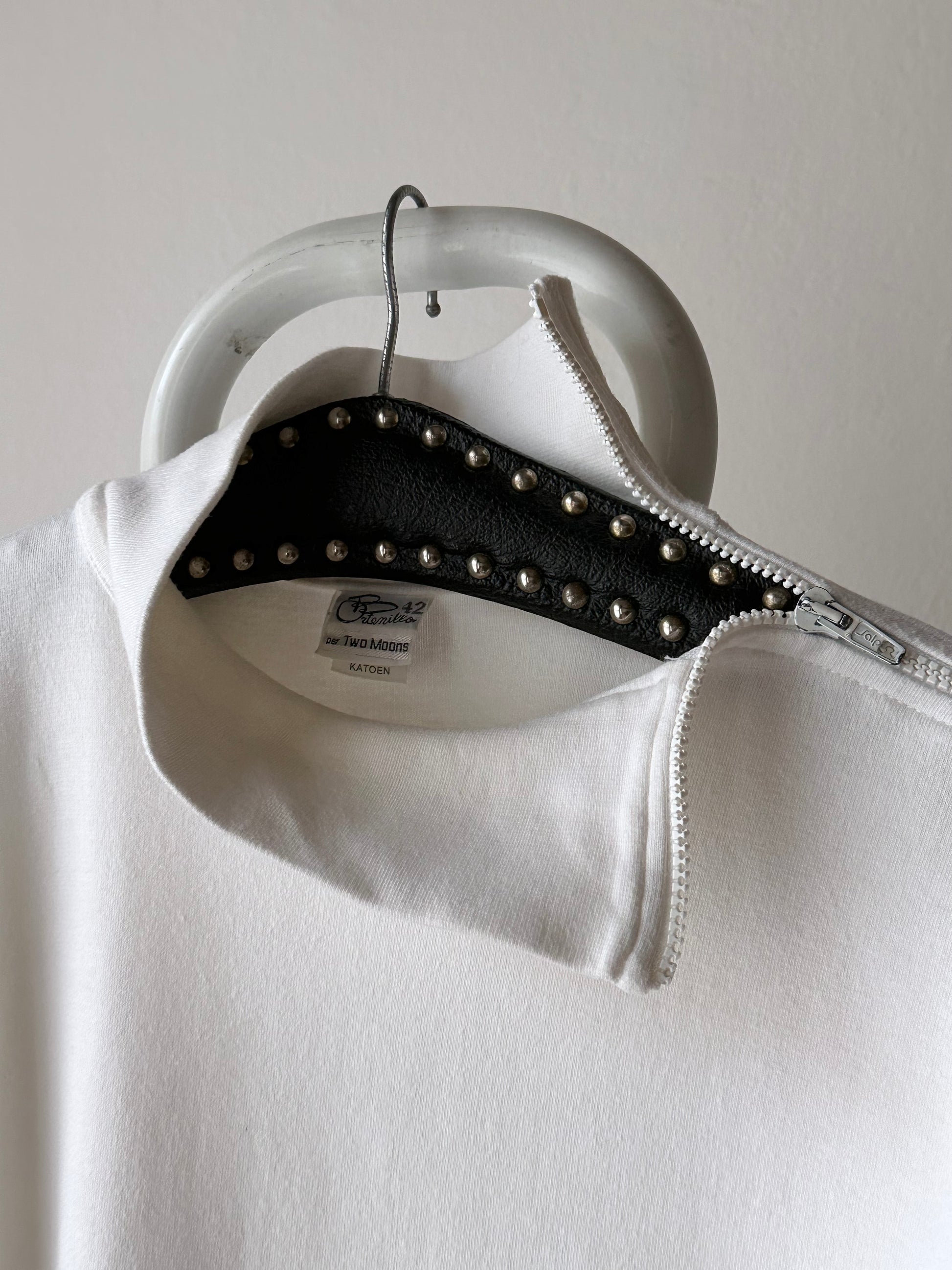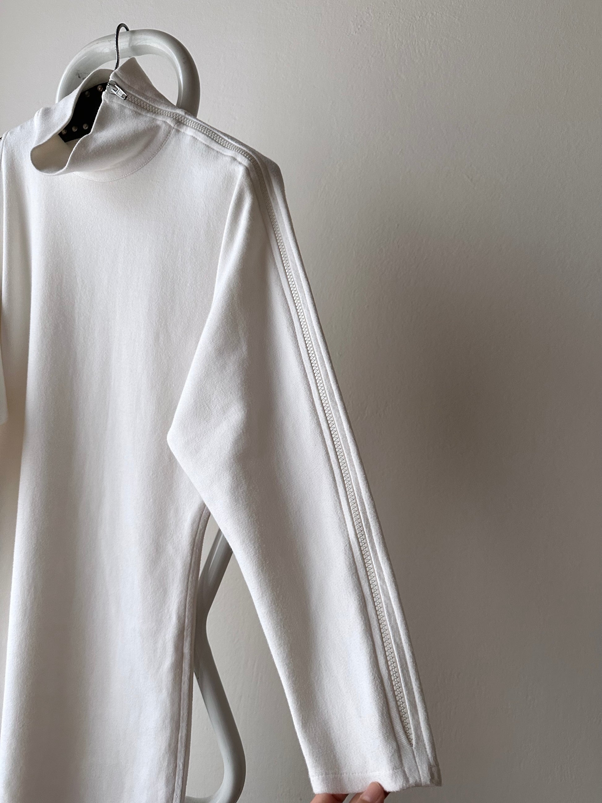 右肩が空いていて、左腕は全てジップになってます。