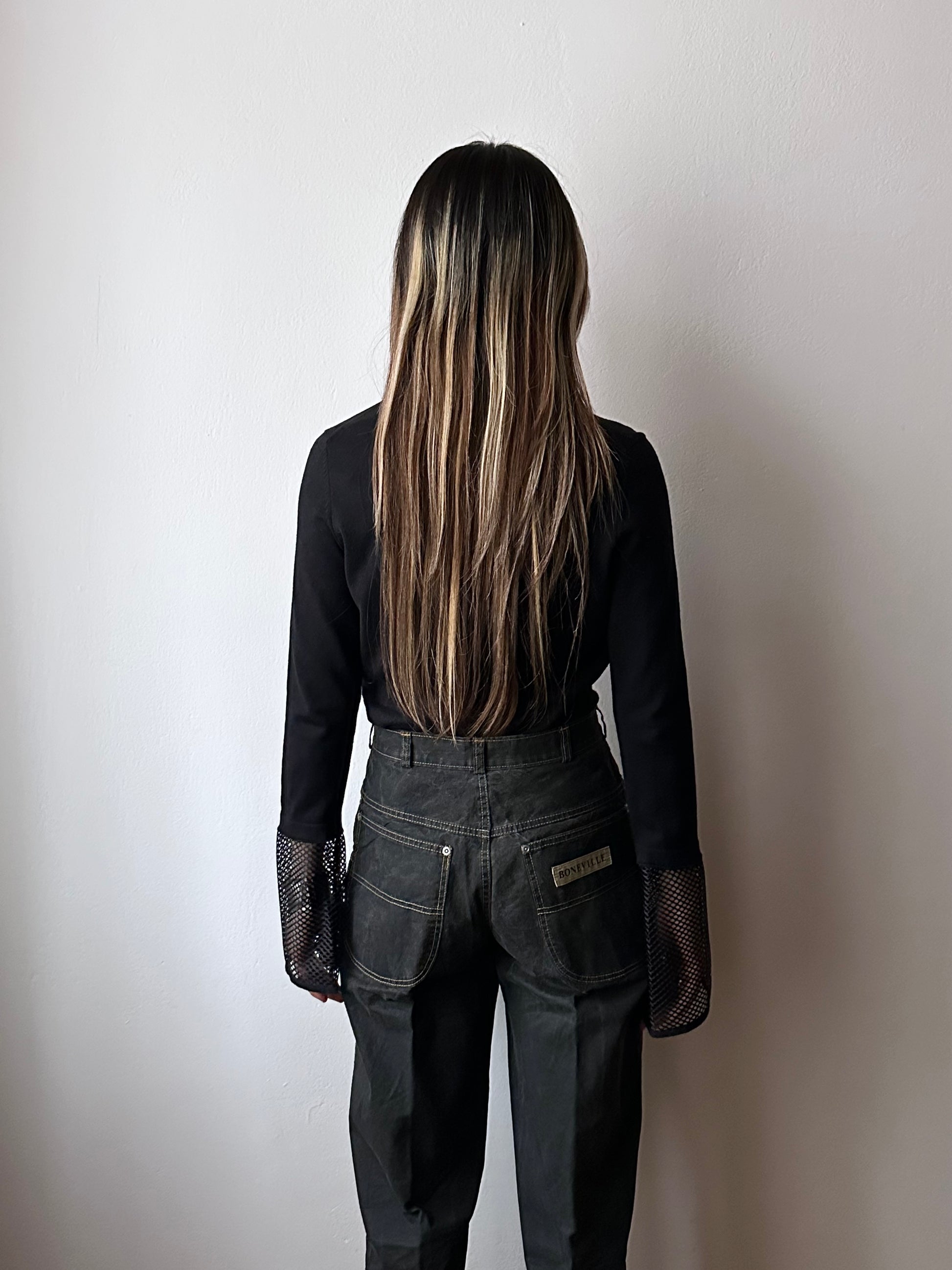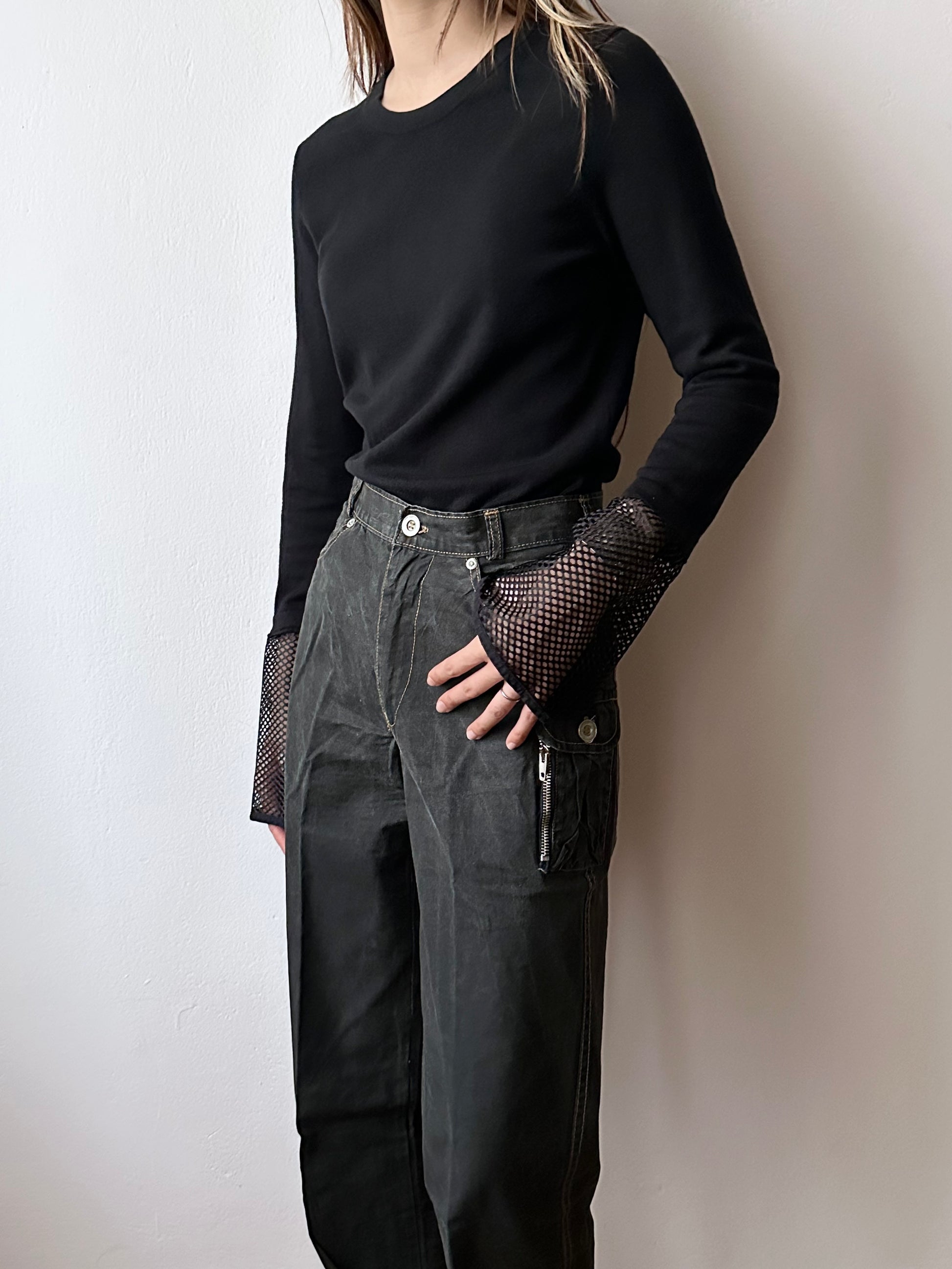 silk cashmere cotton black, mesh cuffs