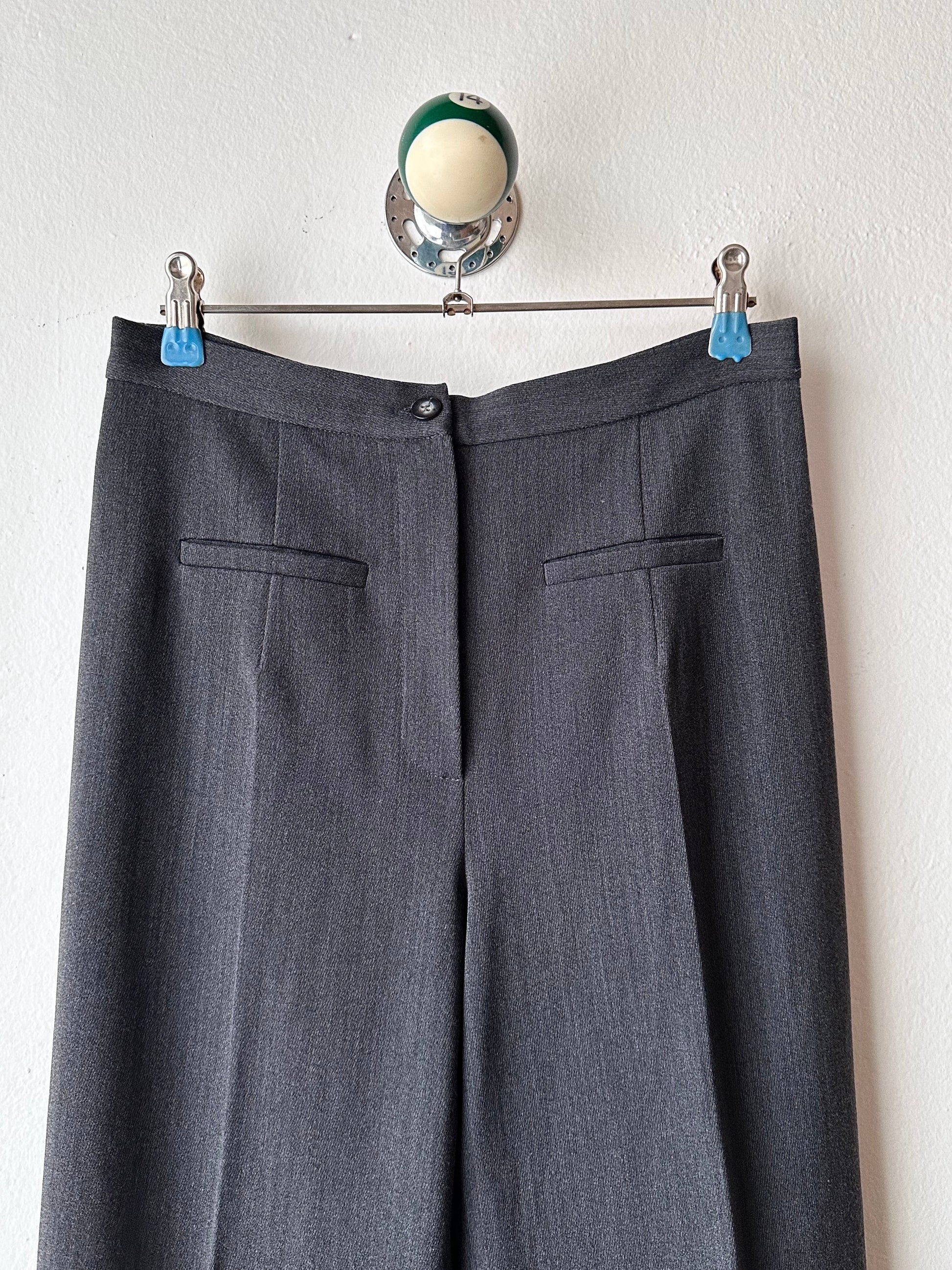 チャコールに近いダークグレーで、履きやすいウールポリー。