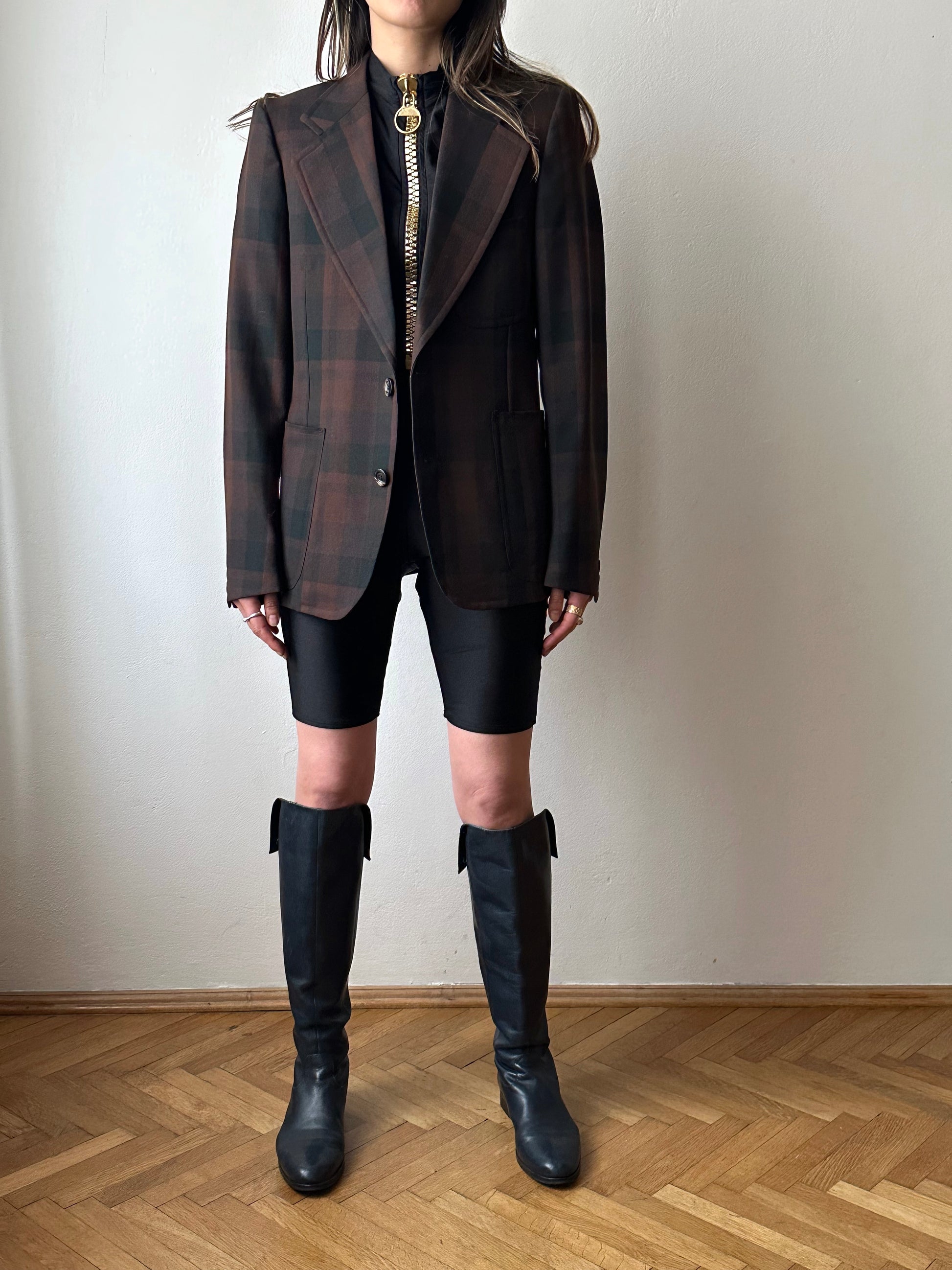 生地はウールですが、分厚くなく毛足もないので夏以外着れますよ。