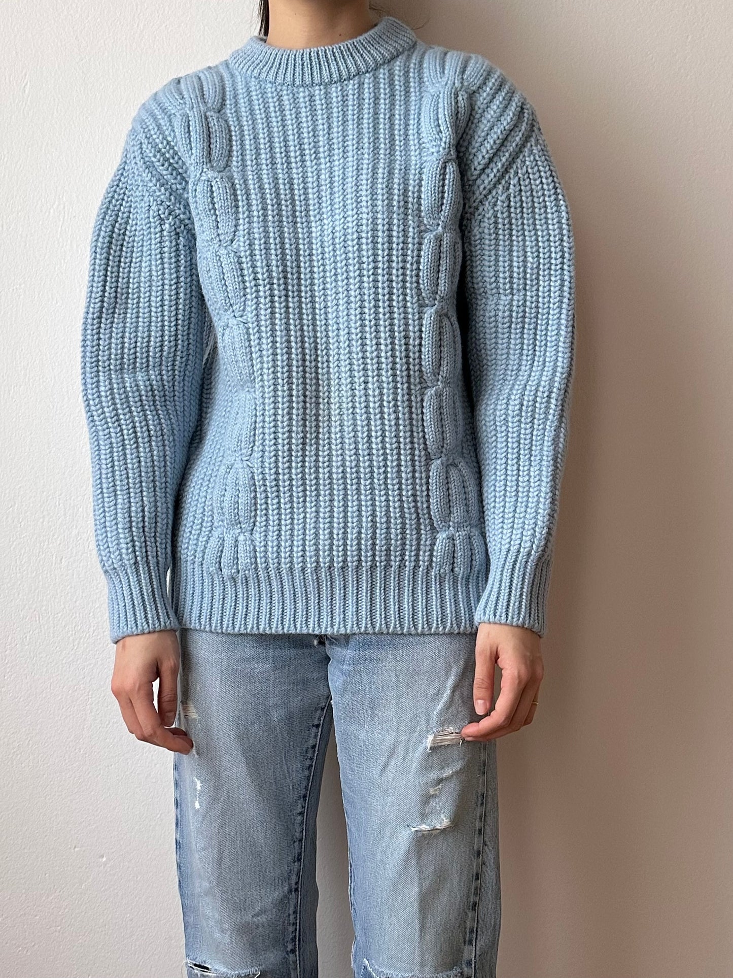 メリヤスとケーブルのシンプルな組み合わせも上品。
