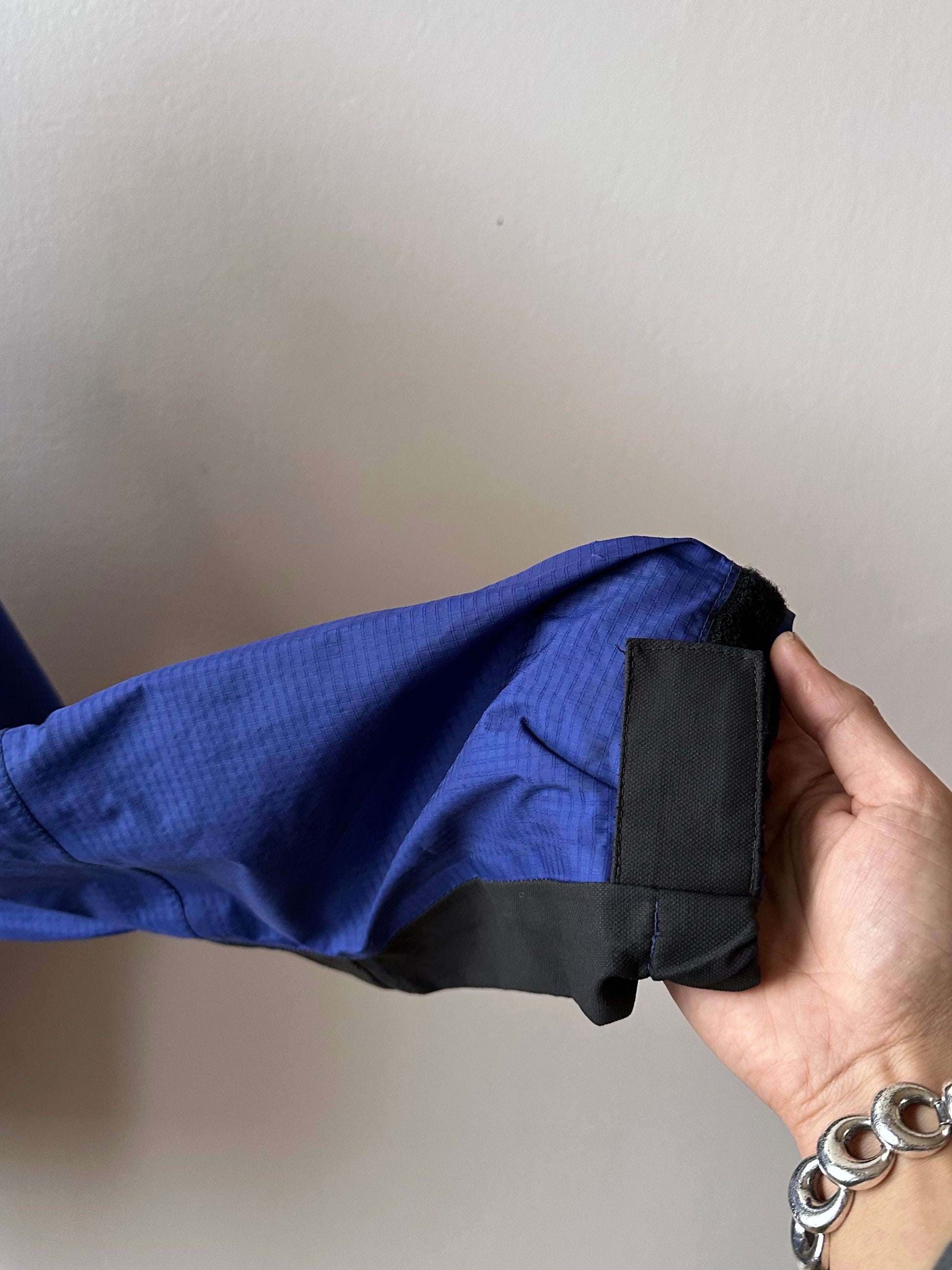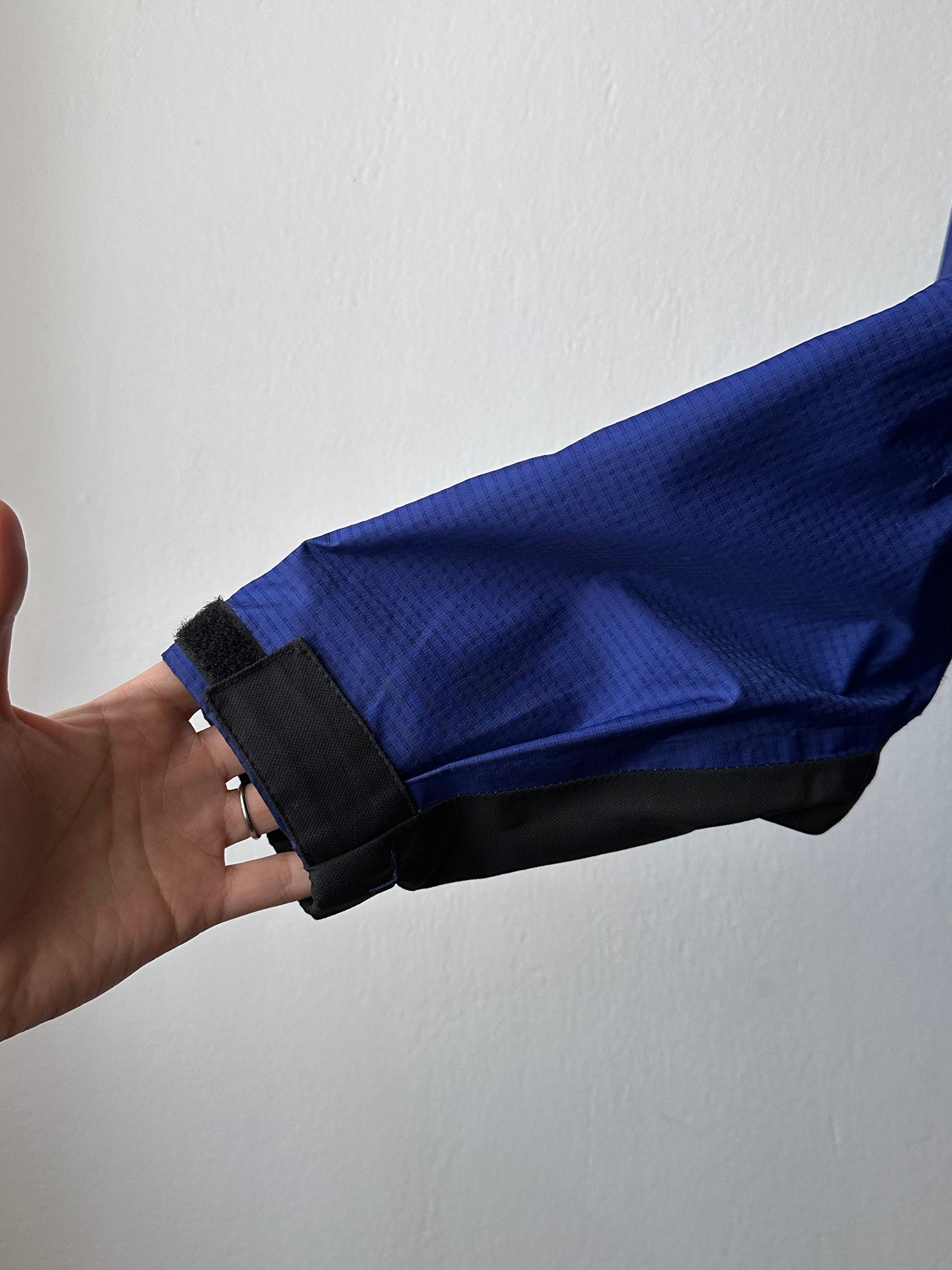 大きめのフード、ツバの部分にはワイヤーが入っています、首元から出ているドローコードを絞ればすんごい防風できます、ウエストと裾にもドローコードあります。
