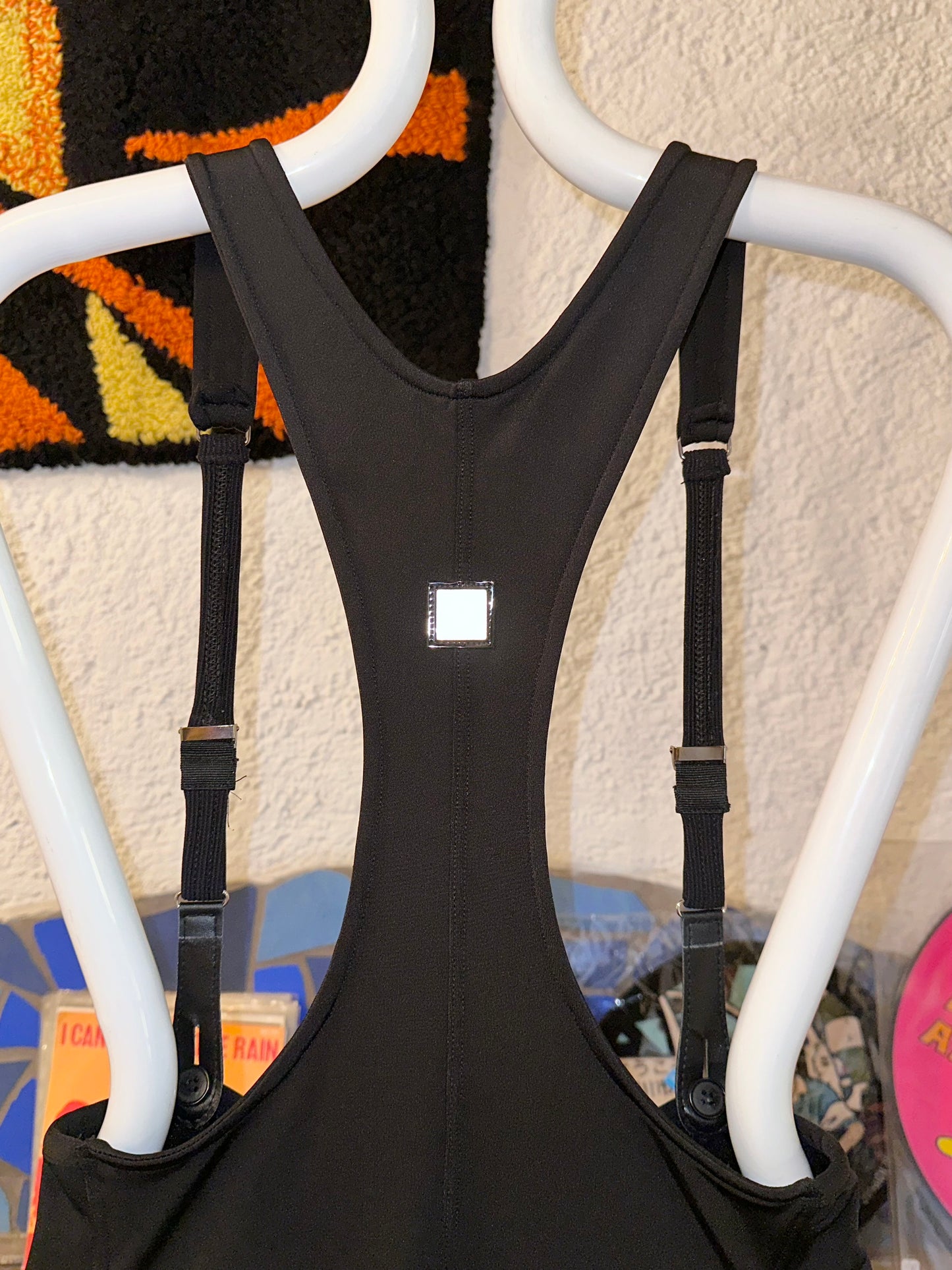 細い幅のサスペンダー、バックにはリフレクターのロゴワッペン。