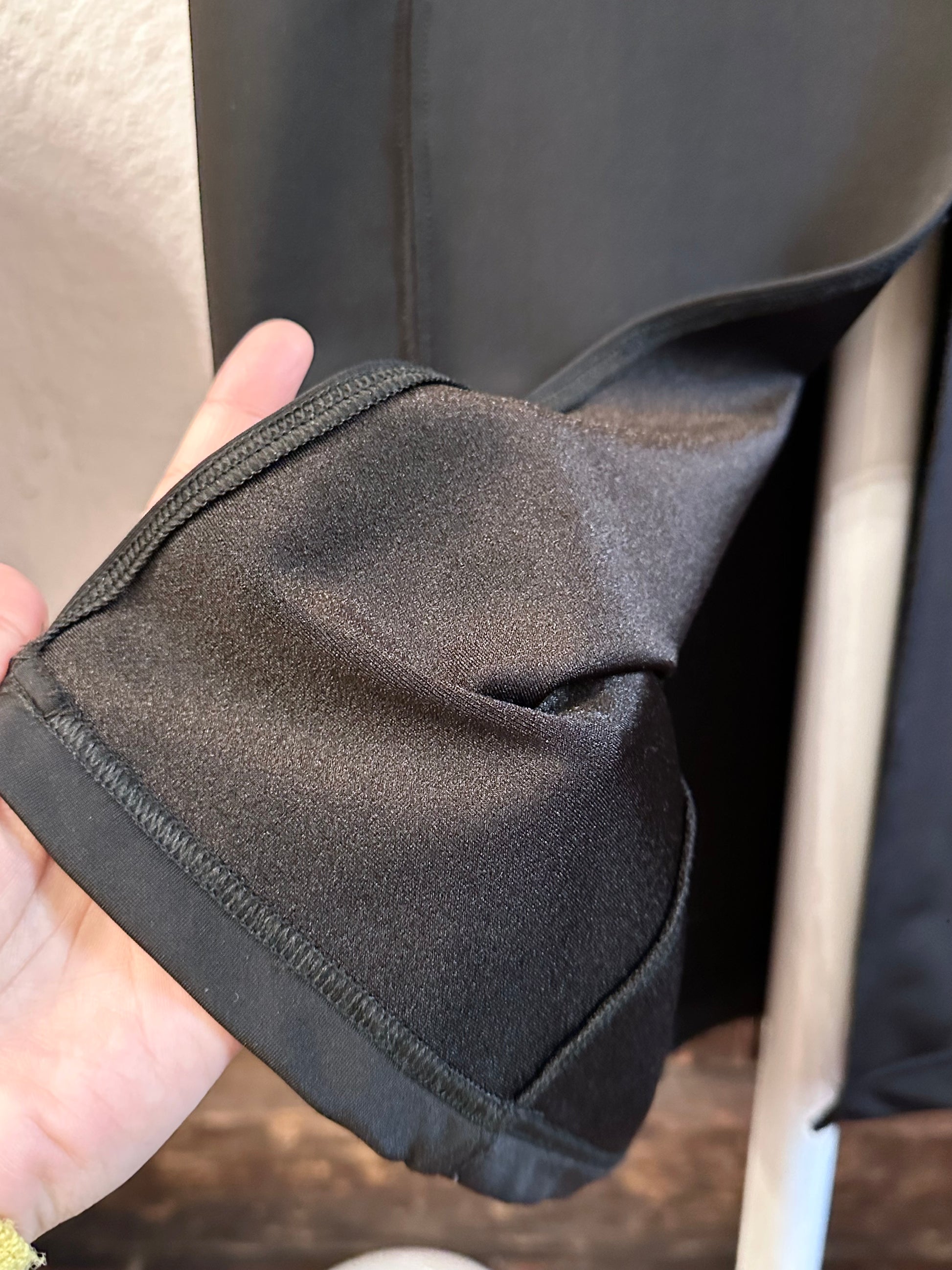 らしいブラックナイロンにはエラスタンが少し入って、水着みたいな弾力性のある素材です。