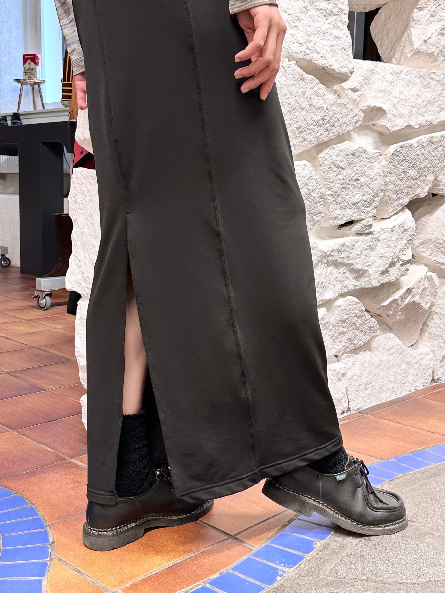 バックスリットはしっかりめで女らしさを忘れないデザイン。