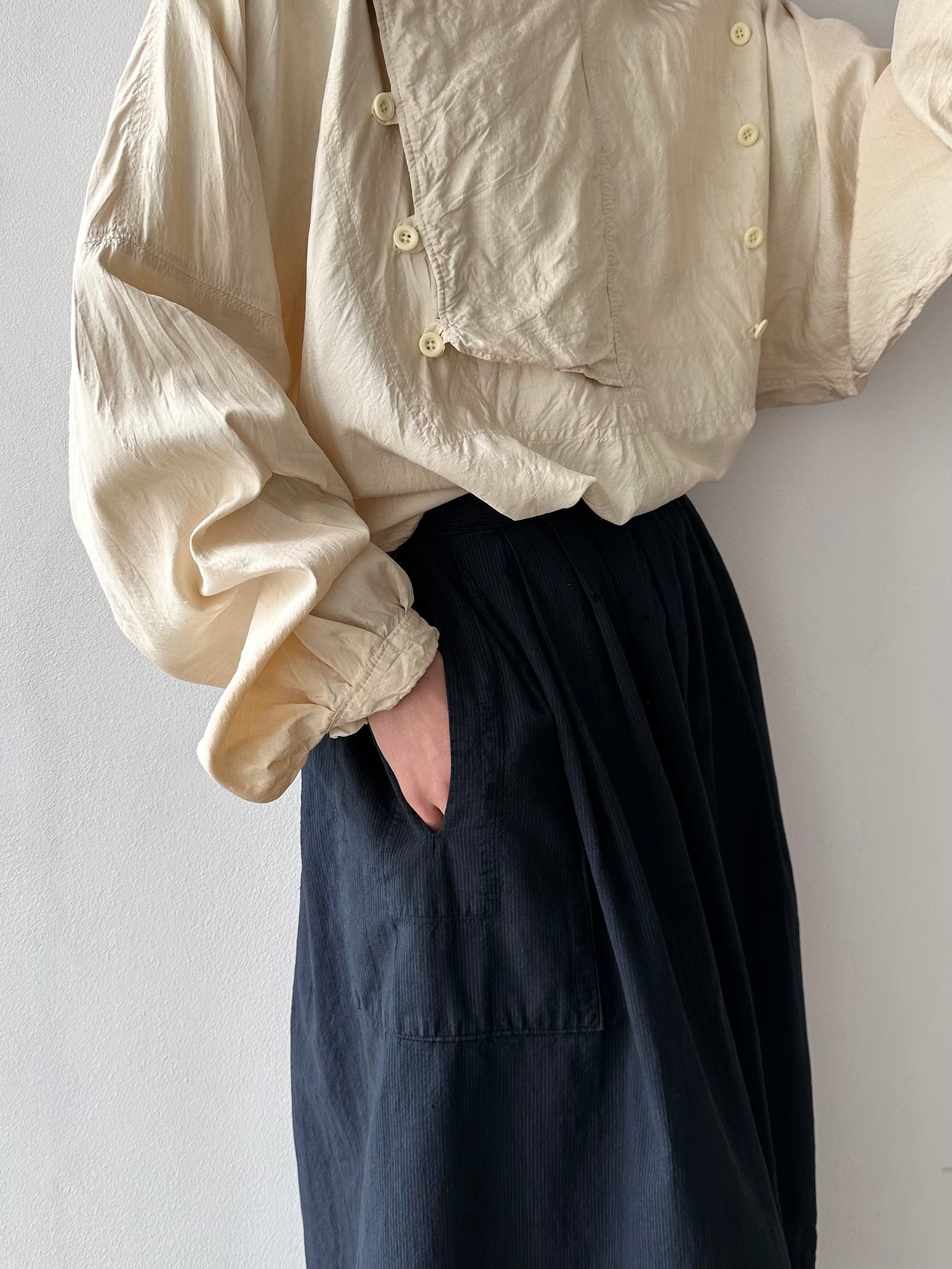 ウエスト部分は、細かく生地を寄せ集めたギャザーではなく、