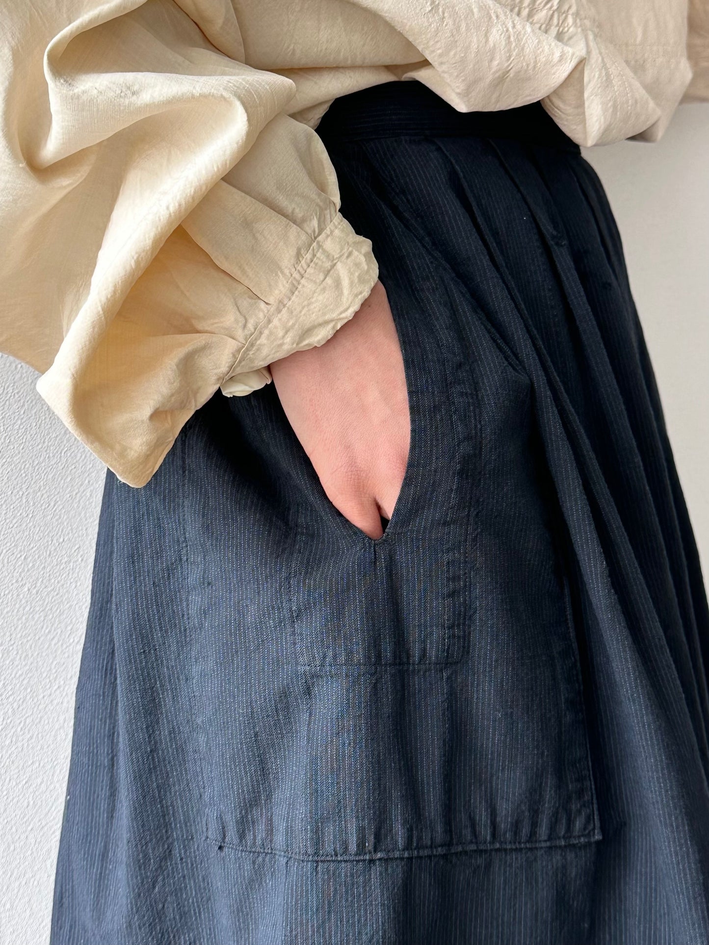 綺麗な紺染にうっすらとストライプの丈夫な生地は