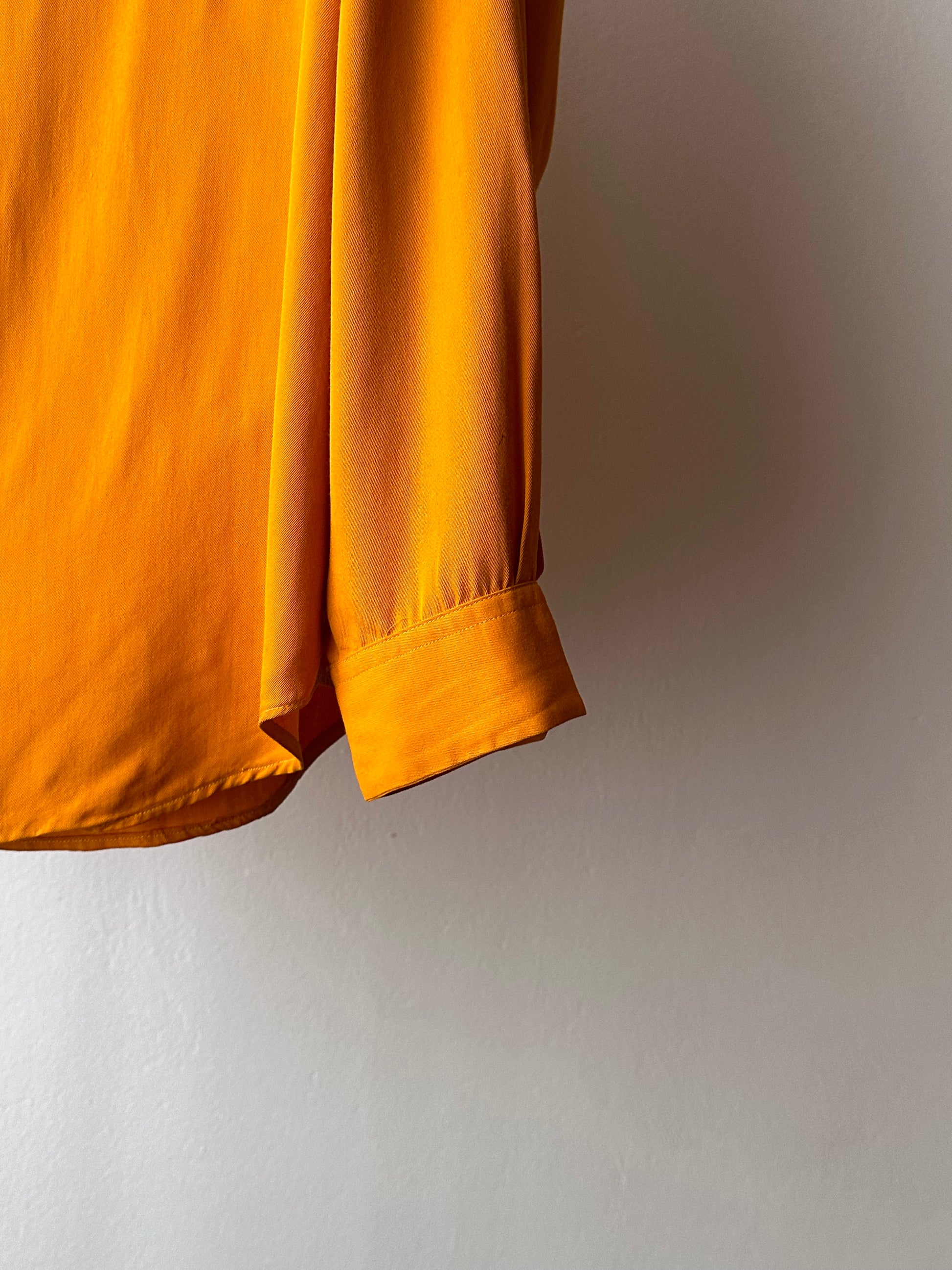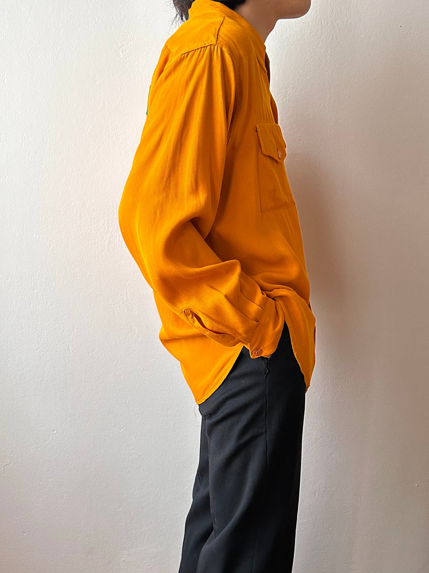 表記15h, M ですがメンズL~XLぐらいなんで緩くて良いサイズですね。このサイズのレーヨンシャツほんと色気がやばいです。