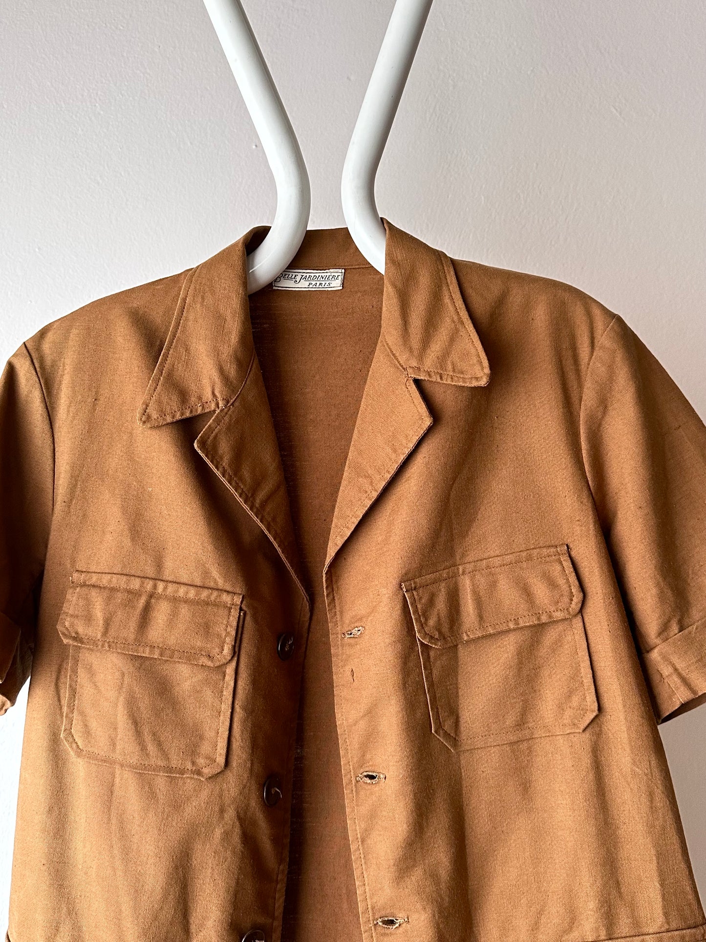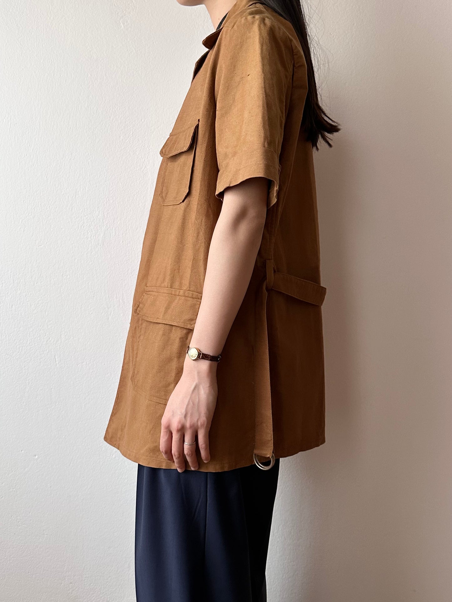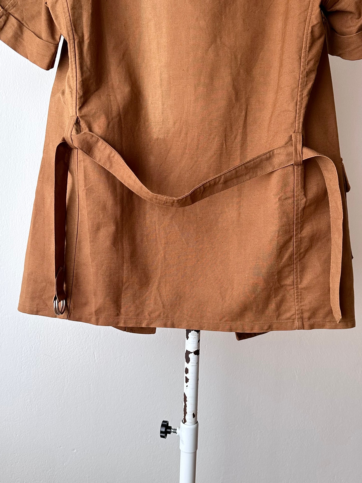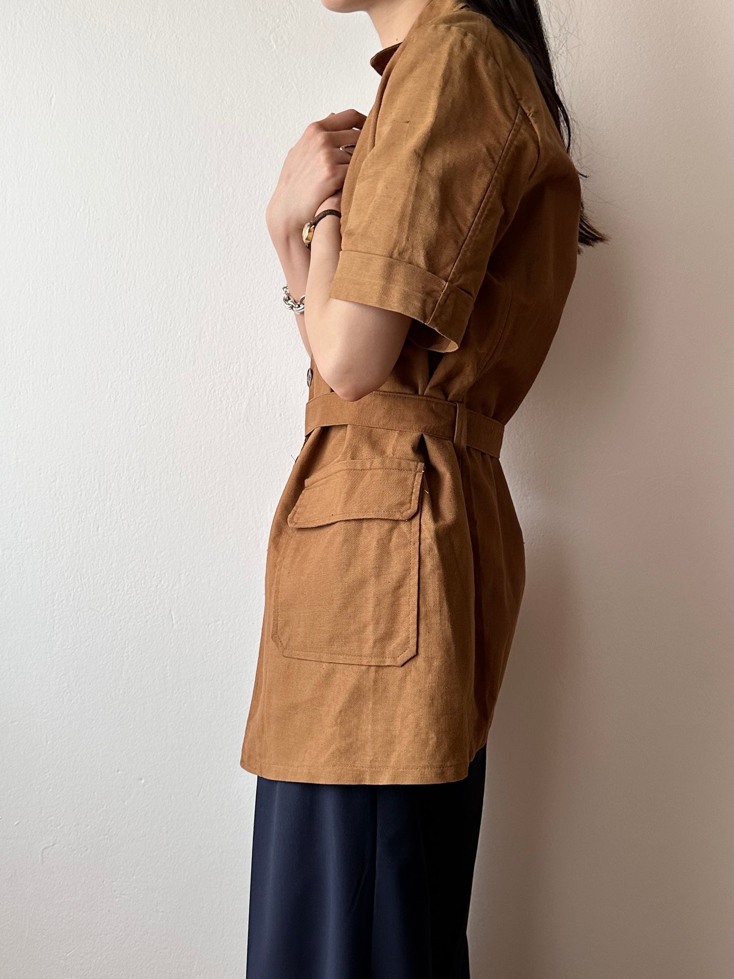 折り返しの半袖にウエストベルト付きでサファリジャケットのような風貌のフレンチヴィンテージ、めちゃくちゃ刺さります。唆られます。