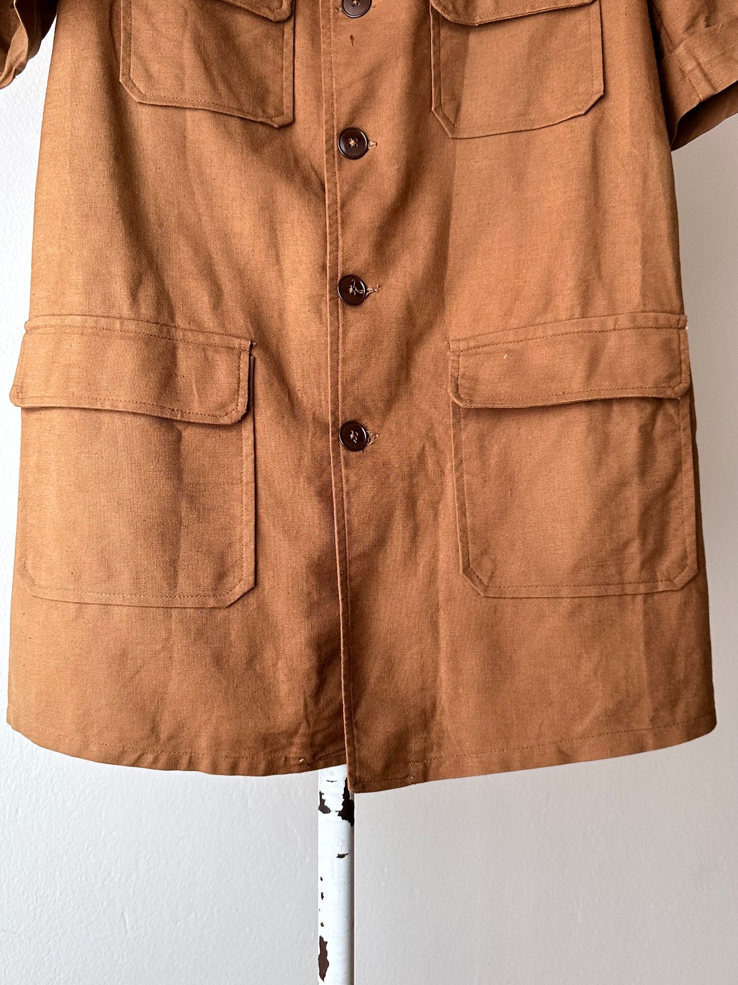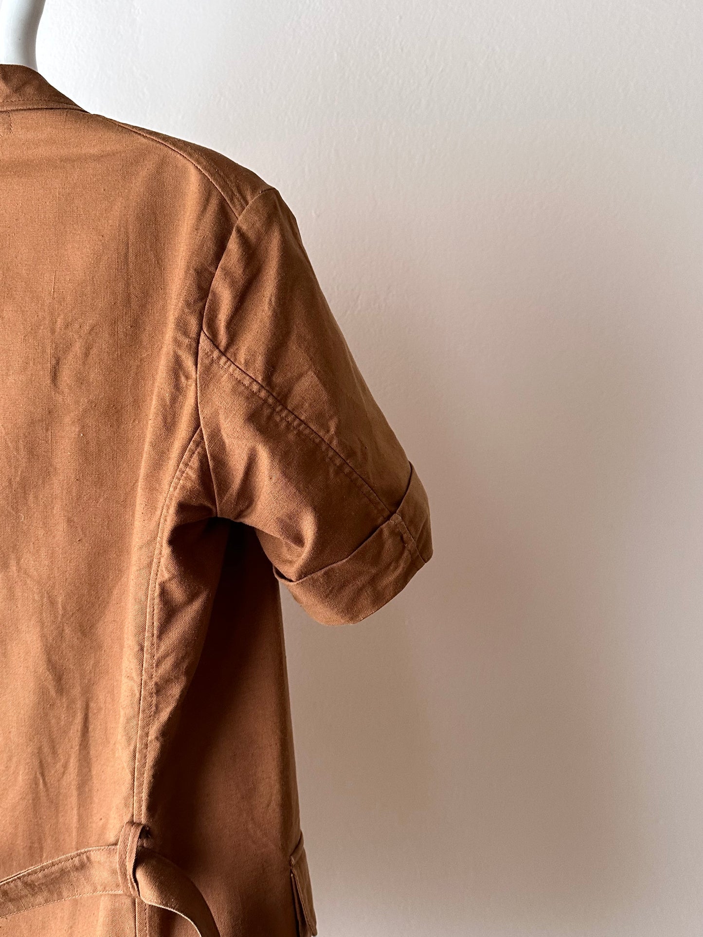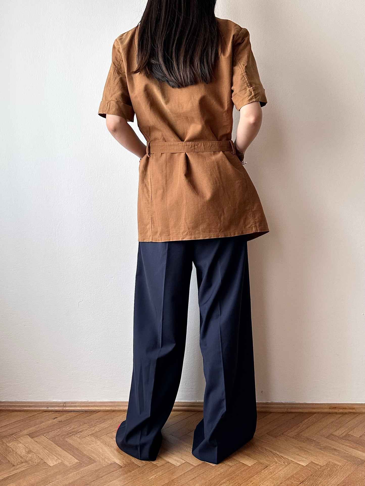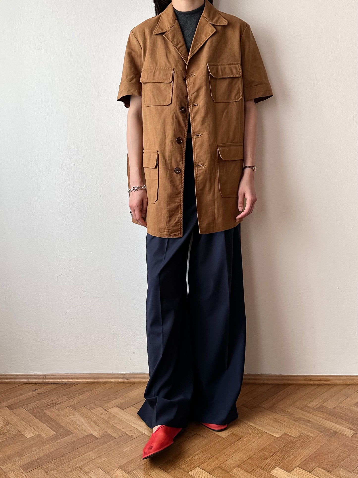 折り返しの半袖にウエストベルト付きでサファリジャケットのような風貌のフレンチヴィンテージ、めちゃくちゃ刺さります。唆られます。