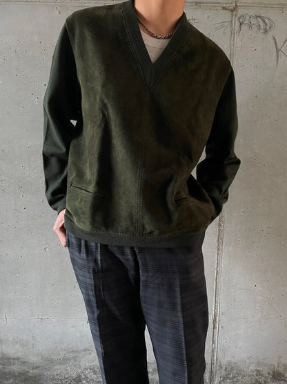 60年代のレザースウェードとニット切り替えのプルオーバートップ。
