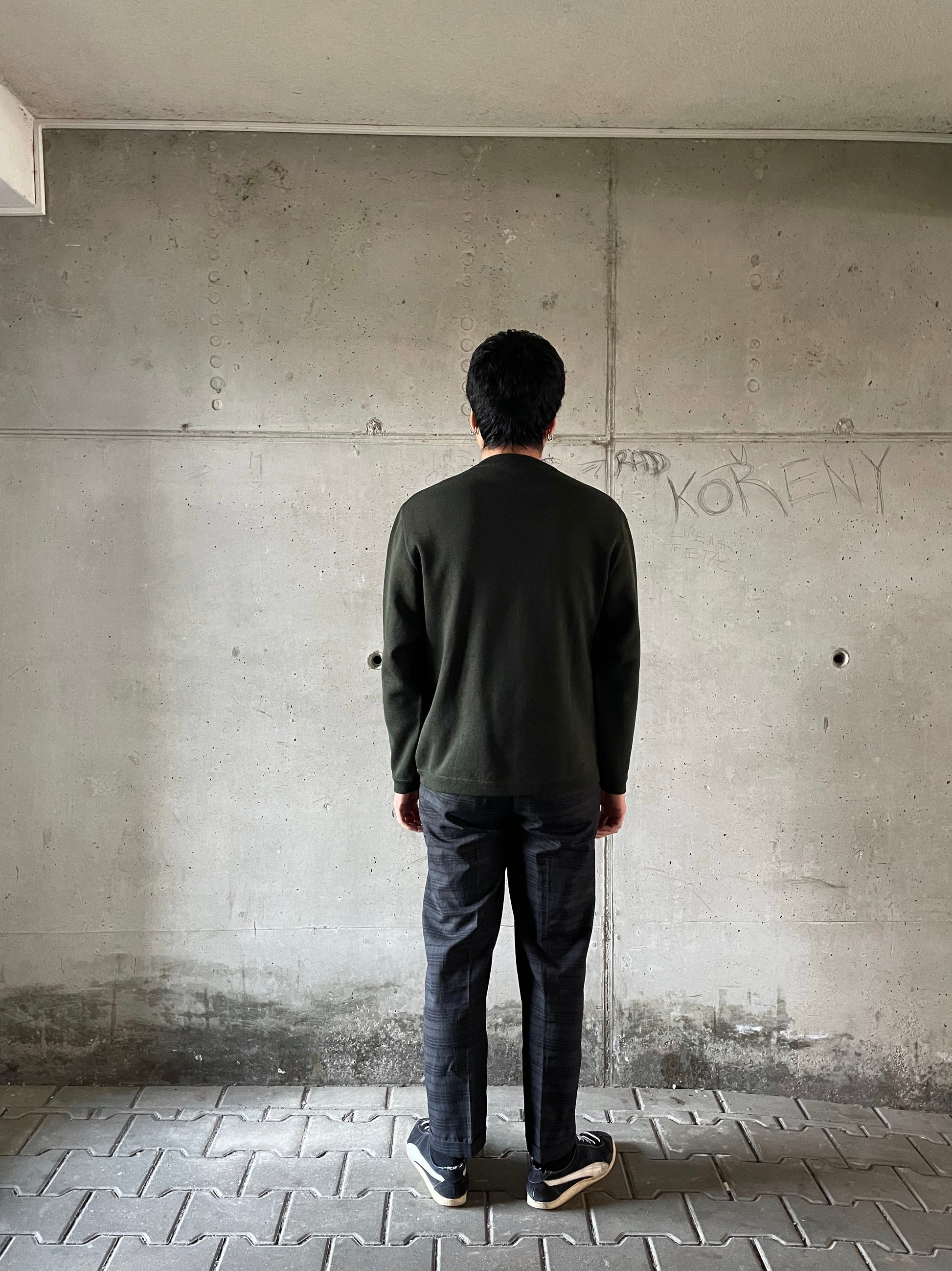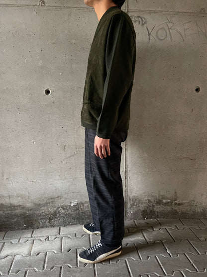 品漂う深い緑に、キメの細かいスウェードと、ハイゲージのニットコンビ。メリノウールでほんと上質です。