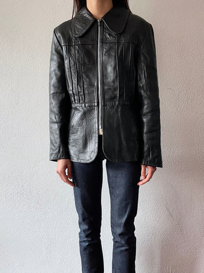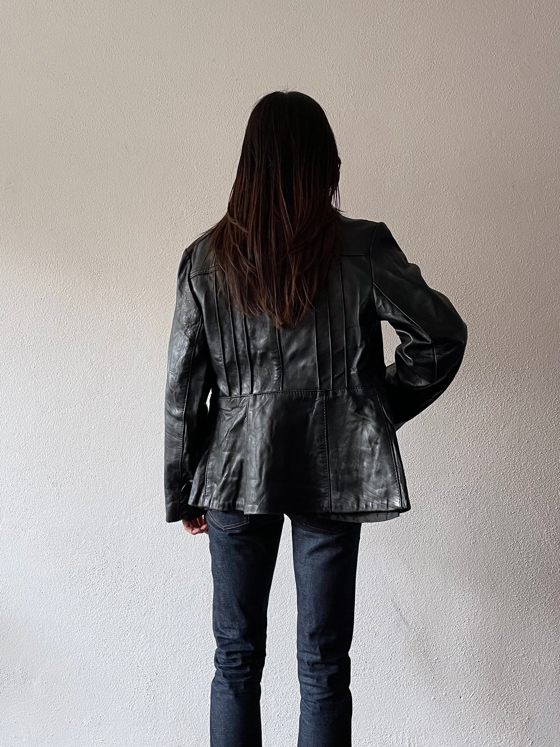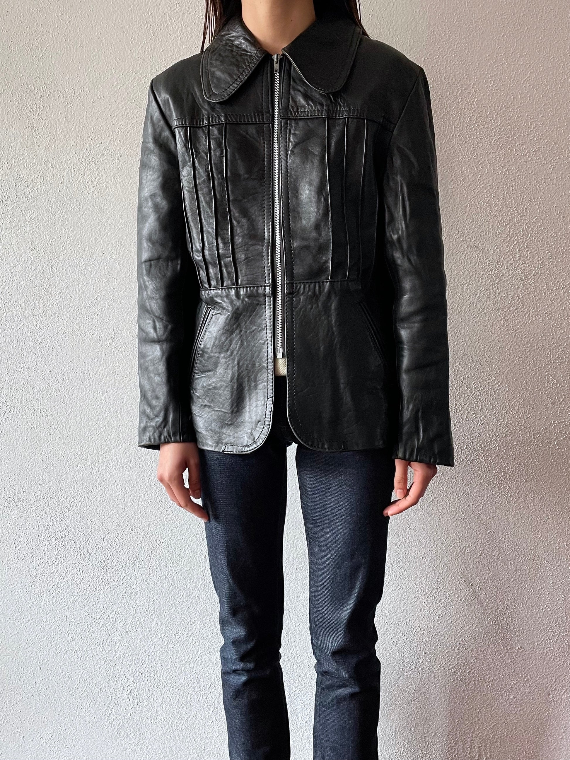 70's black leather jacket