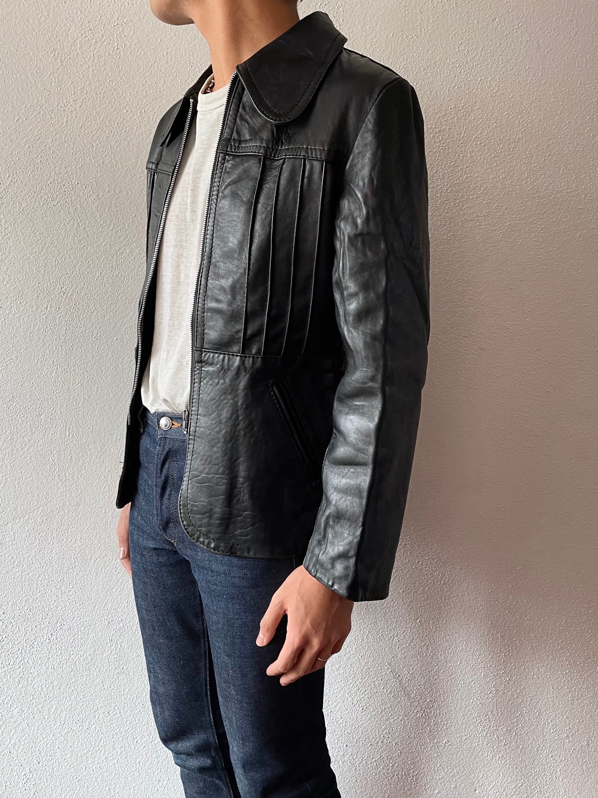 70年代黒のシングルレザージャケット。