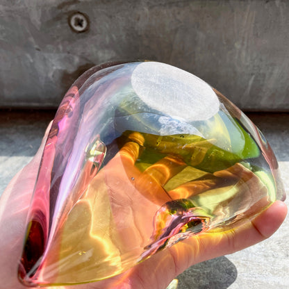 着色された湾曲なガラスが見る角度によって様々な光り方をします。
