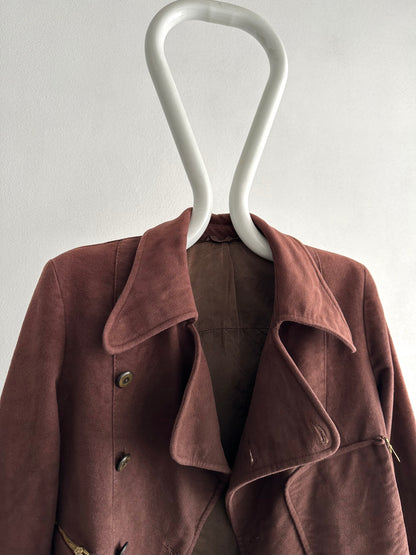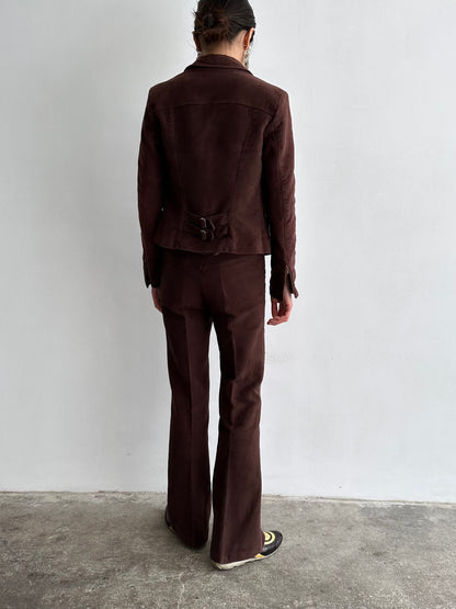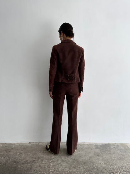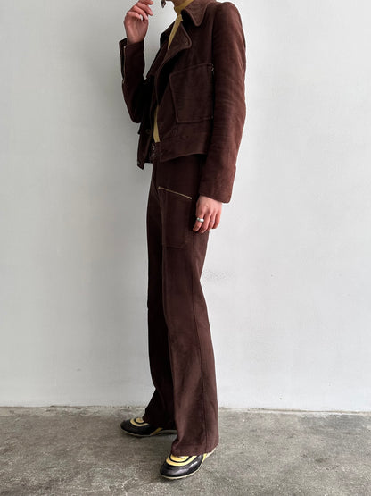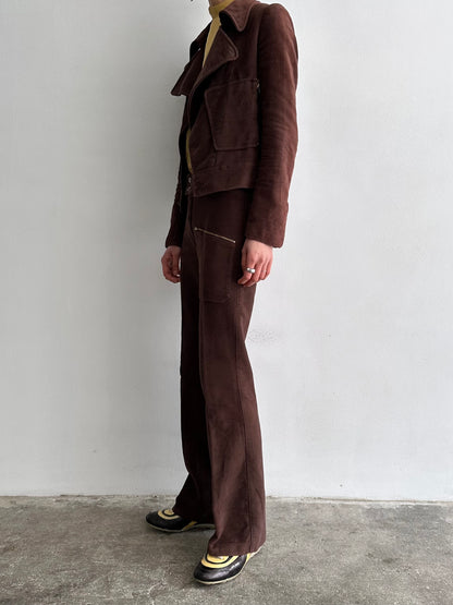各所のエッジィなデザインがとてもファッショナブルで華やかなオーラを持つスーツ。