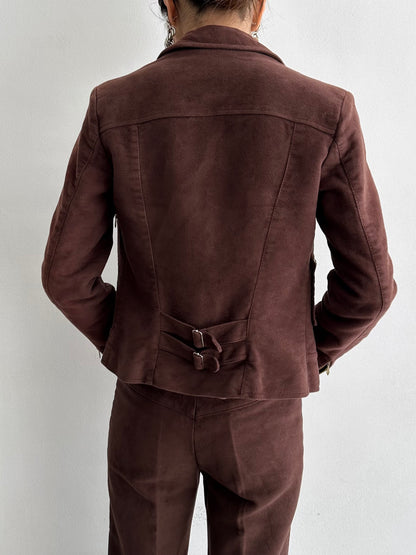 着てみるとしっかり絞るとこ絞られたタイトな形が70sムードなシルエット。