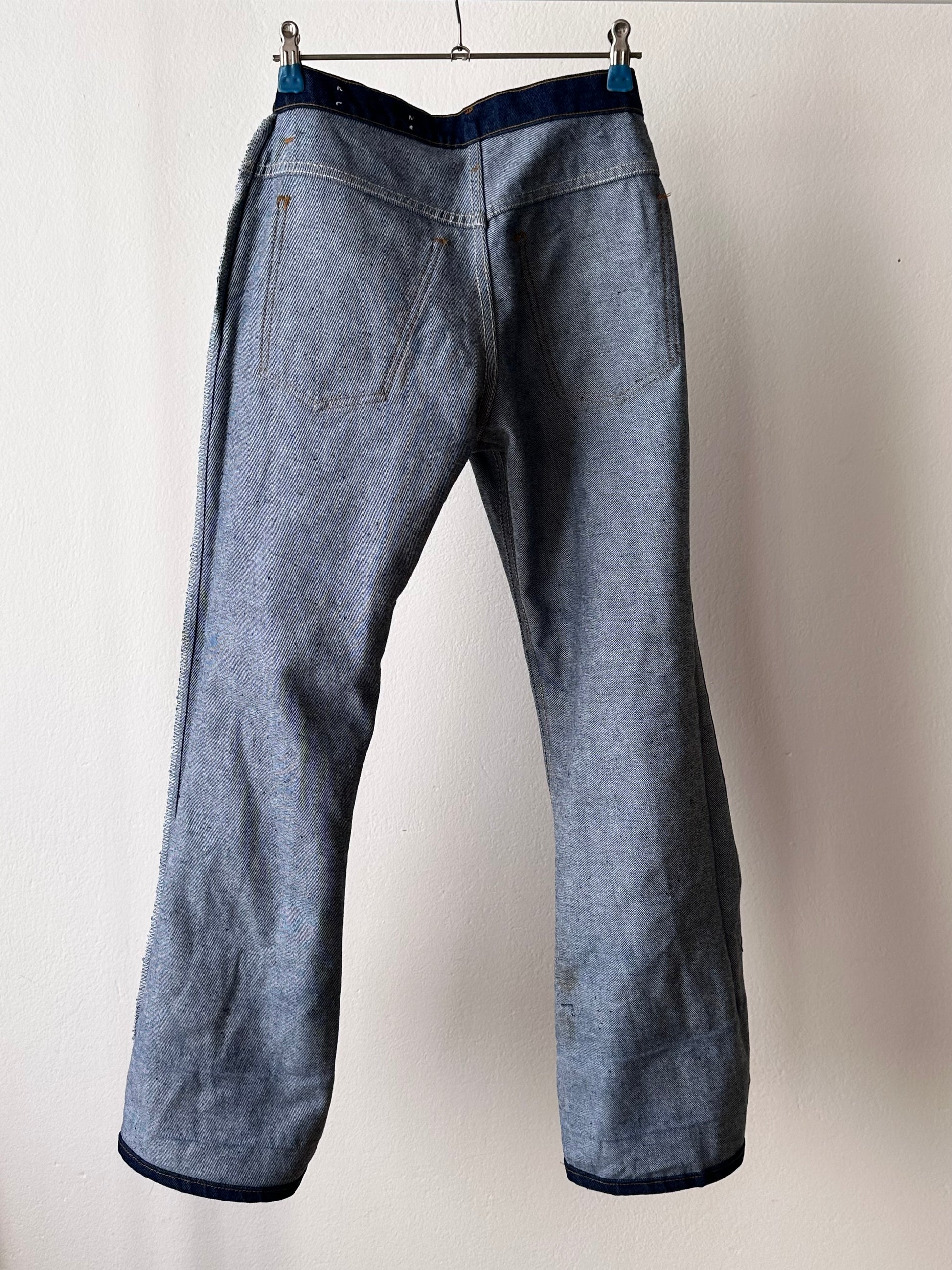 とはいえこの膝下からパカーンと開くフレアは70年代のヒッピーカルチャー渦中のデニムならでは。