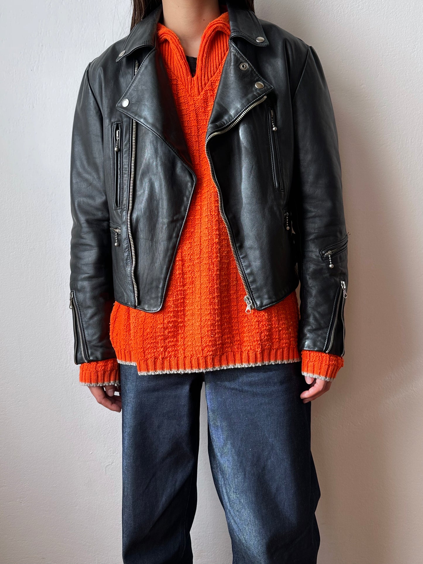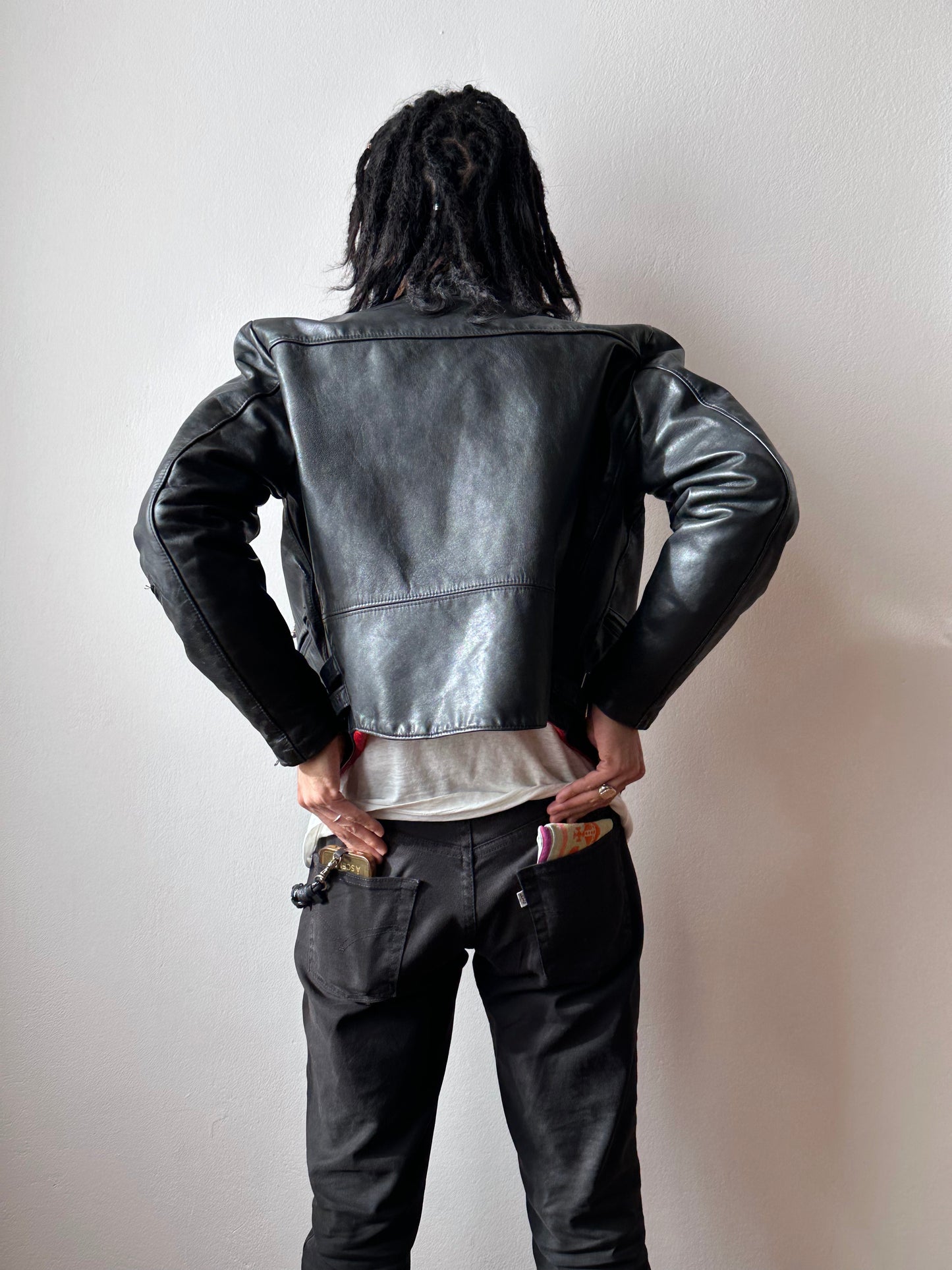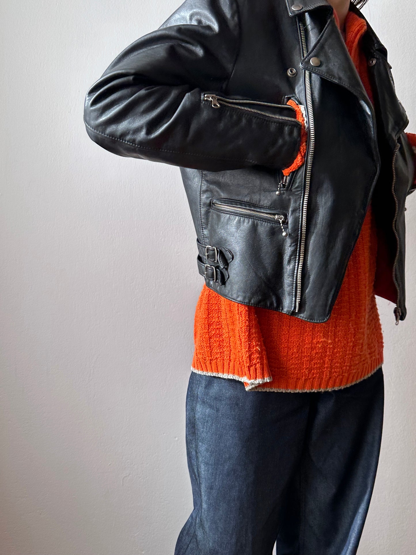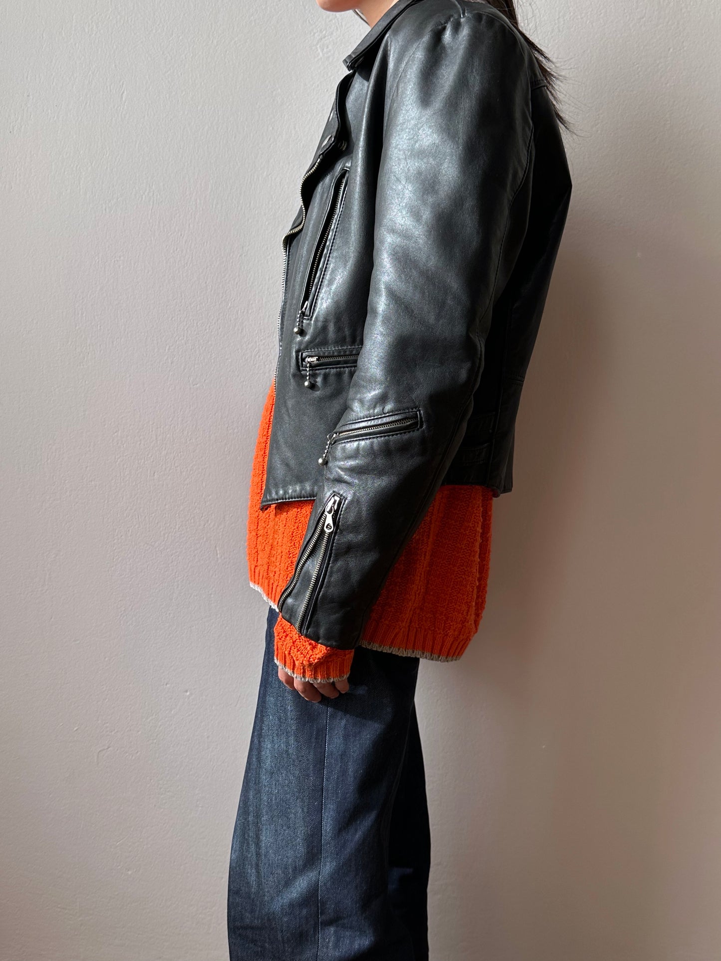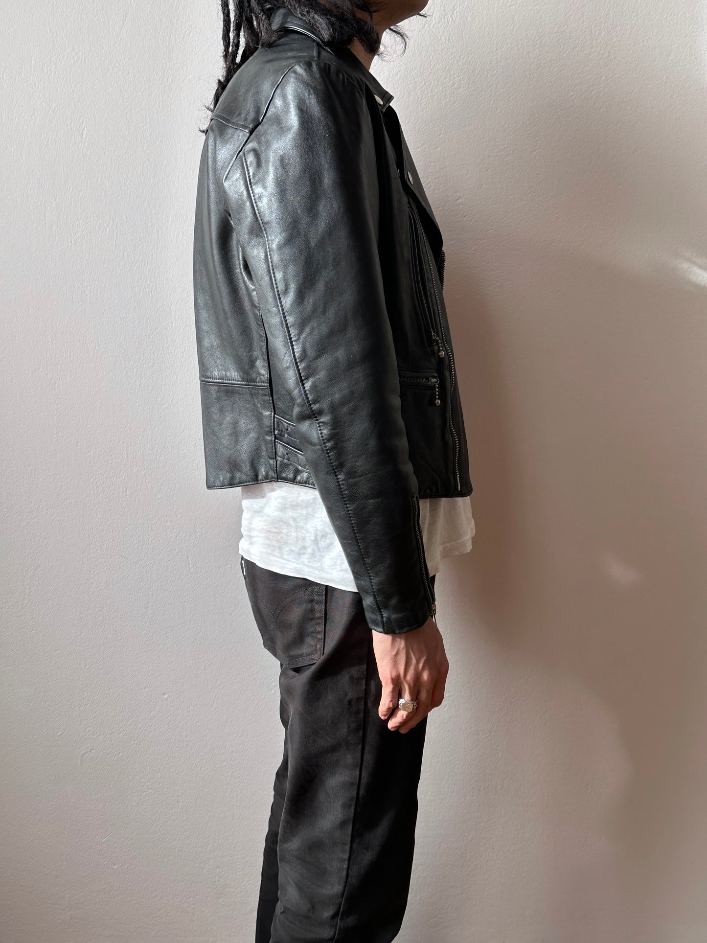 やはり70年代のライダースは革の質もシルエットもずば抜けてかっこいいです、毎度撮影で着用する度に思います。