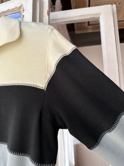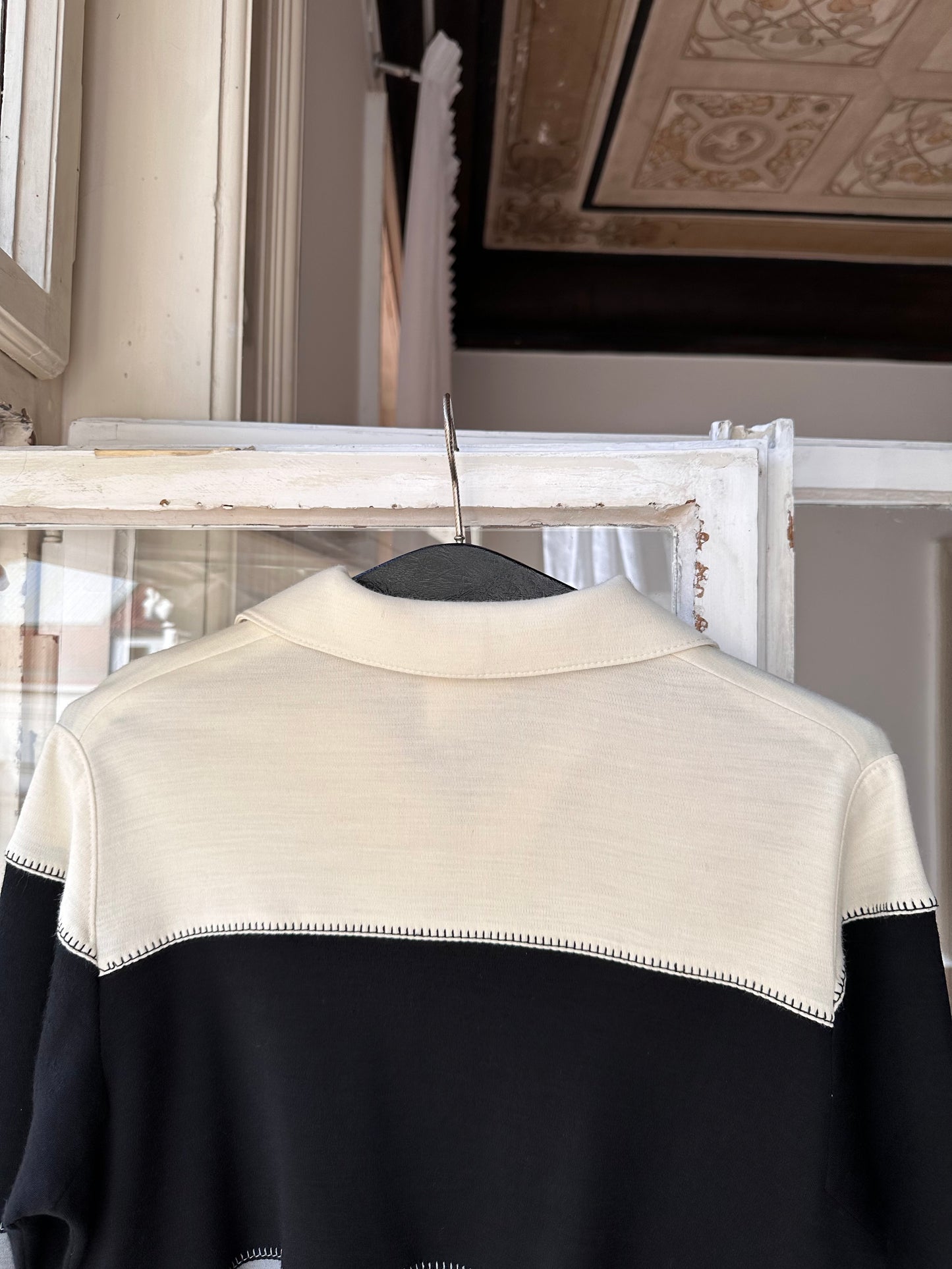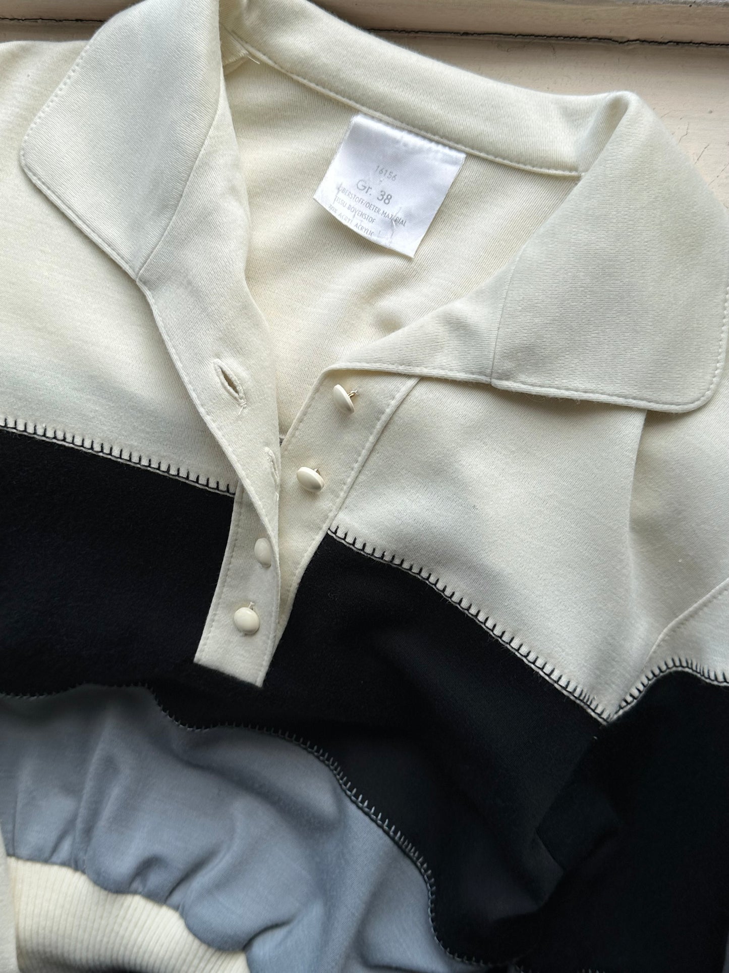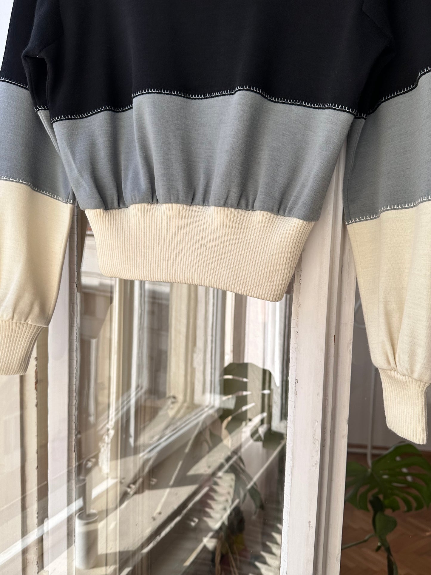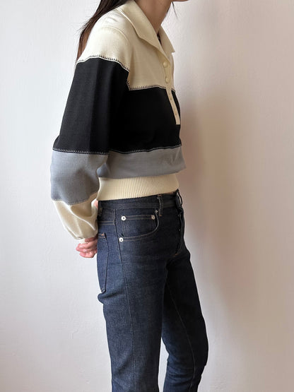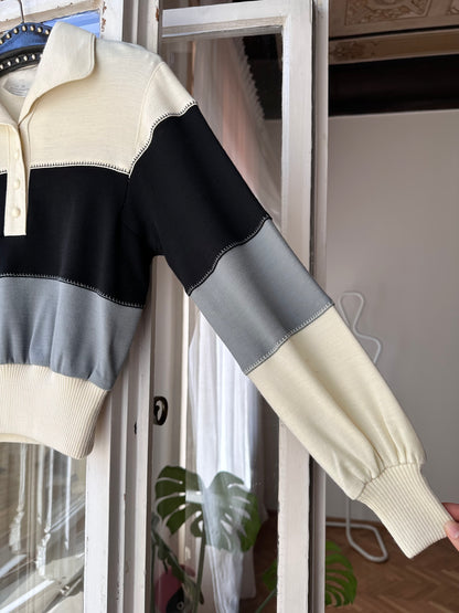 見たまんま可愛いです。モノトーンの太いボーダーと、清楚な襟付きプルオーバー。