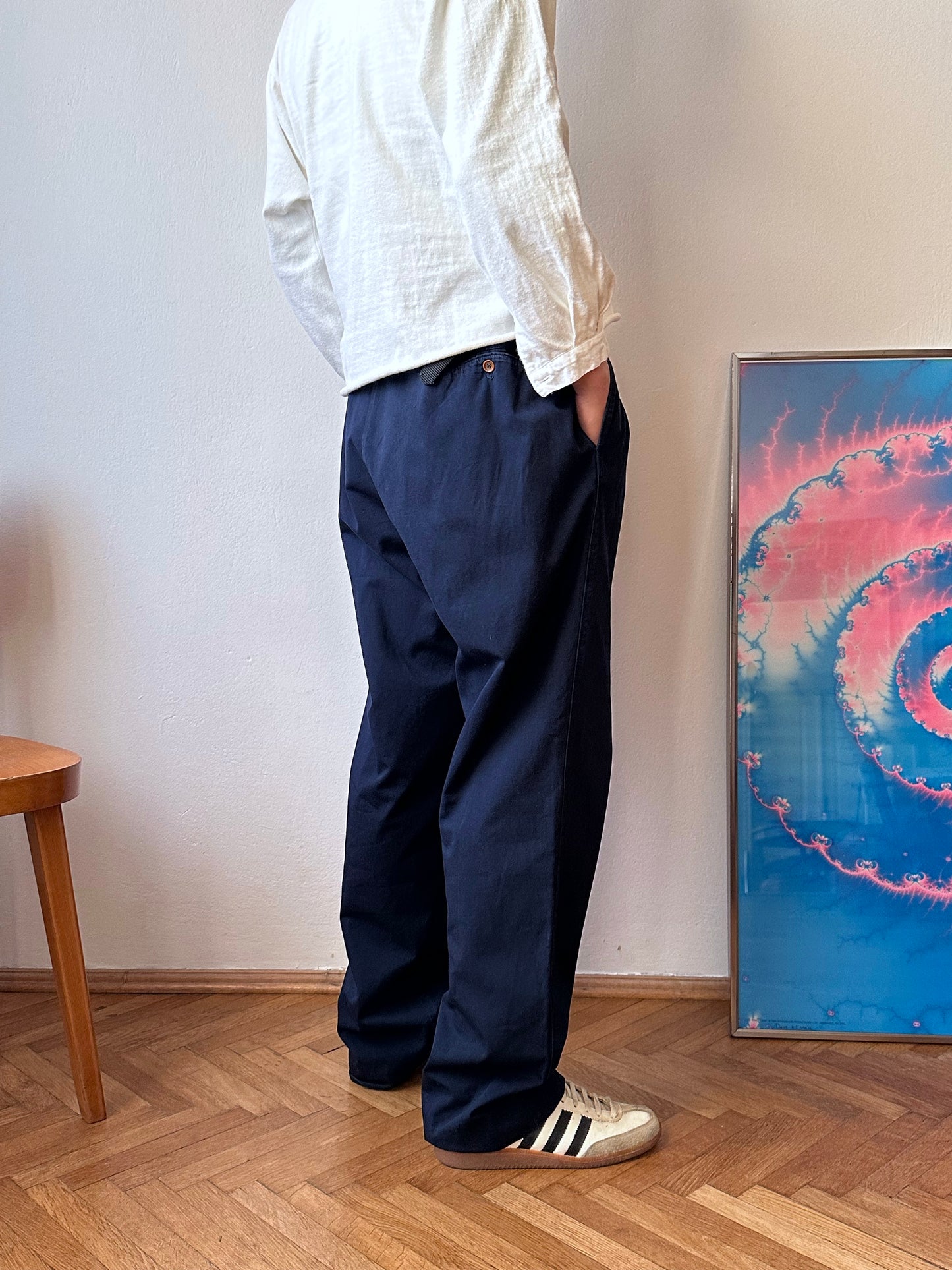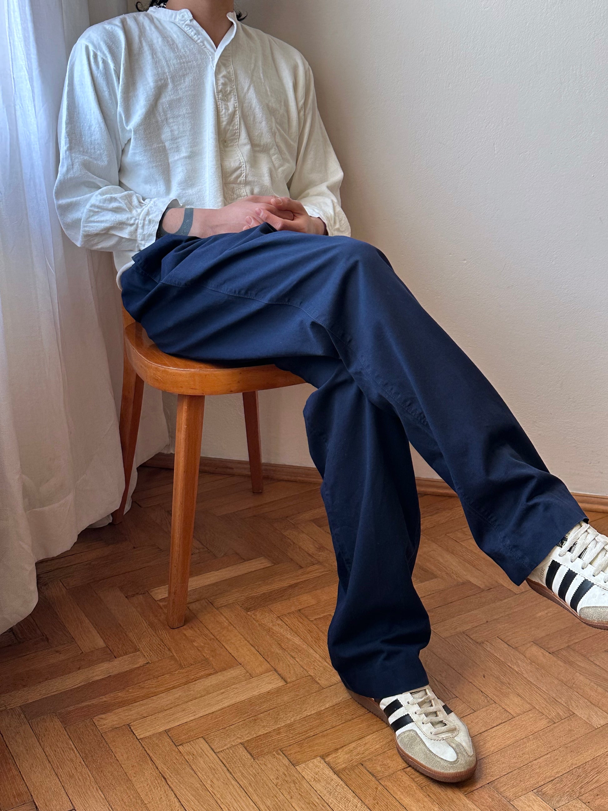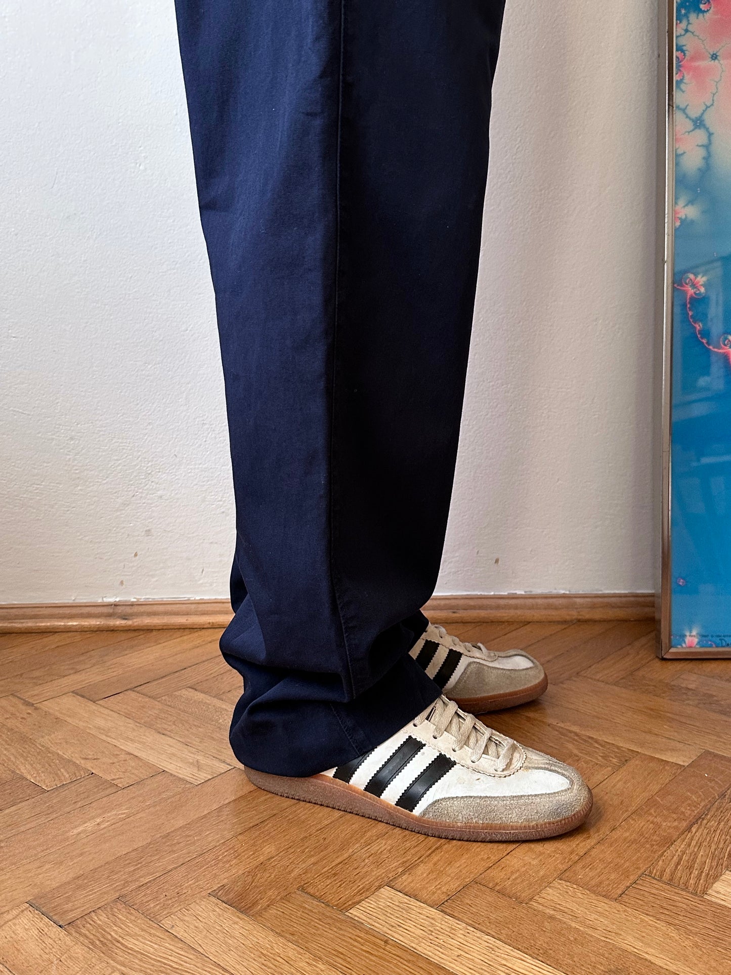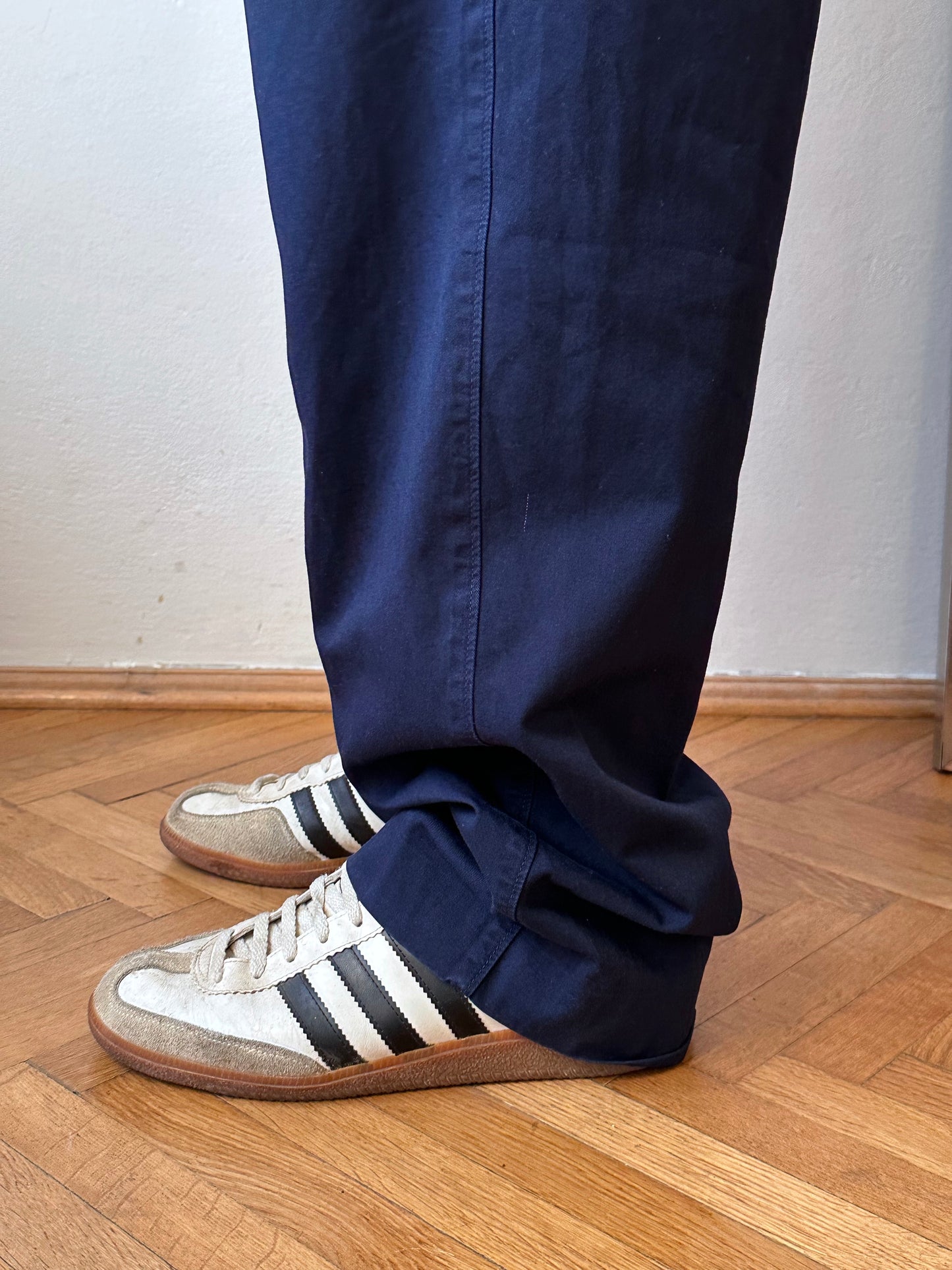 色は深い紺色、この裾のたまり具合もかっこいい。