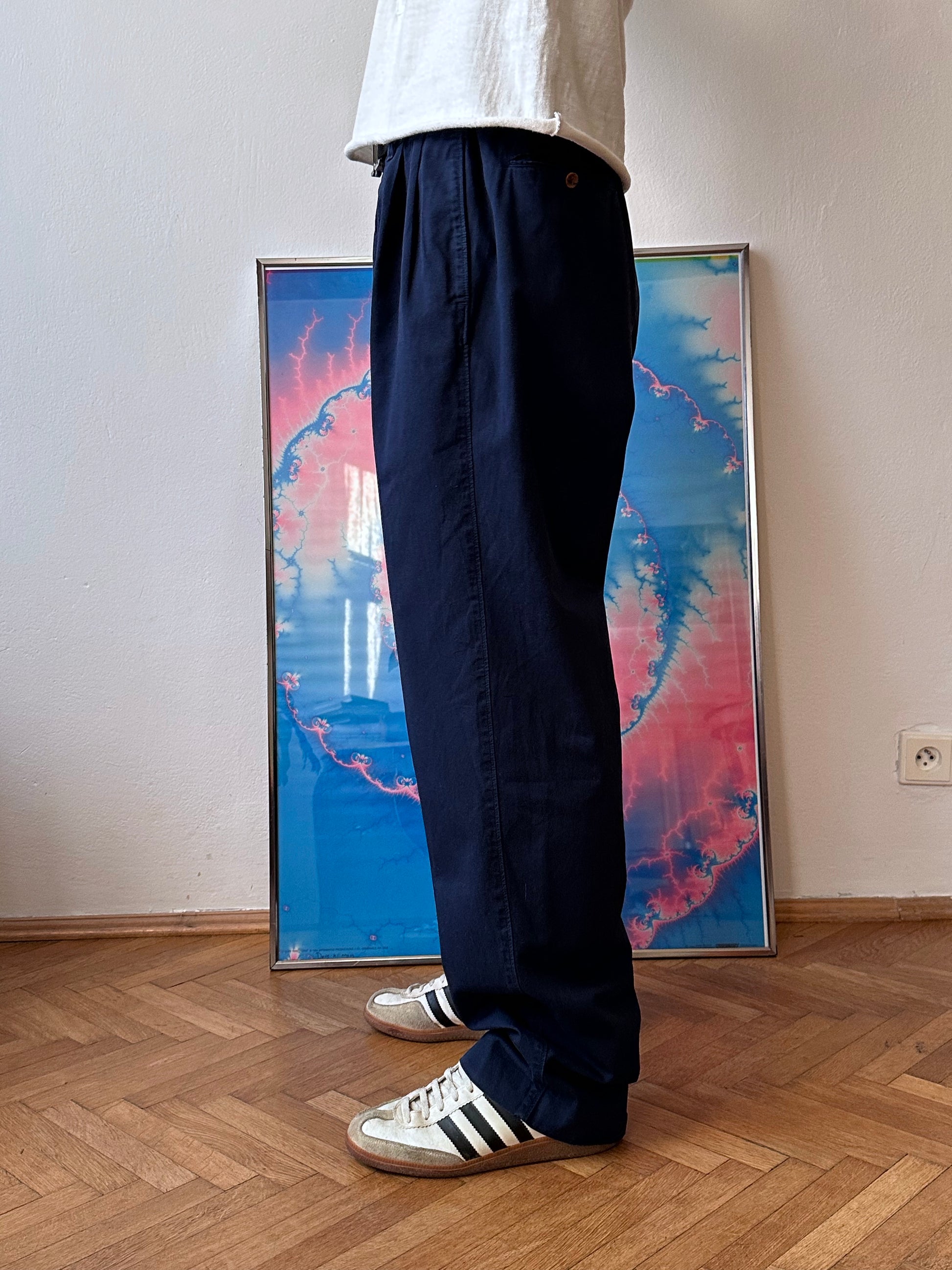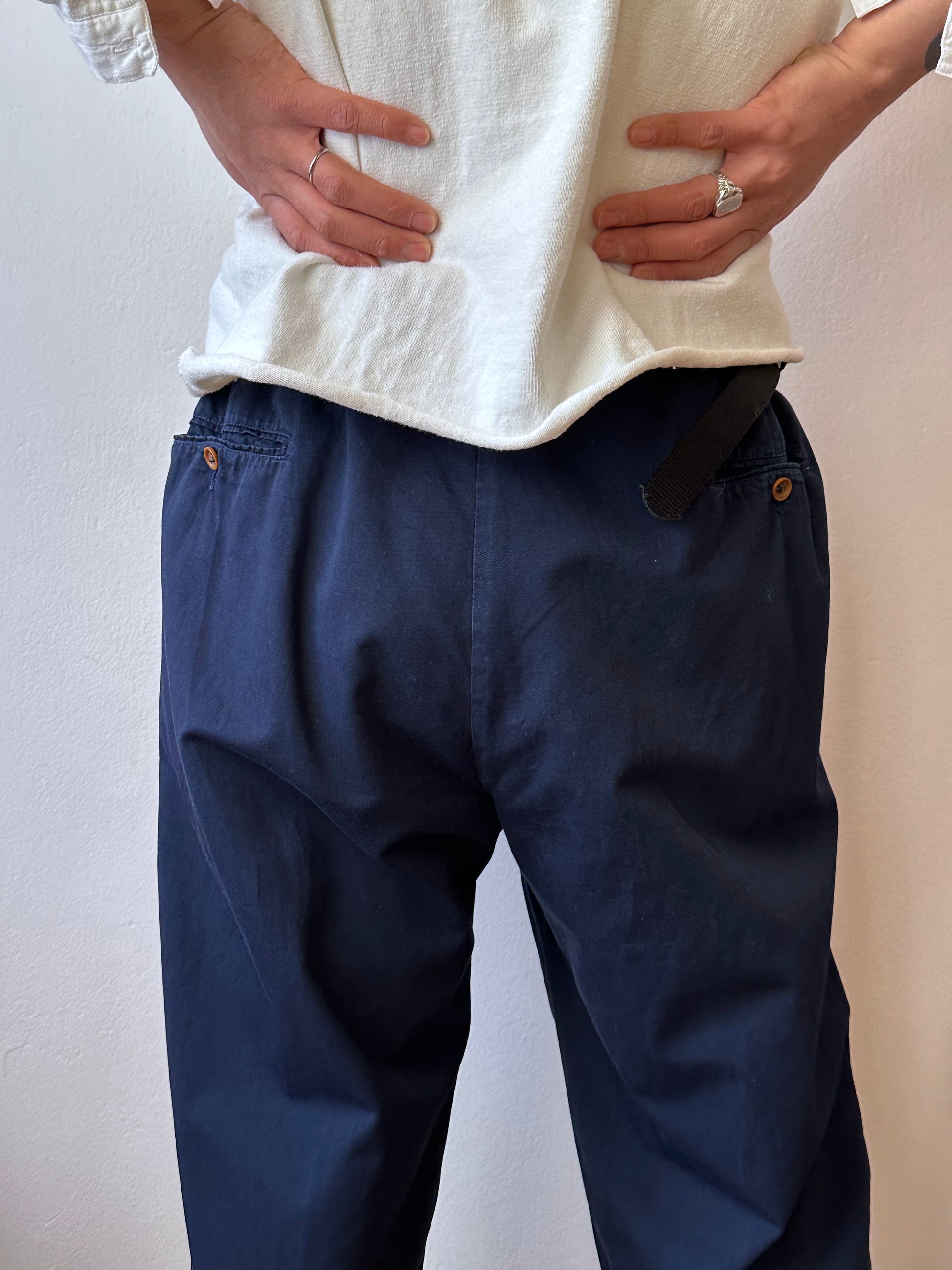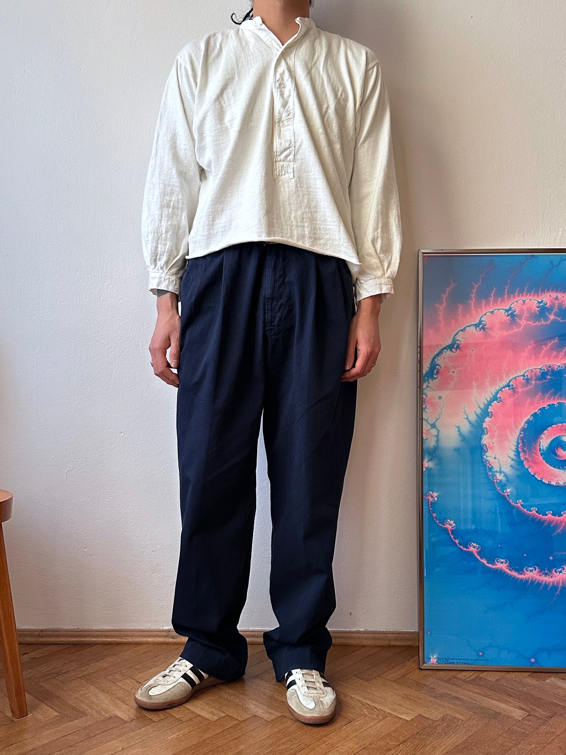 色は深い紺色、この裾のたまり具合もかっこいい。