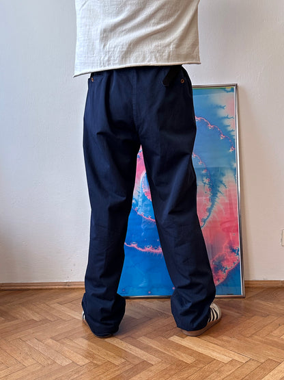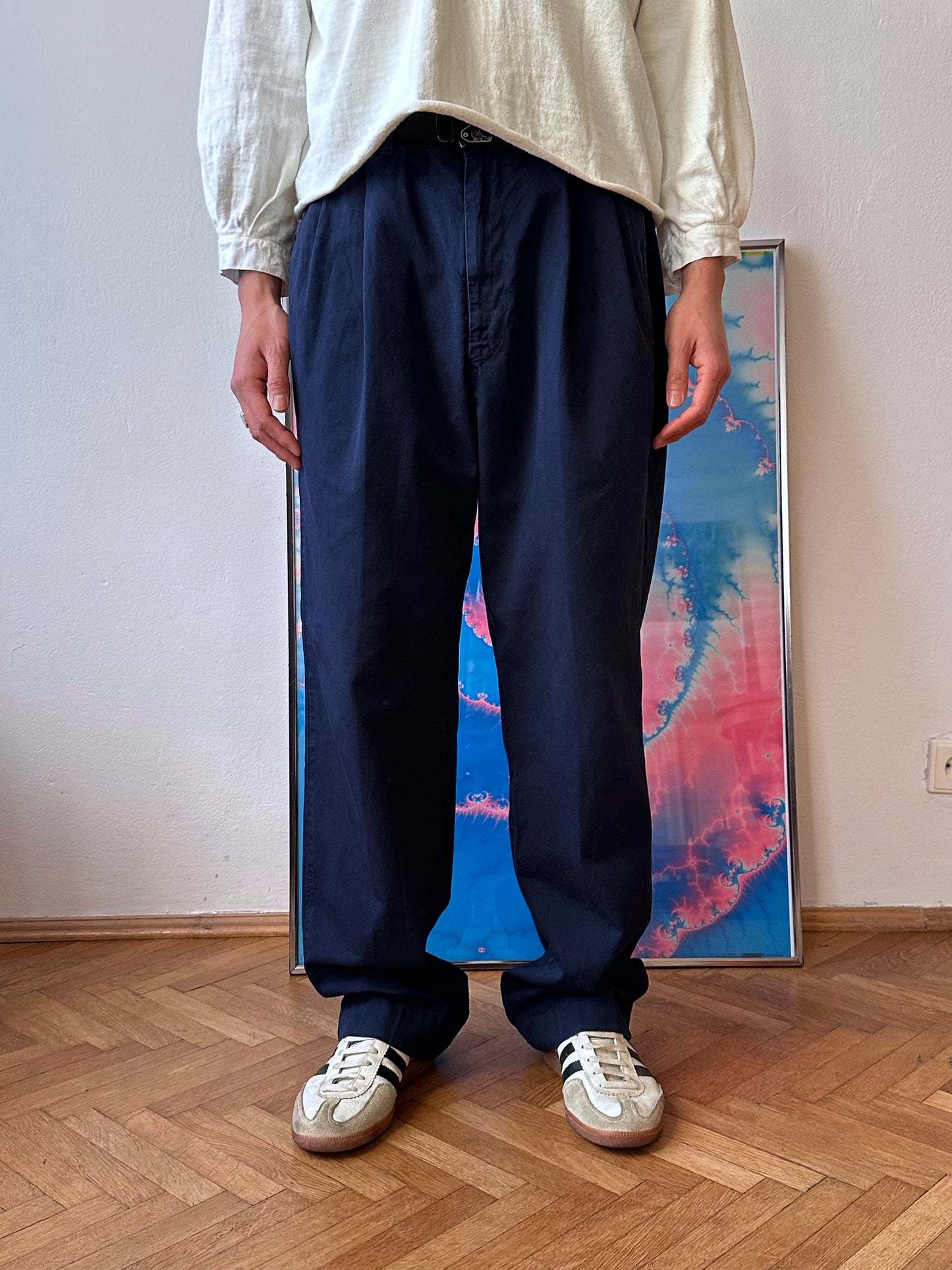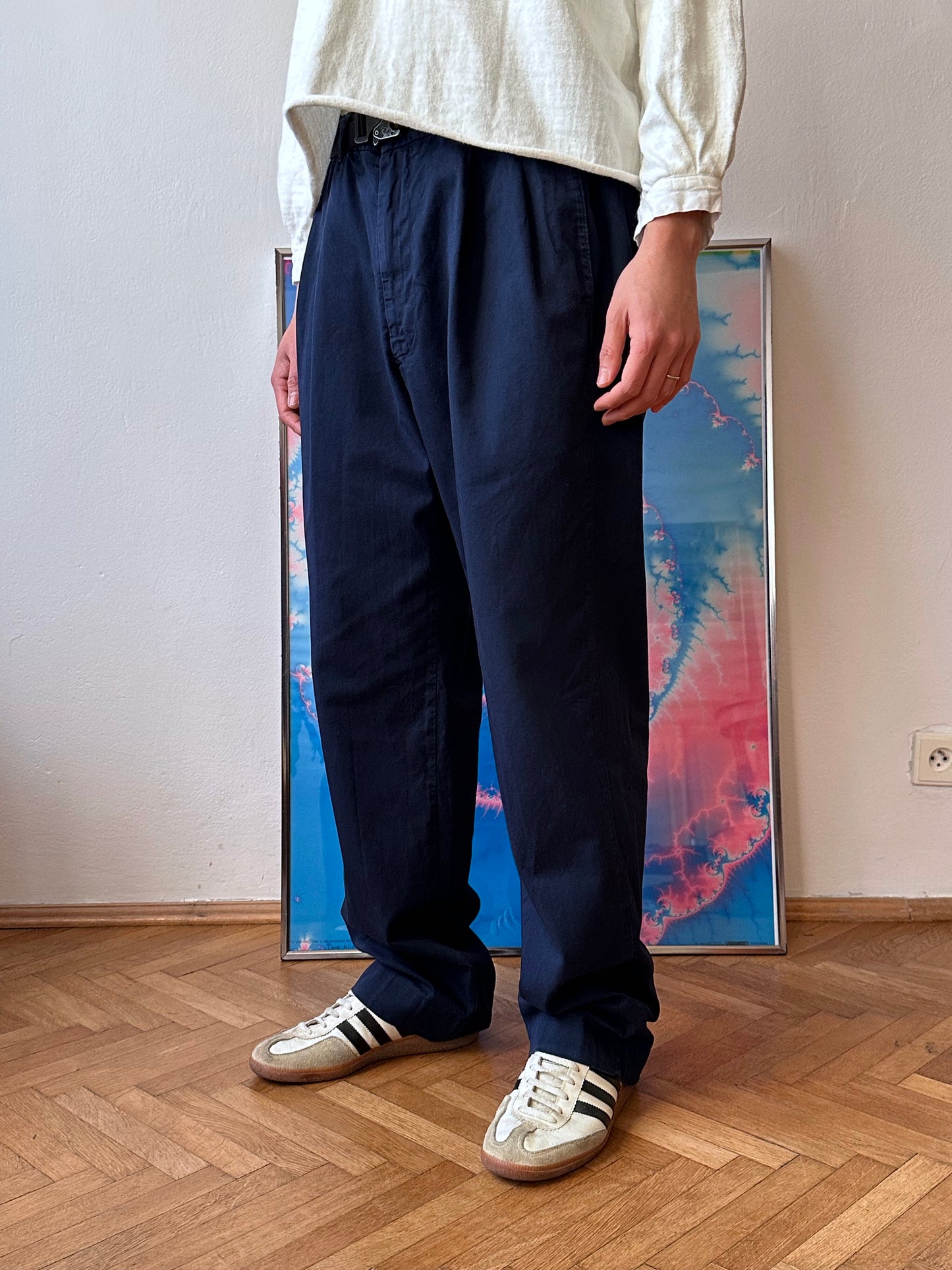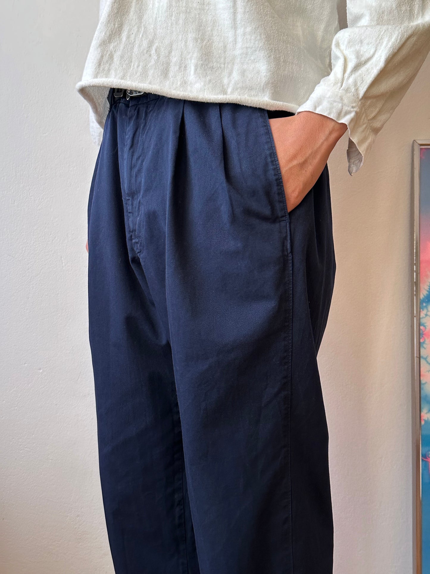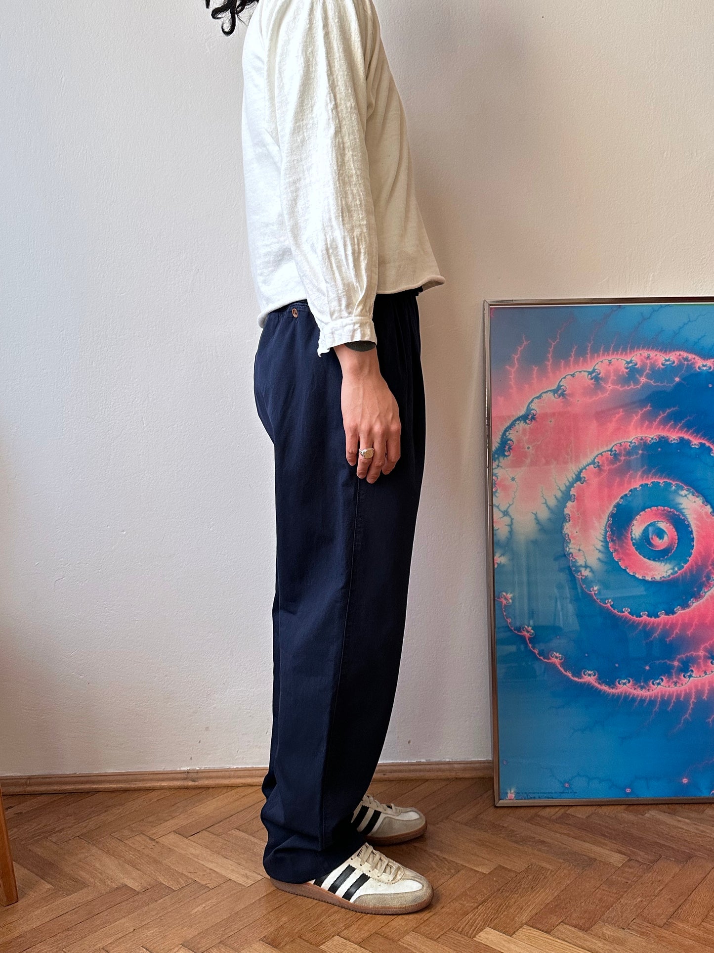 色は深い紺色、この裾のたまり具合もかっこいい。