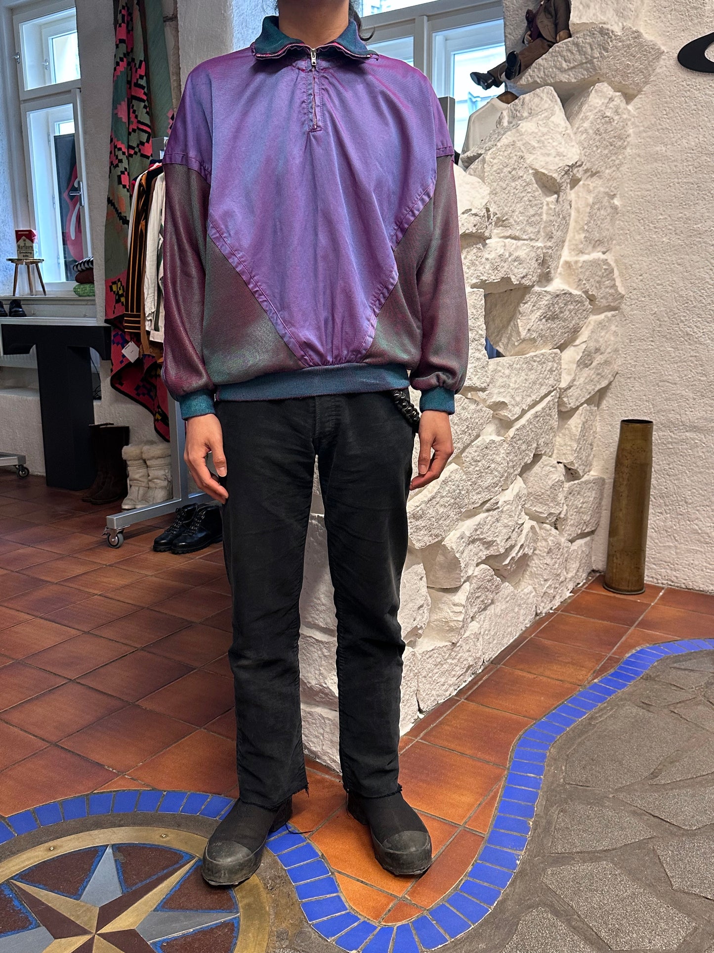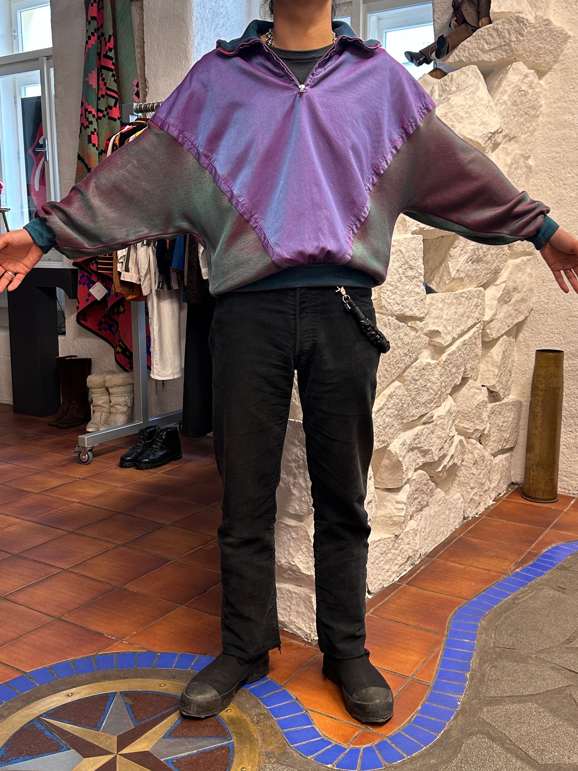 試着するまでは、かっこいいし、生地も色もやばいけど、形が面白いんで実際に着たらどうなるんだろうとワクワクと不安がありましたが、最高でした。