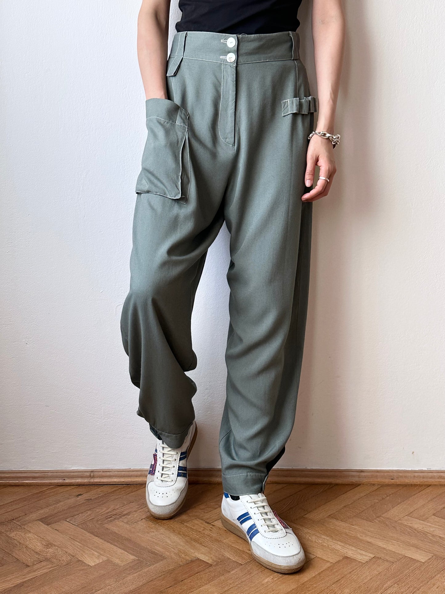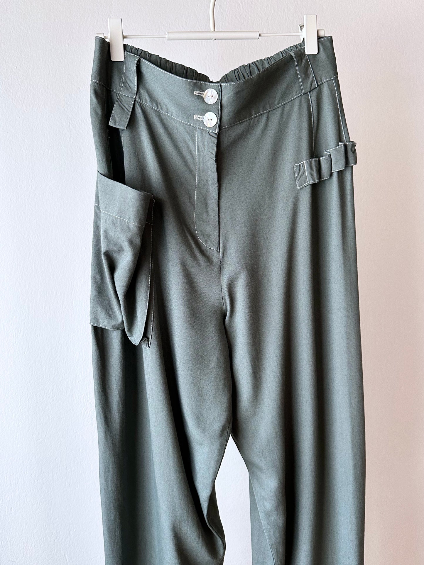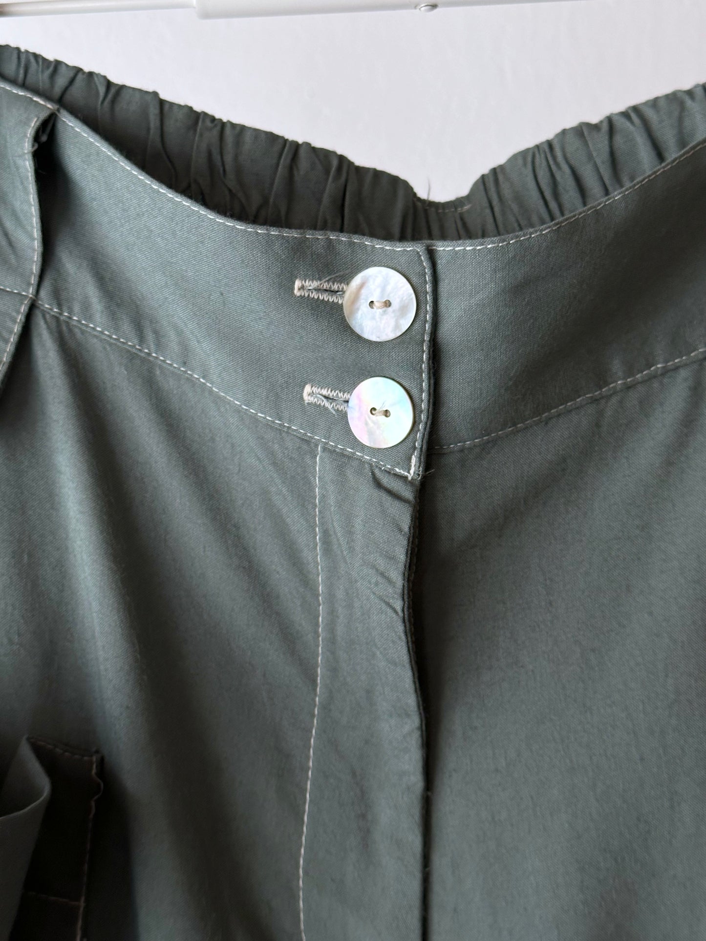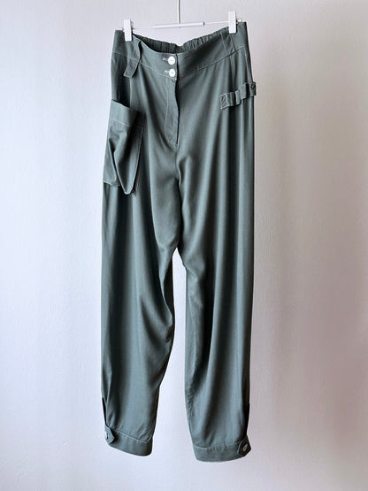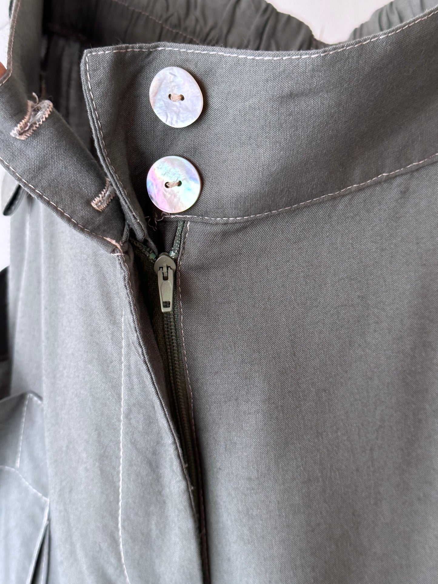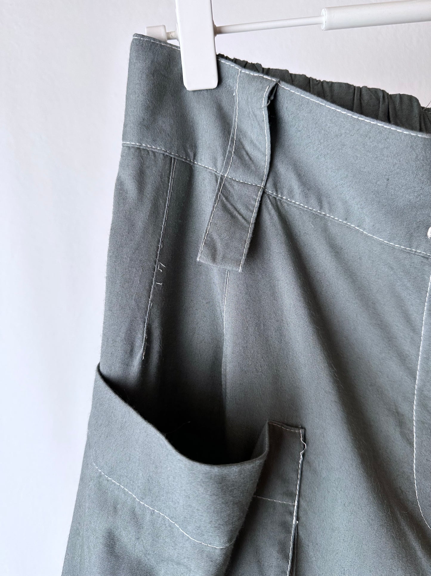 ポケットのつきかたや、ハンティングの銃弾ホルダーみたいなデザインもユニークで、
