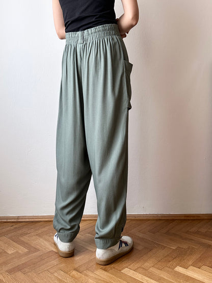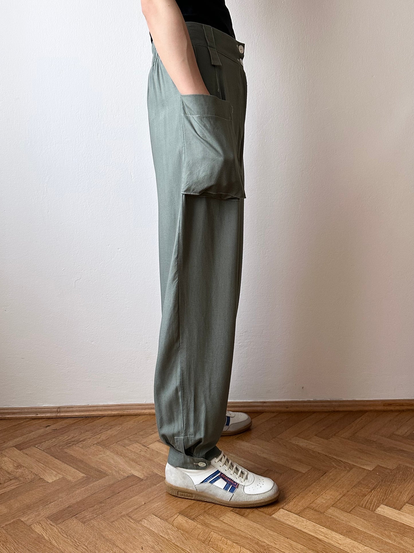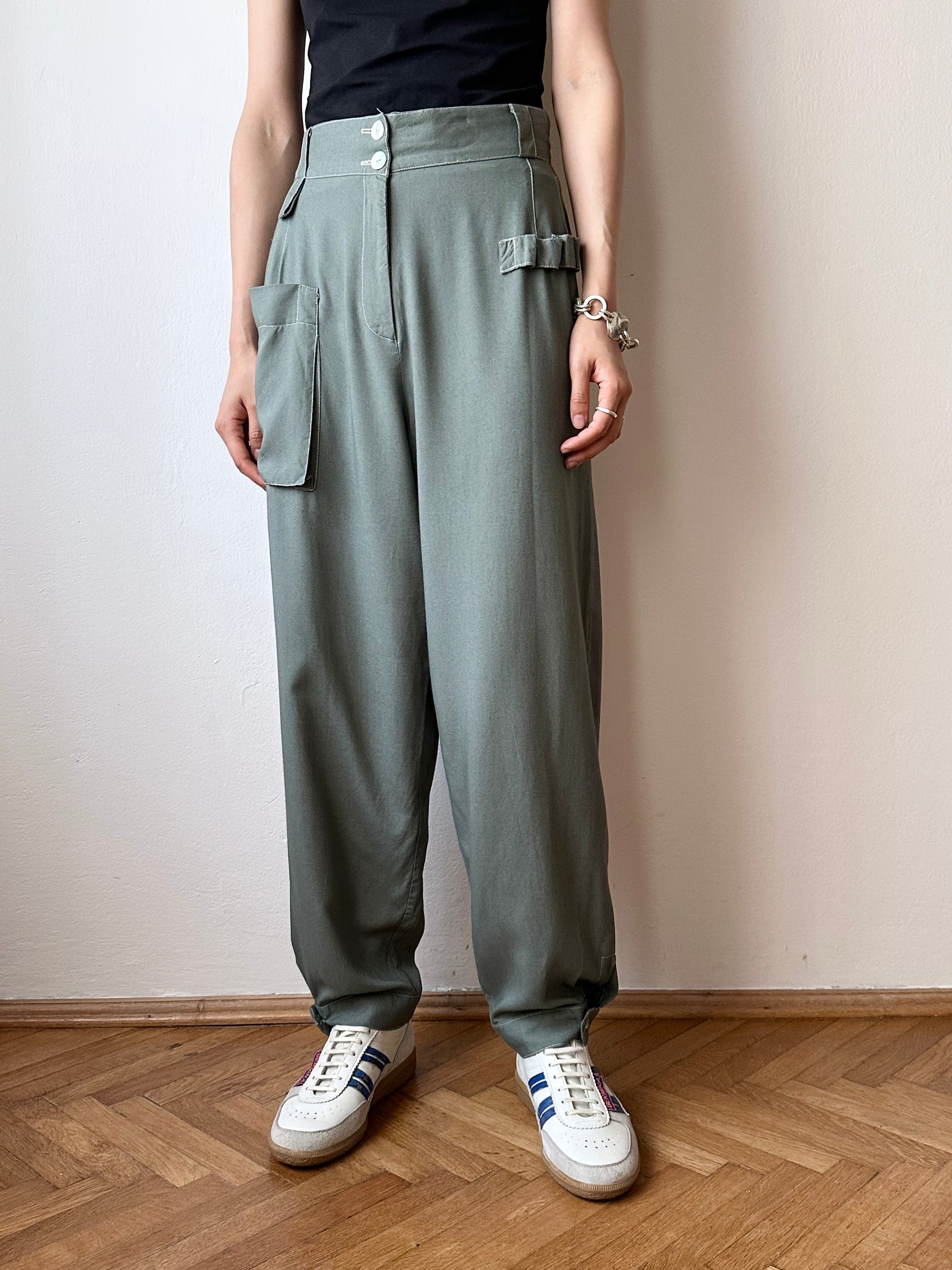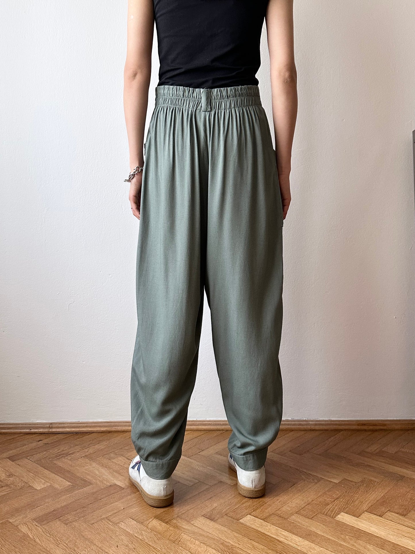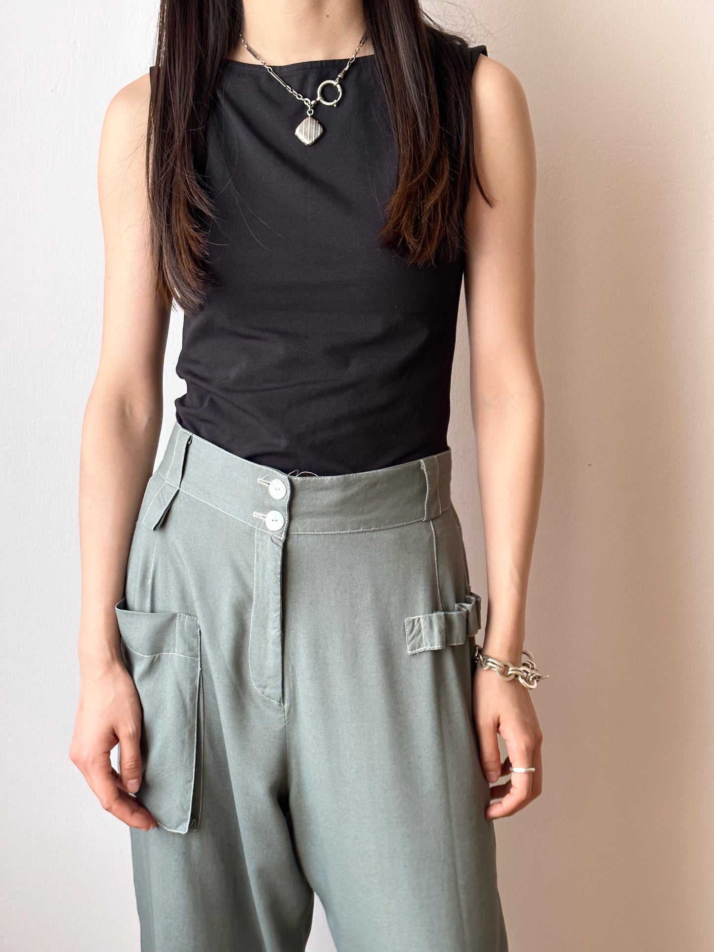 やや絞られますが野暮ったさがなく、洗練されたテーパードパンツ。
