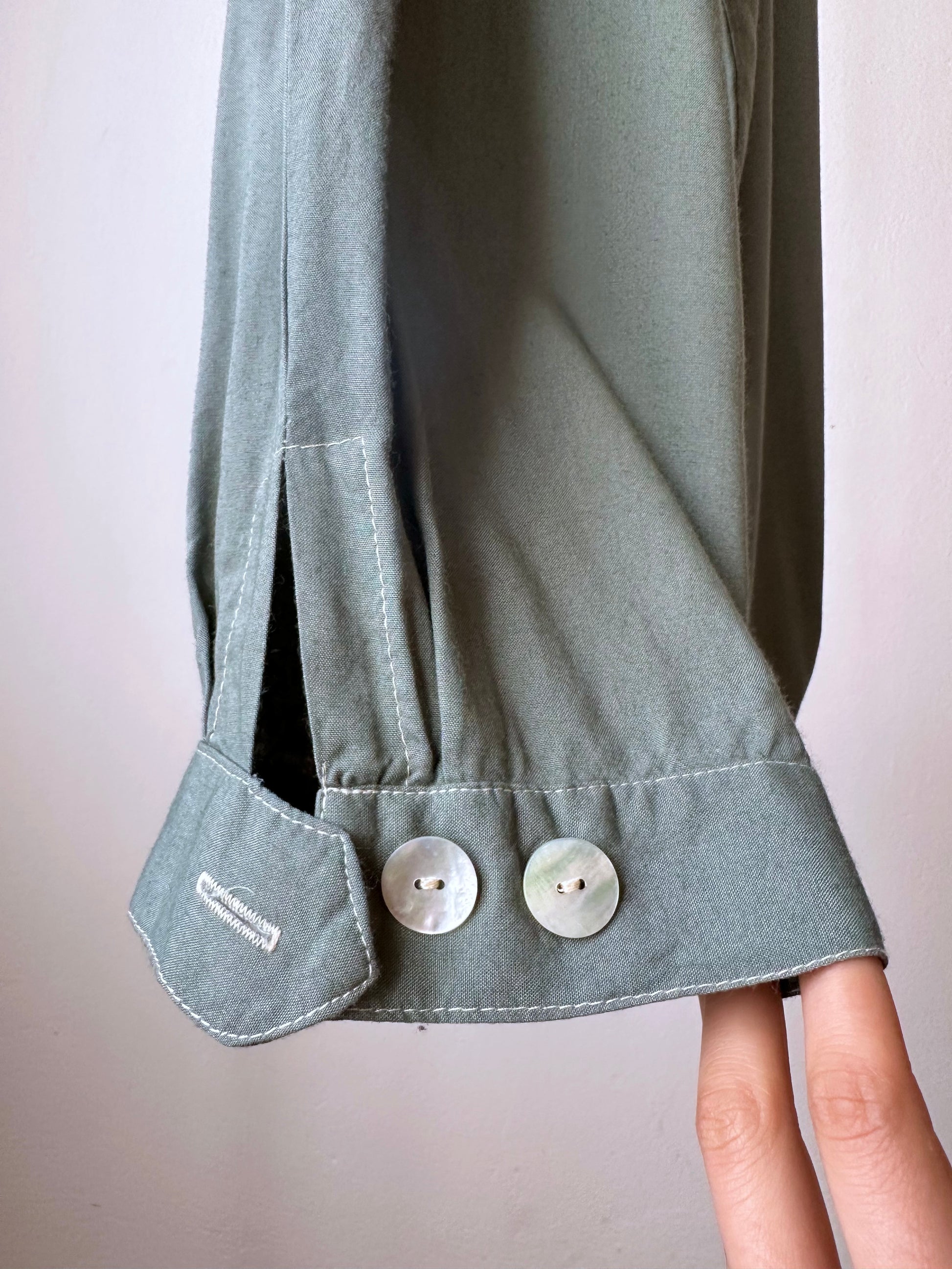 そのグリーングレーに白糸のステッチがすこぶるイイ。