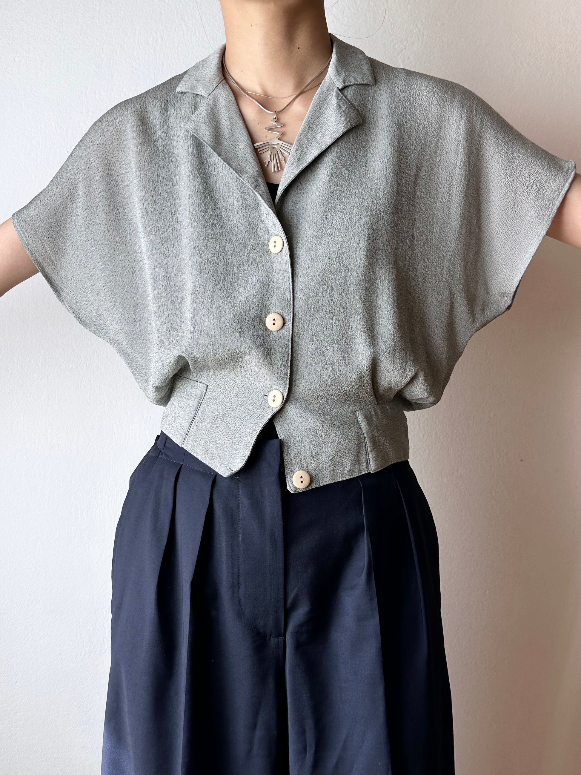 開襟に、ウエスト少しシェイプしてるデザインも男前。