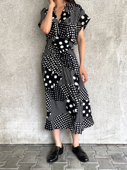 様々なピッチのドットがパッチワークみたいになったオールパターンの、