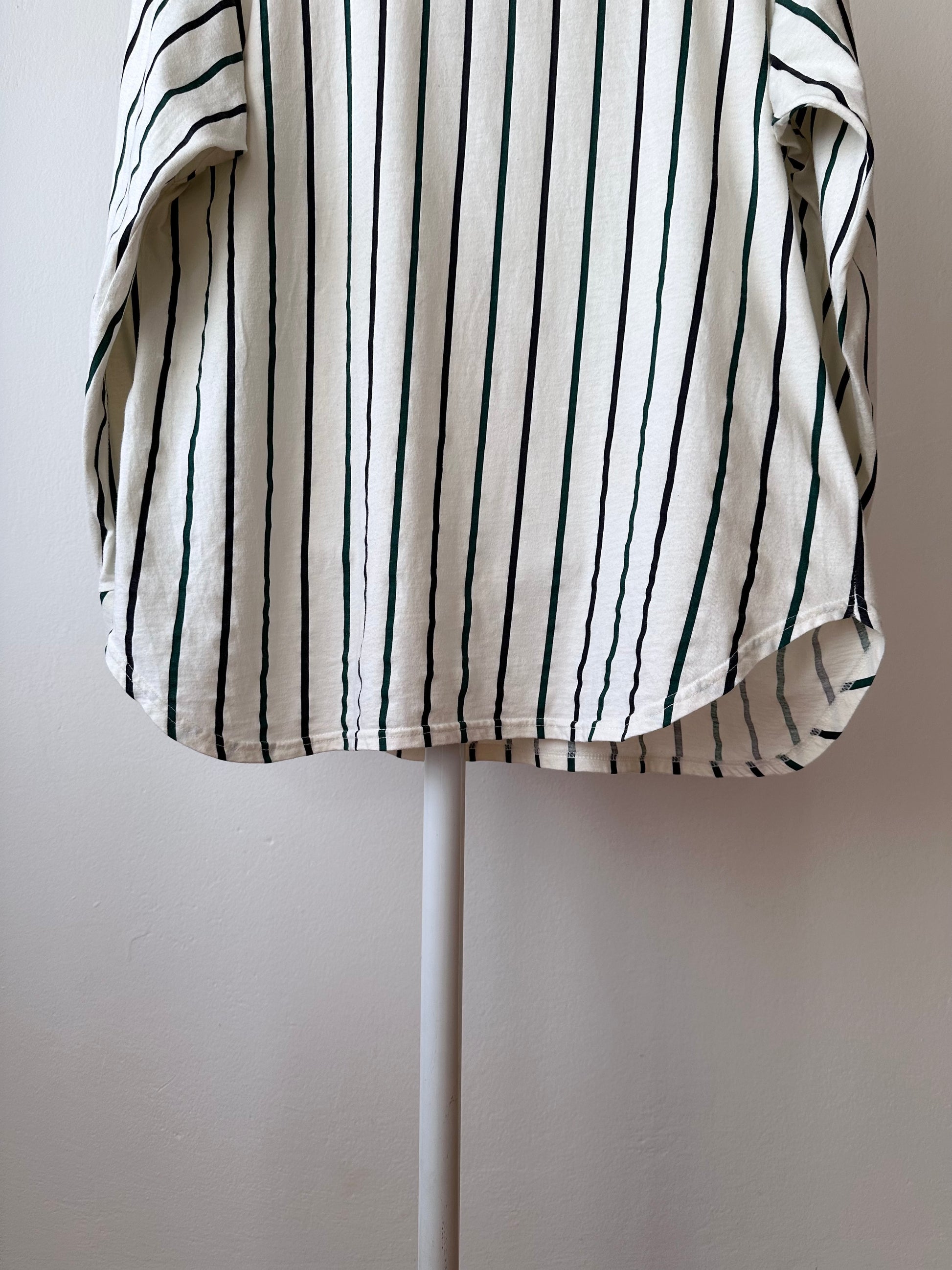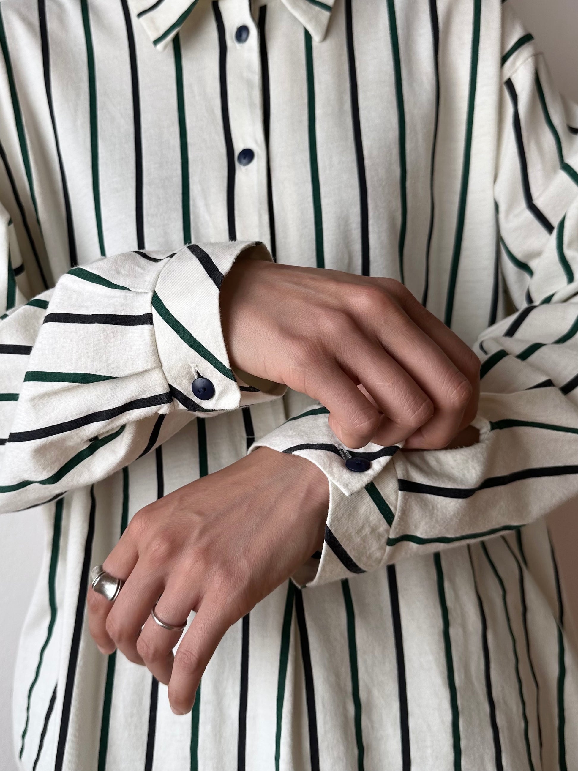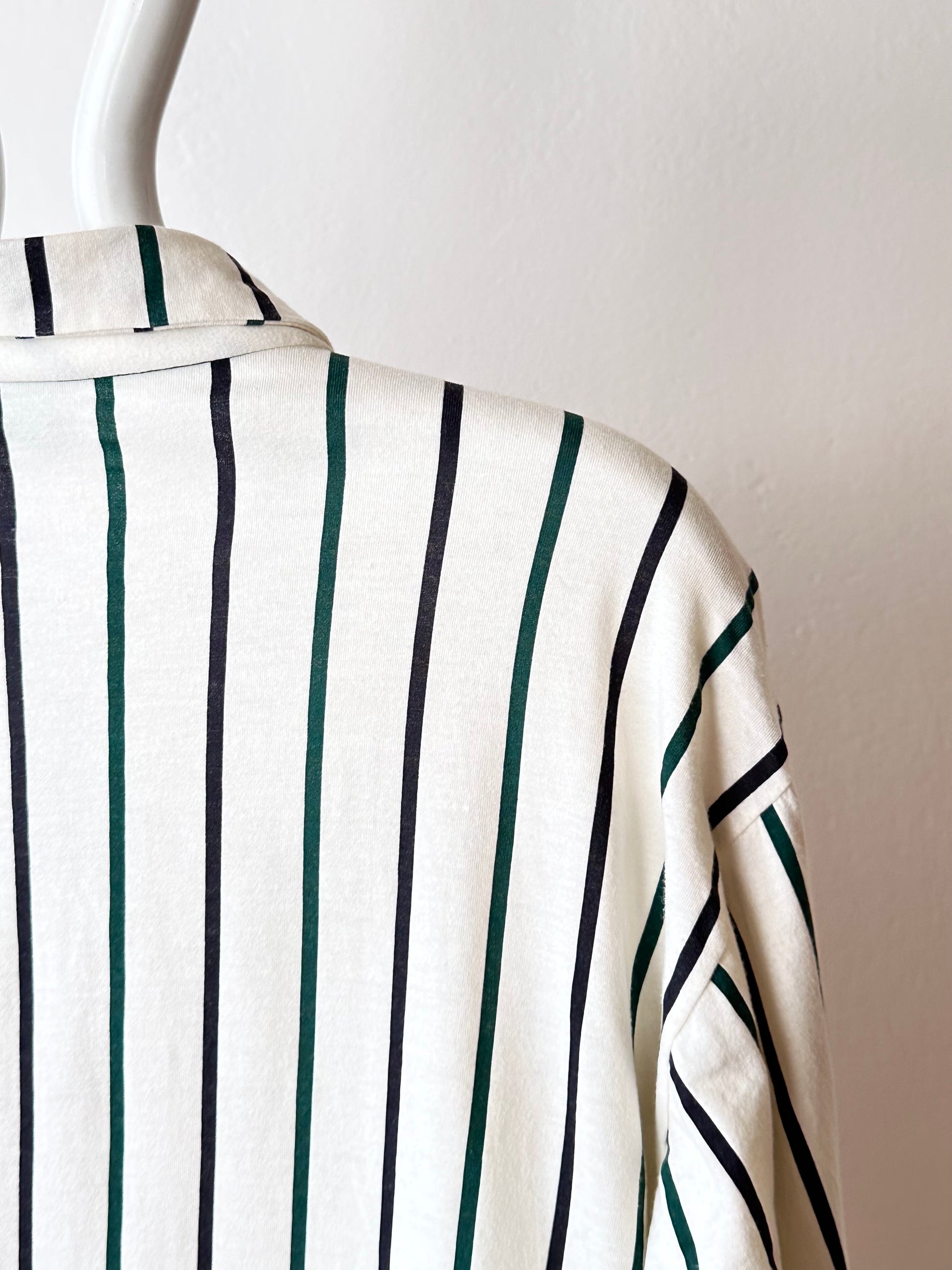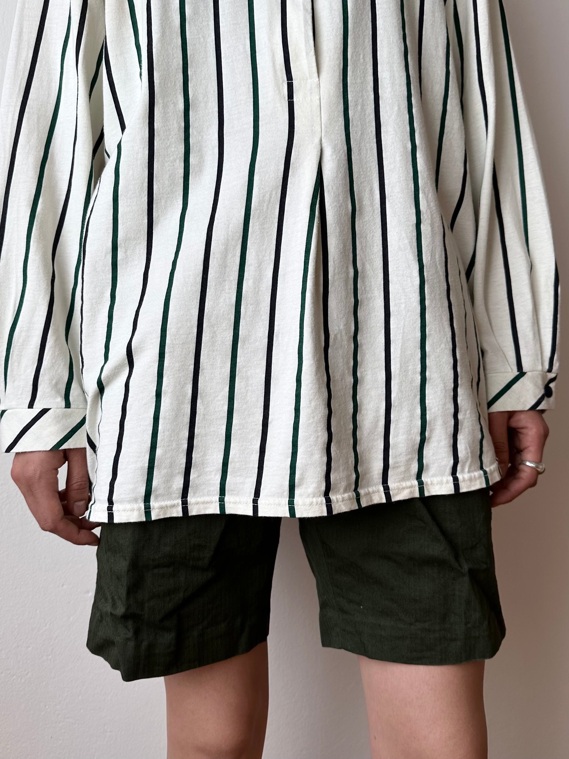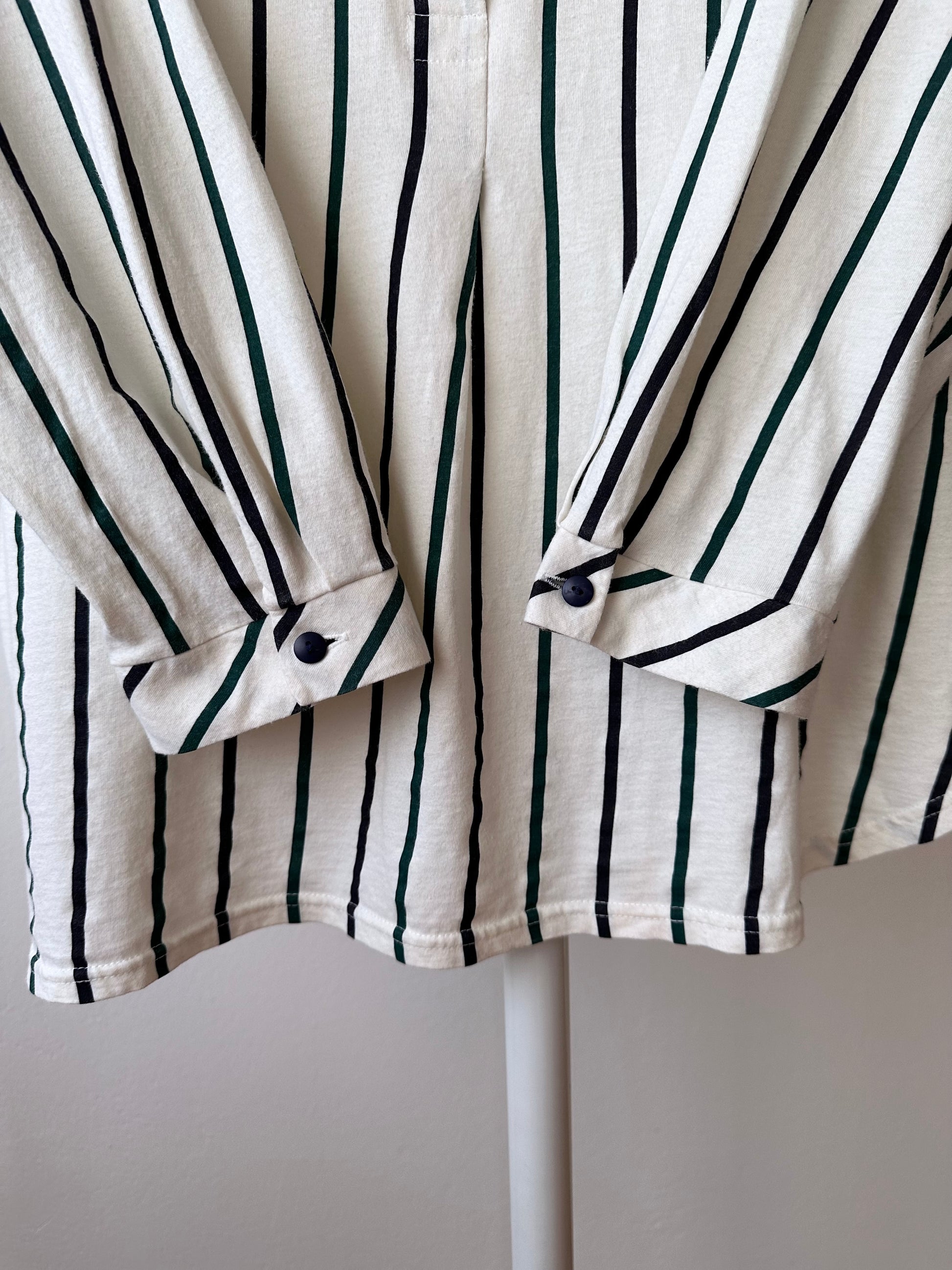 よく見ると黒と緑のストライプです。生地に寄った色味の一番わかりやすい写真を最後においています。
