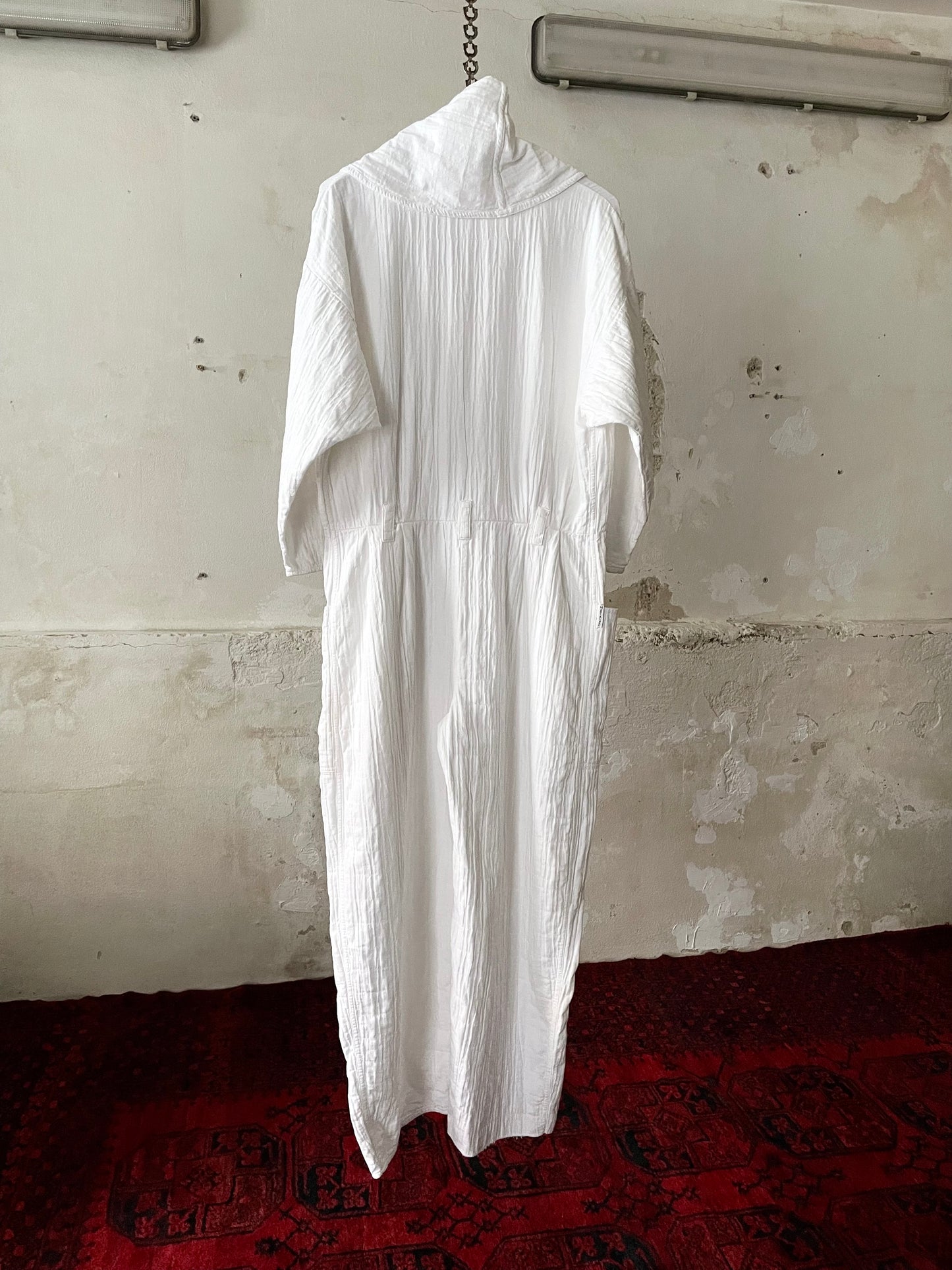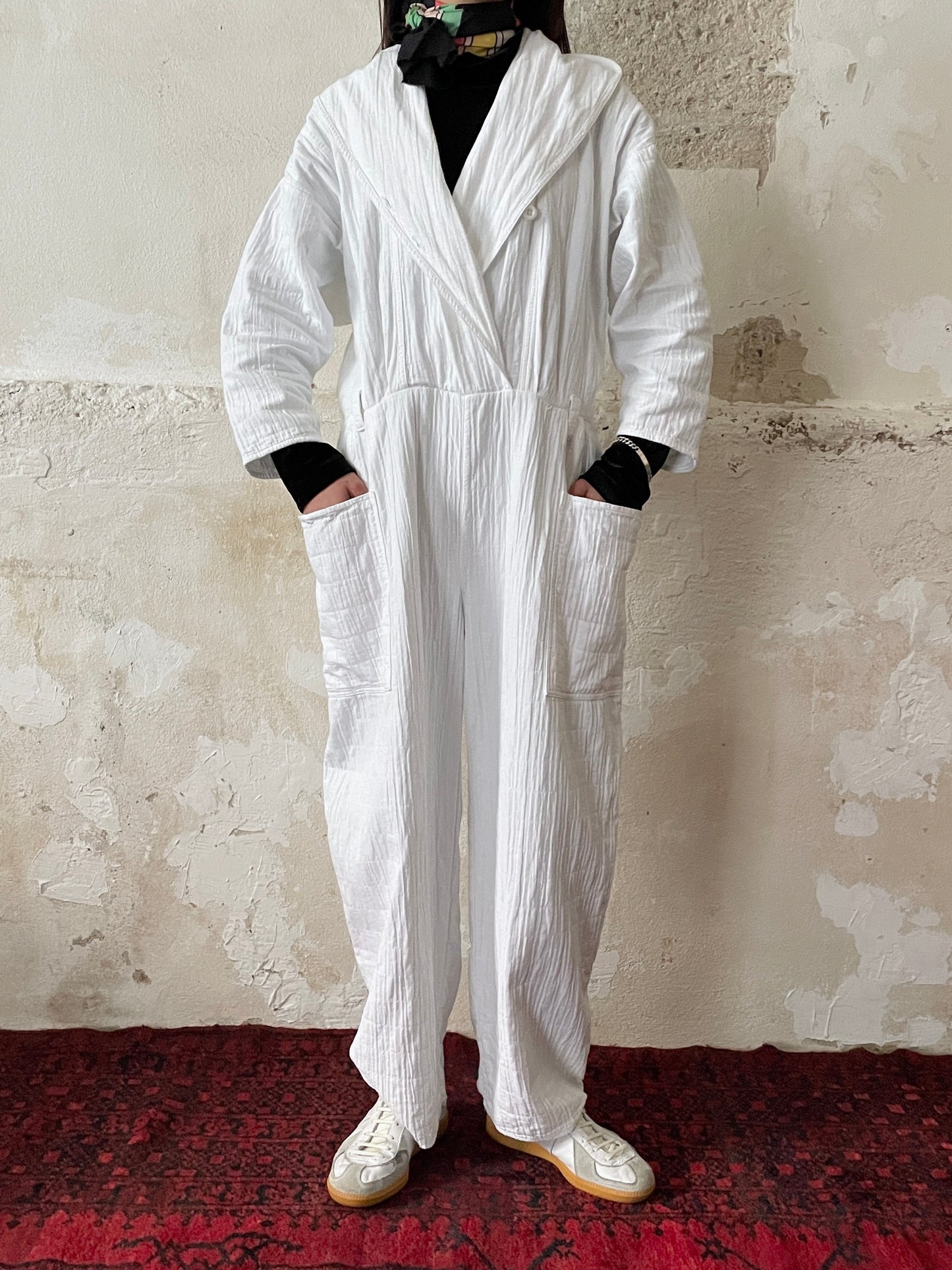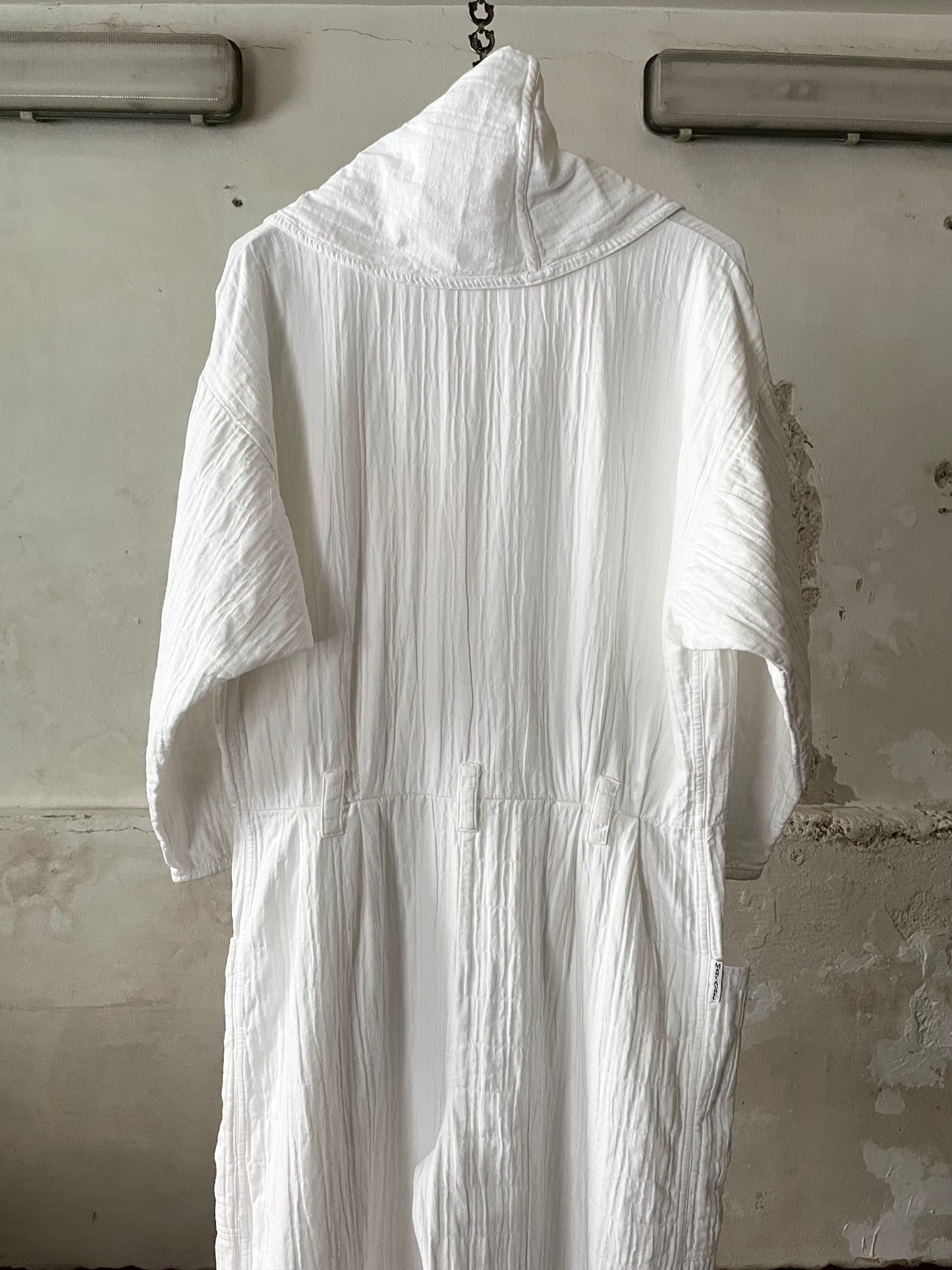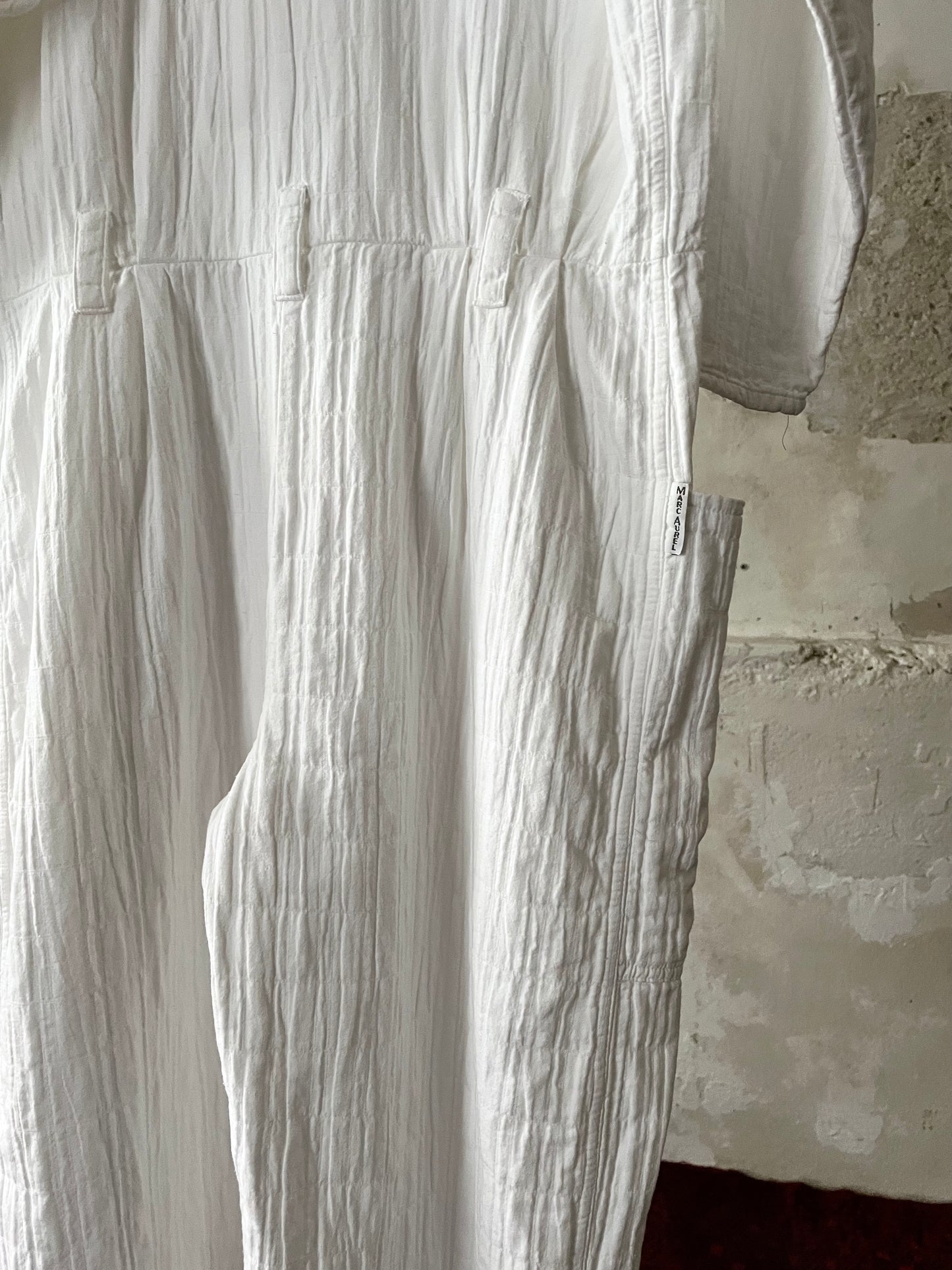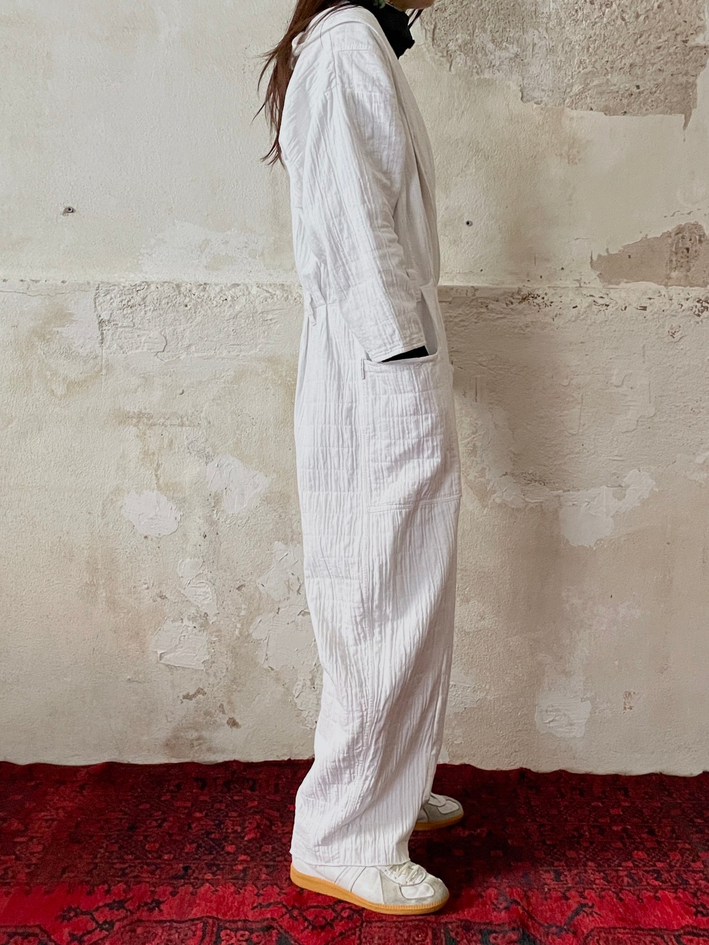 シボ加工のされた真っ白なおふとんジャンプスーツ。from Germany