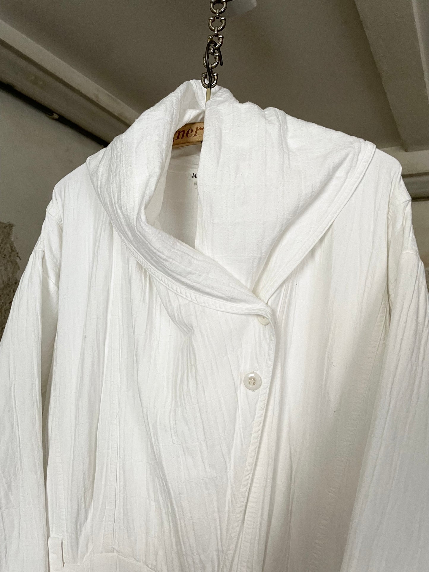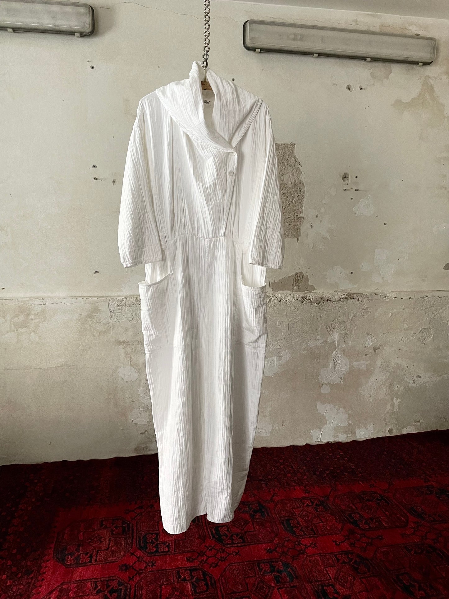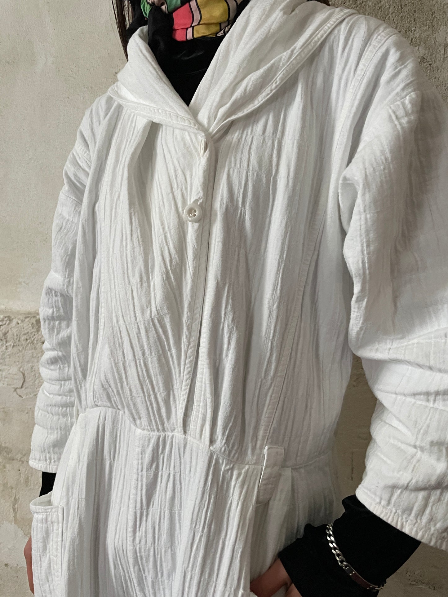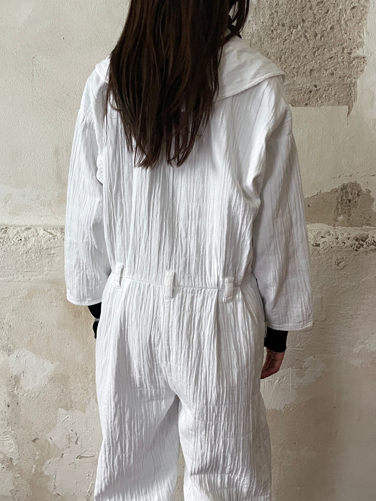 シボ加工のされた真っ白なおふとんジャンプスーツ。from Germany